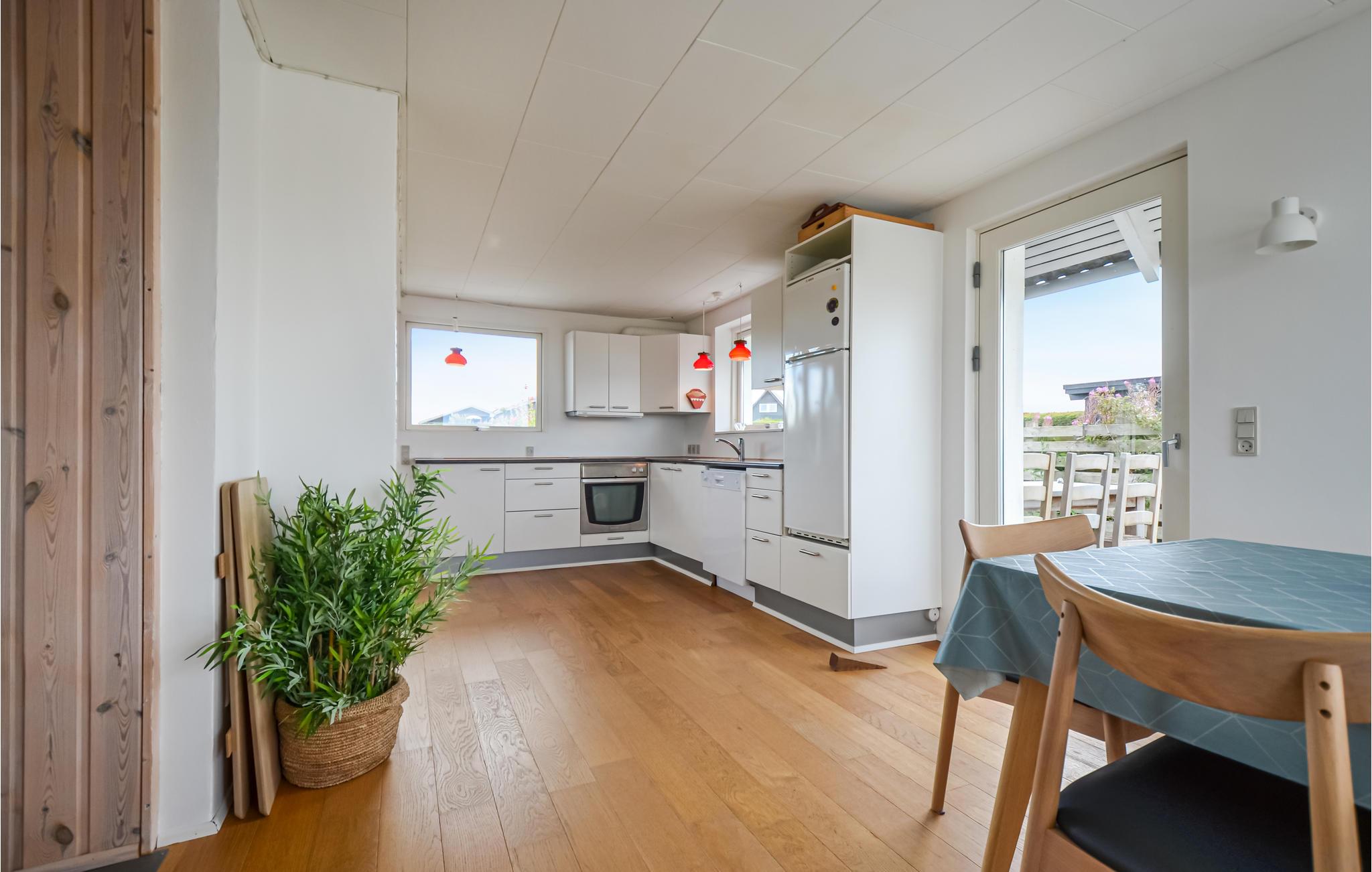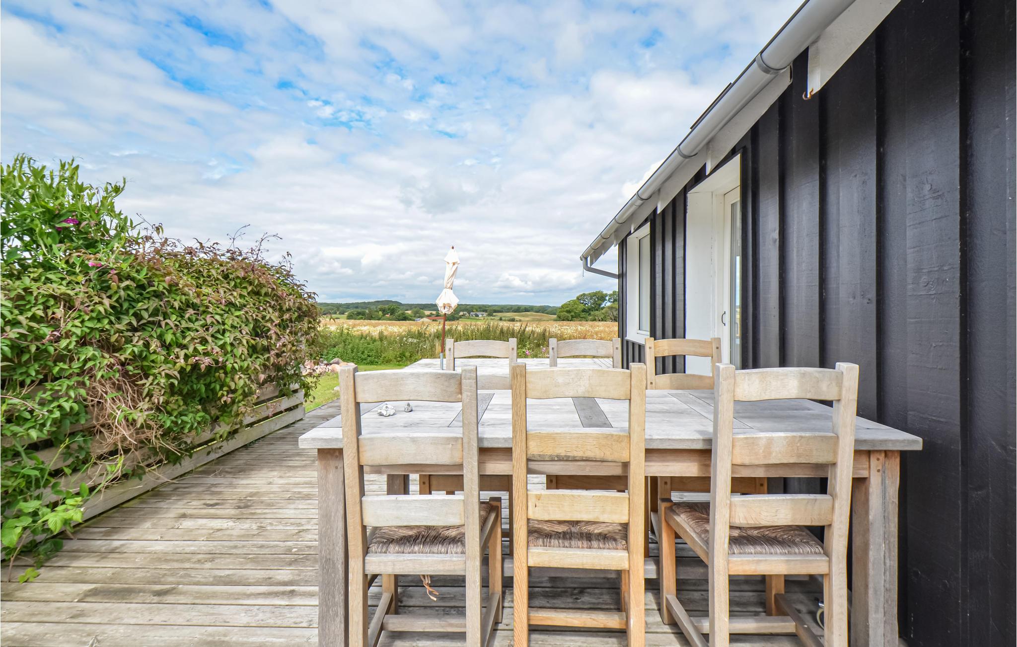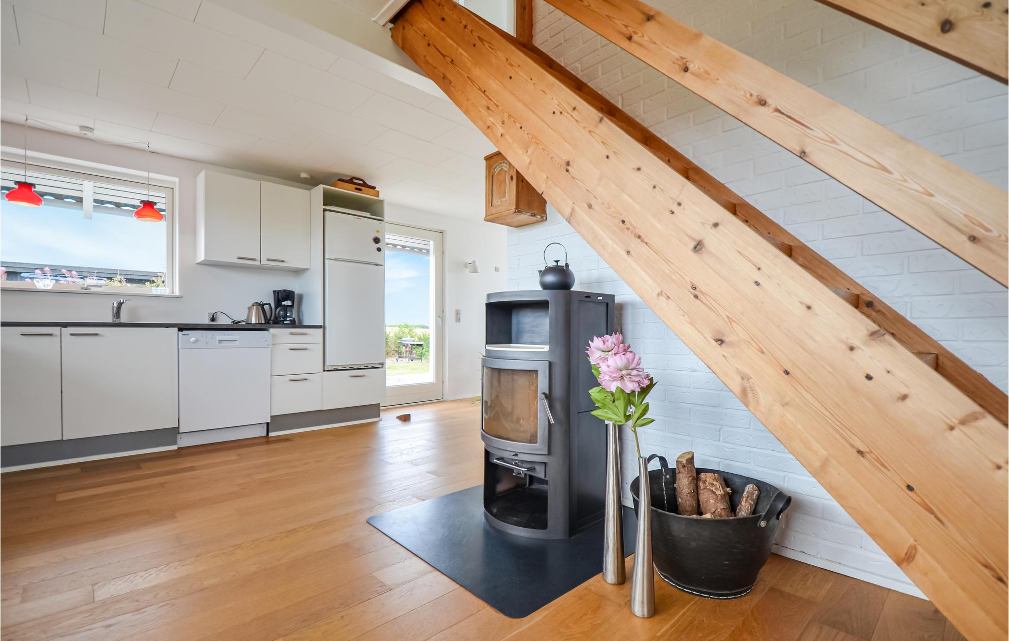 Sommerhuset i to plan er beligende tæt på Dråby strand, der er kendt som et godt fiske og badevand. På førstesalen findes to lyse værelser med udsigt til marker, havkig og Jernhatten. Nedenunder får I et naturligt samlingssted med åben forbindelse mellem køkken, spiseplads og lille tv-lounge. Det store gavlvindue lukker lyset indenfor og sørger for havkig og udsigt over den flotte natur, der bugter sig i klassisk bakkelandskab. Den charmerende brændeovn vil sprede både varme og hygge.