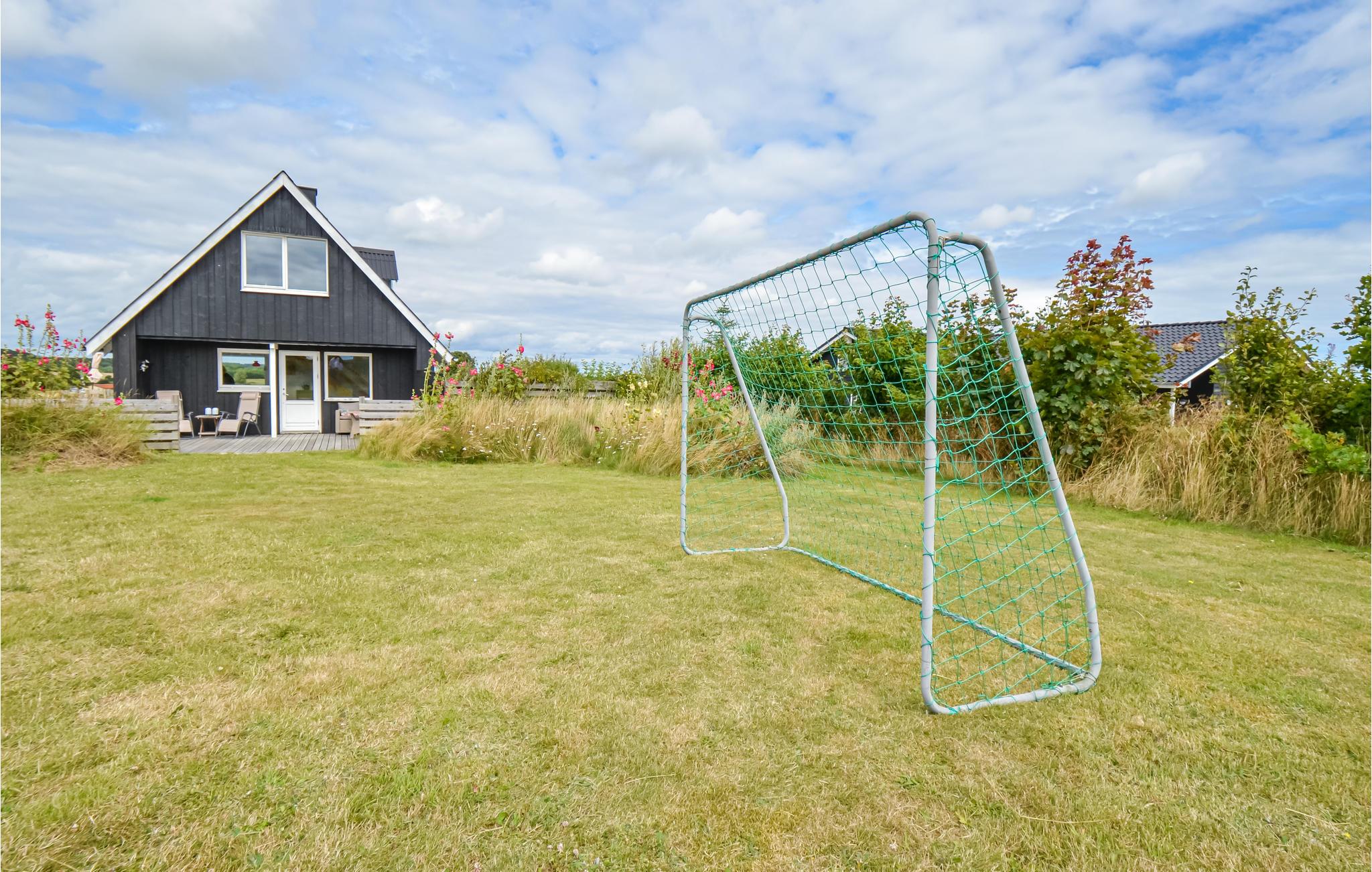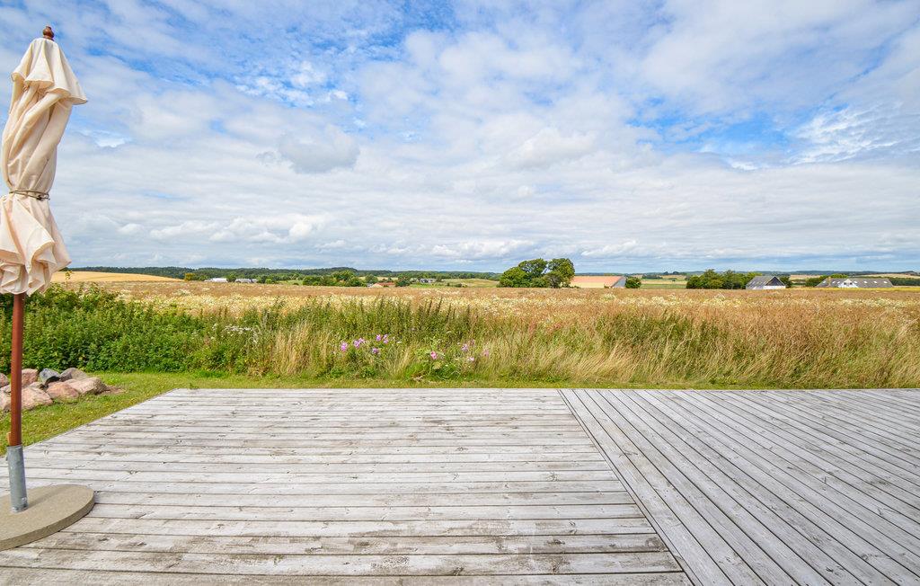 Til huset har man også en stor træterrasse, der løber omkring hele huset, hvor I kan følge solen og altid finde læ og en stor grund, hvor børnene kan lege frit, og hvor I kan udfordre hinanden i alt fra stangtennis til badminton.