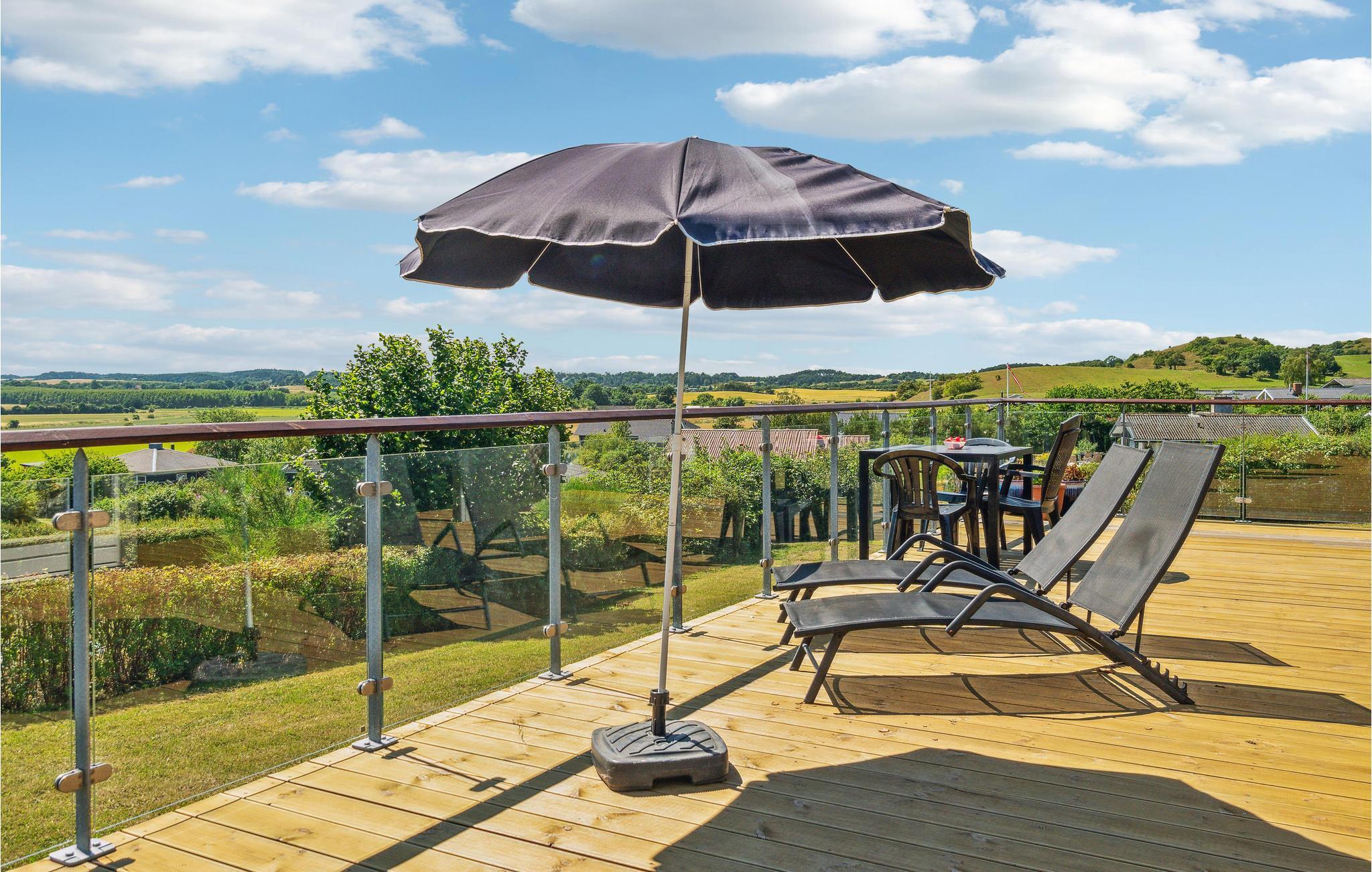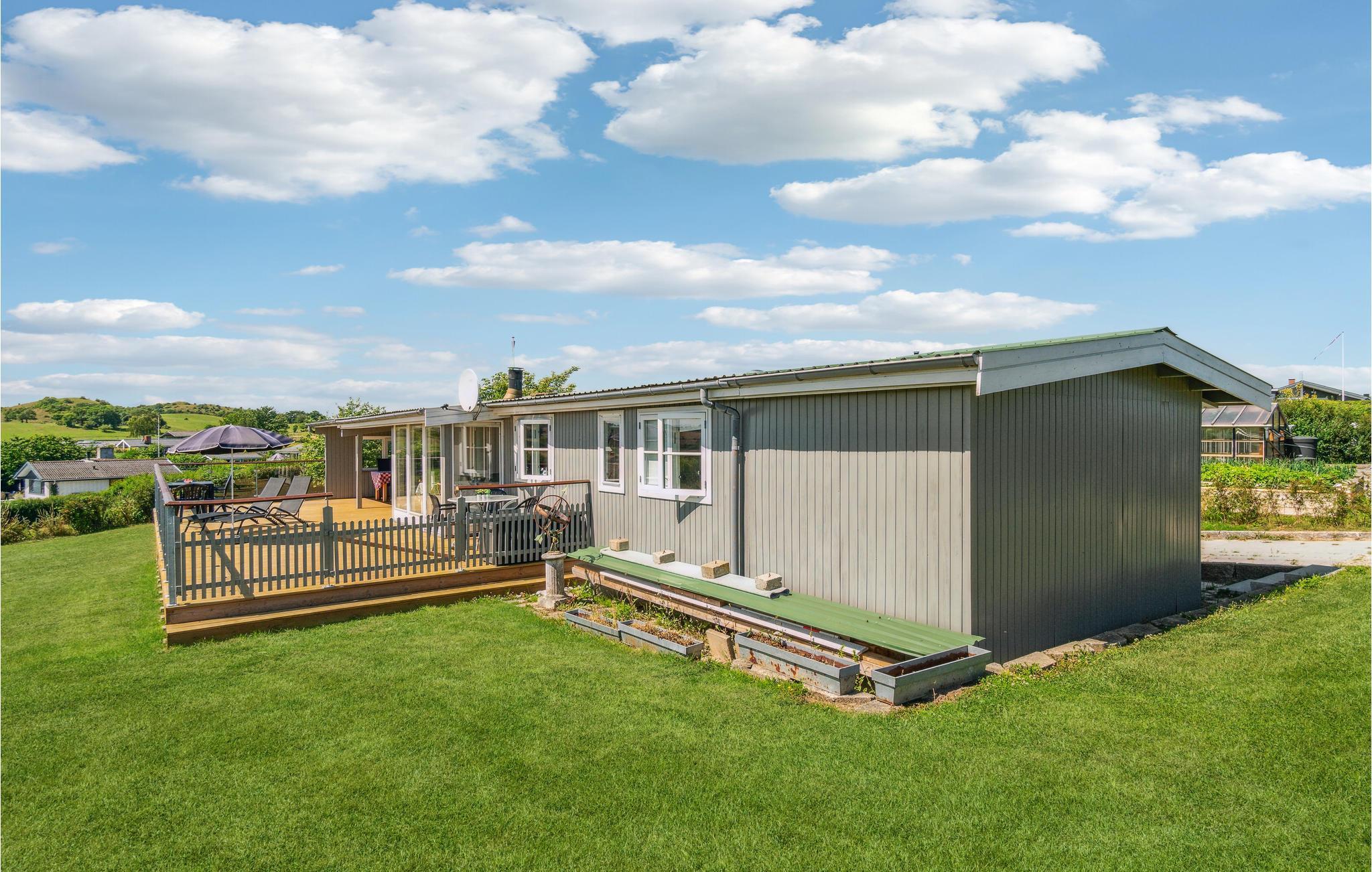 Moderne sommerhus ved Dråby Strand med skøn terrasse og tæt på havet for en afslappende ferie.