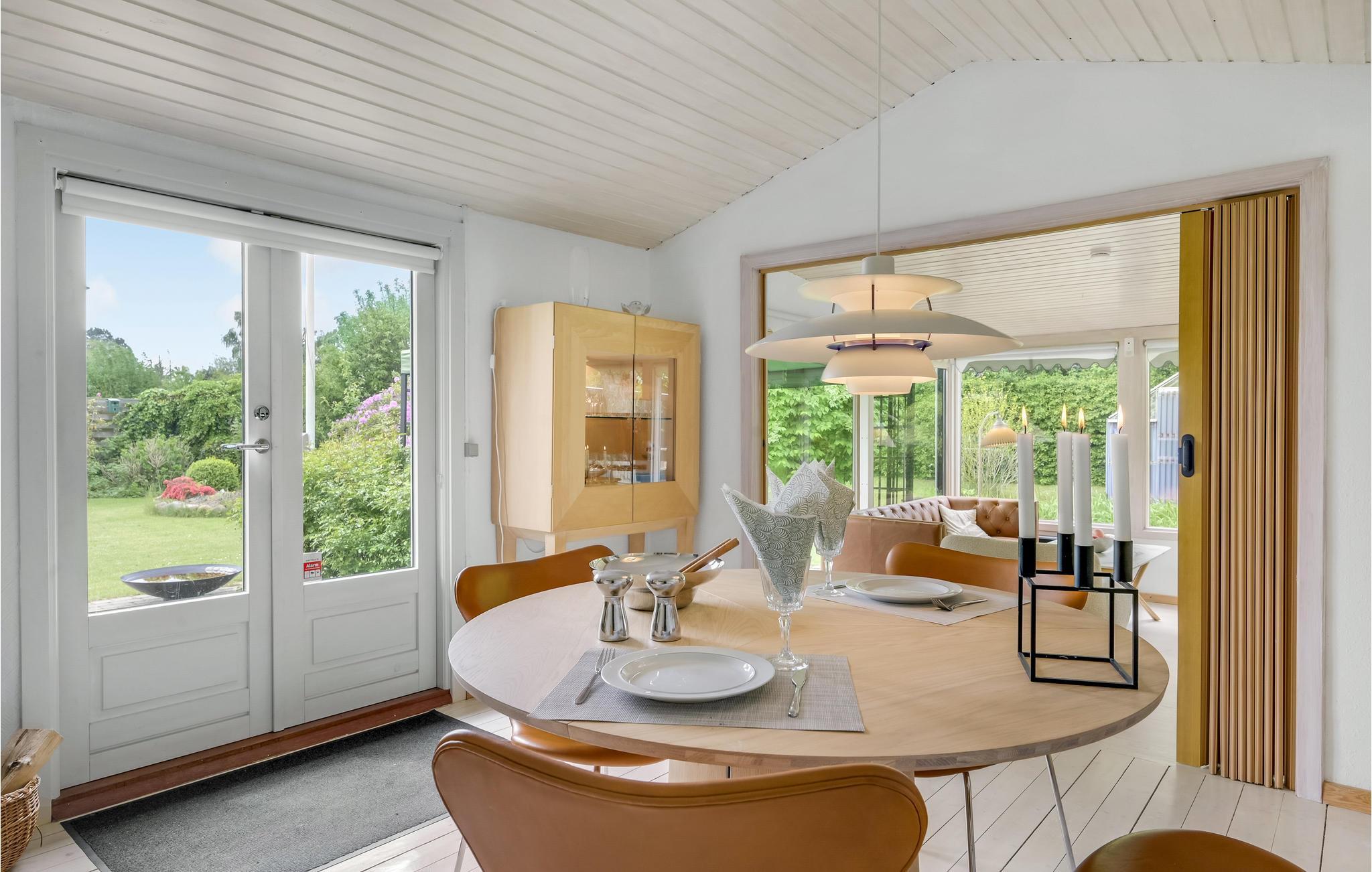 Der er lagt op til et hyggeligt ophold i dette fine hus, som ligger i naturskønne rammer ved Isefjorden. Huset er hyggeligt indrettet og danner en dejlig ramme om et ophold uanset årstid. Børnene kan boltre sig i den indhegnede have, mens I nyder en kop kaffe i havemøblerne. Efter en lang dag med aktiviteter i den friske luft kan I lave lækre retter i køkkenet og sætte jer ved det runde spisebord i stuen. Når solen er fremme, kan I dække op på den hyggelige terrasse og nyde dagens måltider her. I vinterhalvåret bliver udestuen jeres foretrukne sted til en solrig stund, og om aftenen er det ekstra stemningsfuldt, når ilden buldrer i stuens brændeovn.