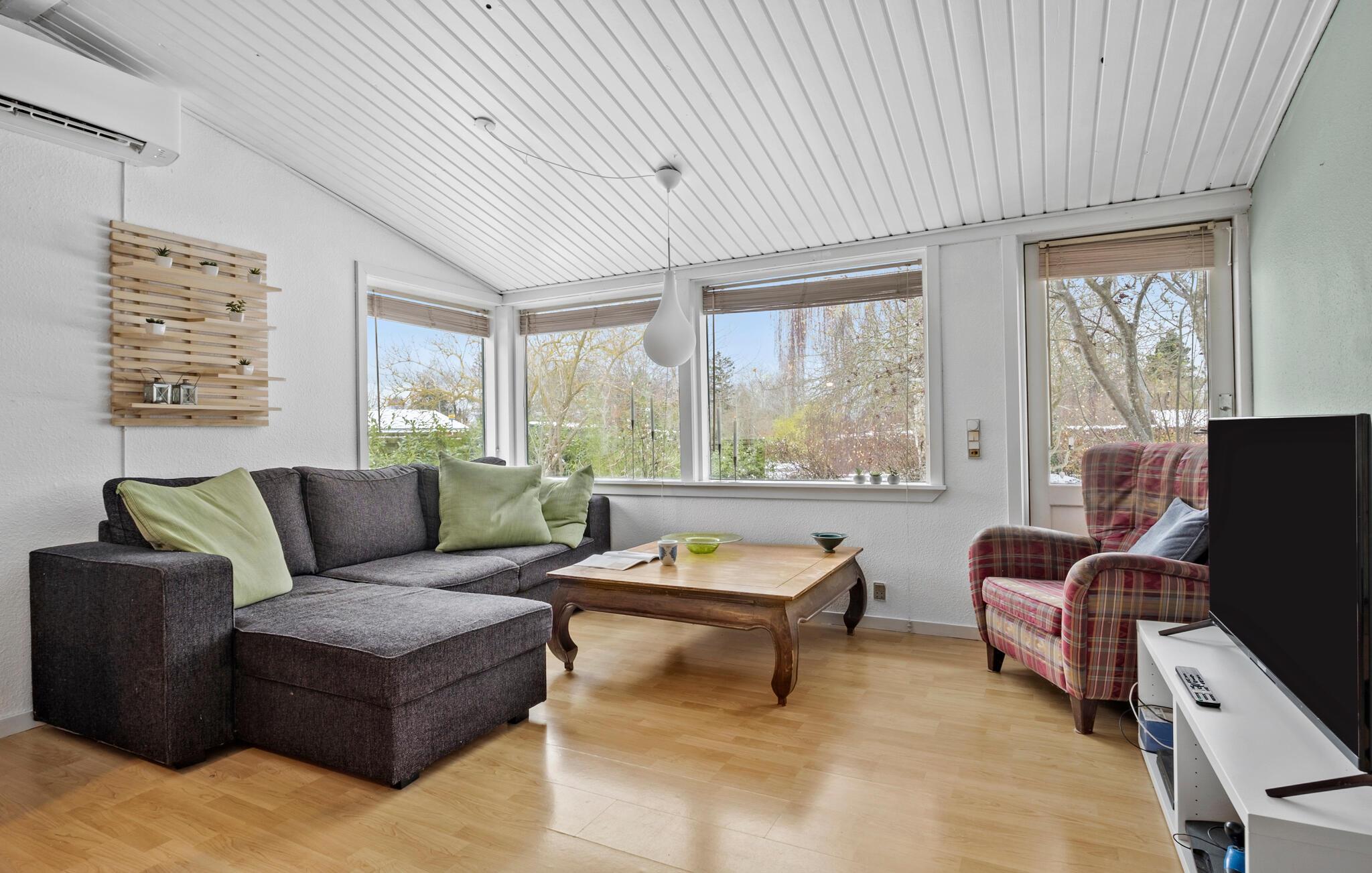 Velkommen til jeres lyse og indbydende sommerhus, som tilbyder jer et hyggeligt afbræk fra hverdagen. Tilbring stemningsfulde timer foran pejsen eller nyd freden og roen med en god bog eller en spændende film i den kærligt designede opholdsstue.