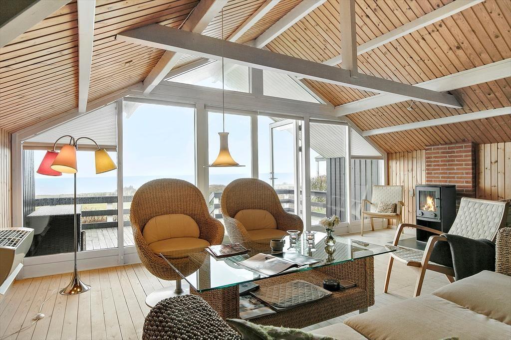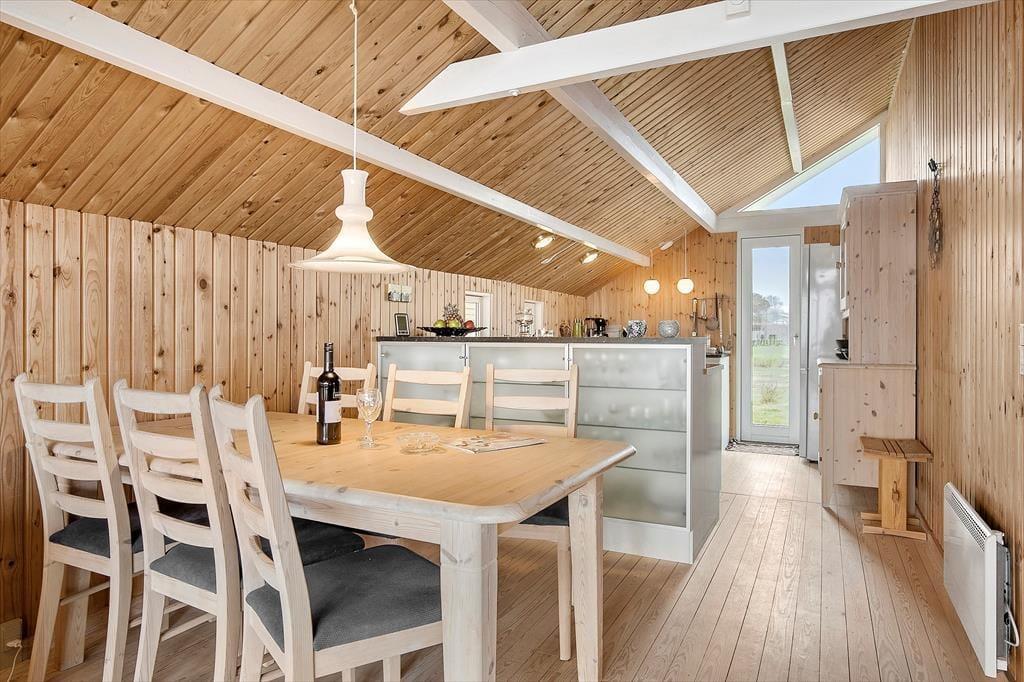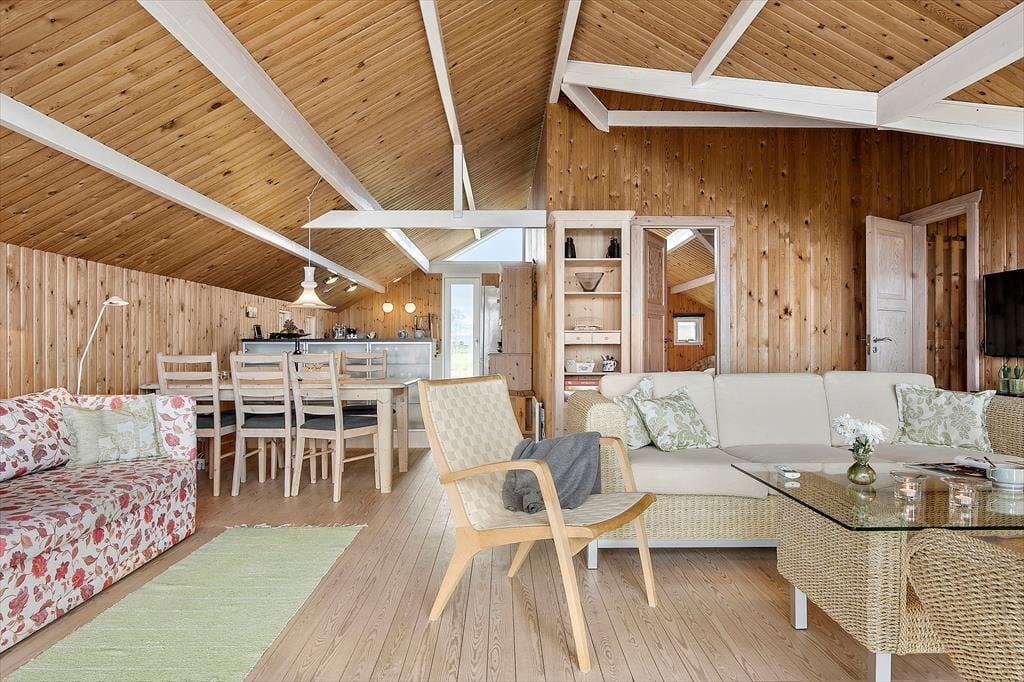 Feriehuset indeholder kombineret køkken og opholdsstue. Køkken med keramisk komfur, opvaskemaskine og køleskab med fryser. Skøn, lys opholdsstue med loft til kip og hvide loftbjælker, brændeovn, god spiseplads, sofa og lænestole, TV med Waoo Flex TV-pakke og Chromecast. (adgang til streamingtjenester kræver eget login) Badeværelse med flisegulv, bruseniche og vaskemaskine. To soveværelser, et med dobbeltseng, et med to enkeltsenge. Anneks med 2 enkeltsenge (OBS er kun brugbart i perioden 1/5 til 30/9). Desuden er der en dobbelt sovesofa i opholdsstuen.
