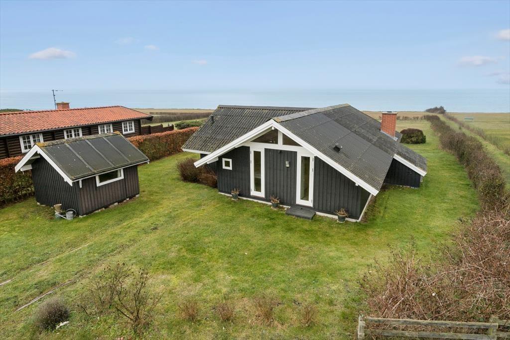 Huset har en 1593 m2 stor grund. Grunden går helt ud til strandarealet ved Drøsselbjerg strand. Der er en delvist overdækket træterrasse med havudsigt, som inviterer til total afslapning. Ved feriehuset er der havemøbler, grill og parasol.