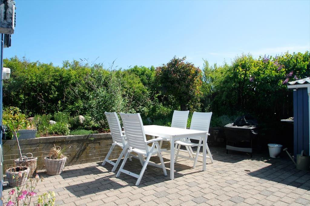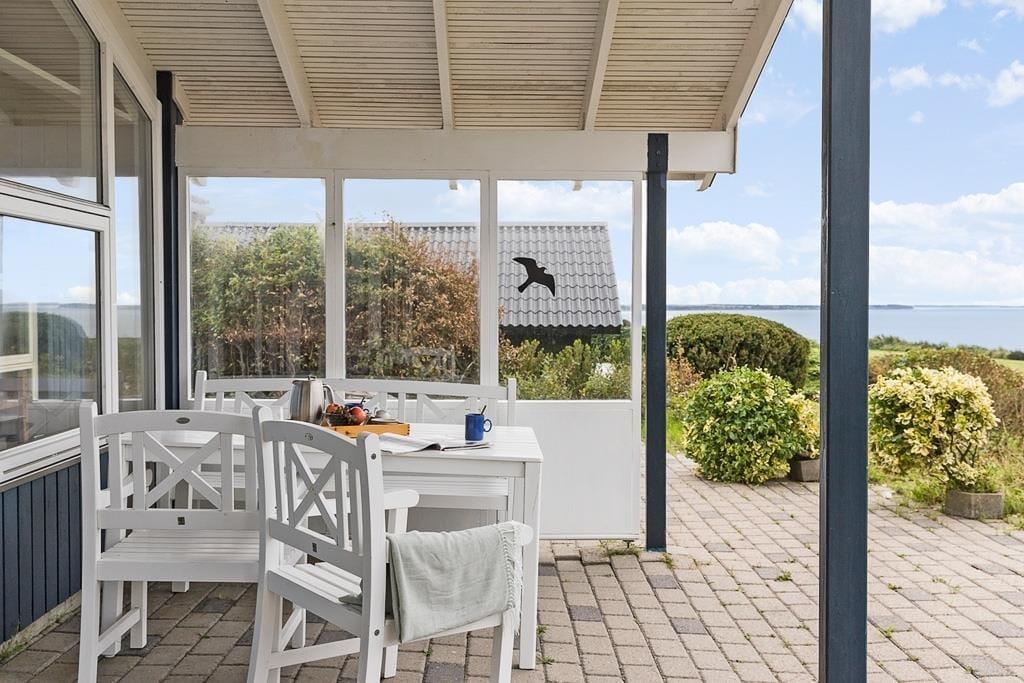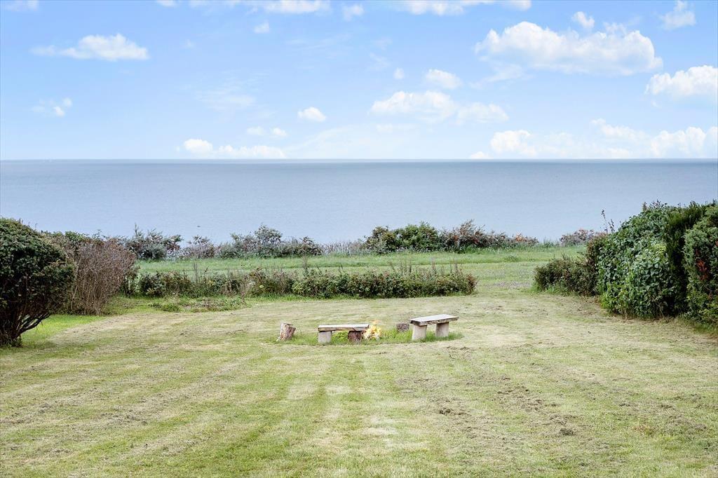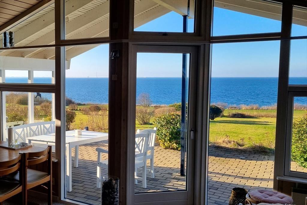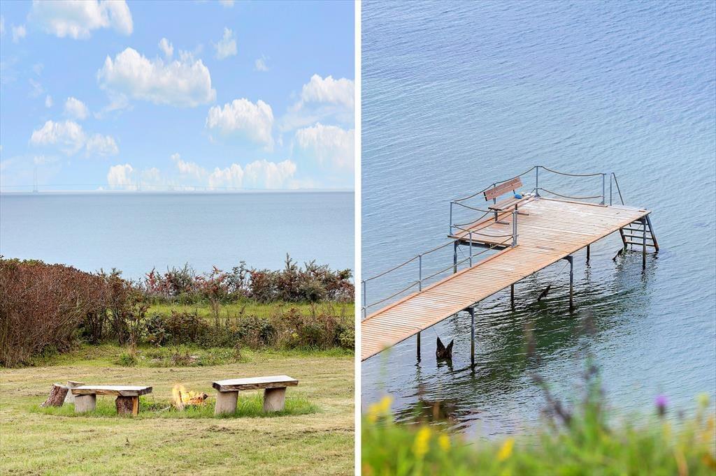 Huset har en 1220 m2 stor grund. Grunden skråner ned mod vandkanten, hvilket gør, at I har en fuldkommen uhindret udsigt fra den delvist overdækkede, vestvendte terrasse ved huset udover vandet, og spejder I mod sydvest, kan I se hele Storebæltsbroens spænd i horisonten. Bedre beliggenhed får I ikke. Glæd jer til at gå ned gennem haven og fornemme havets bølger komme tættere på, eller sæt jer omkring bålstedet og nyd udsigten. Terrassen, som inviterer til total afslapning og hygge er delvis overdækket Ved feriehuset er der havemøbler, liggestole, grill, udendørs bruser (OBS! kan kun anvendes fra Maj til Oktober).