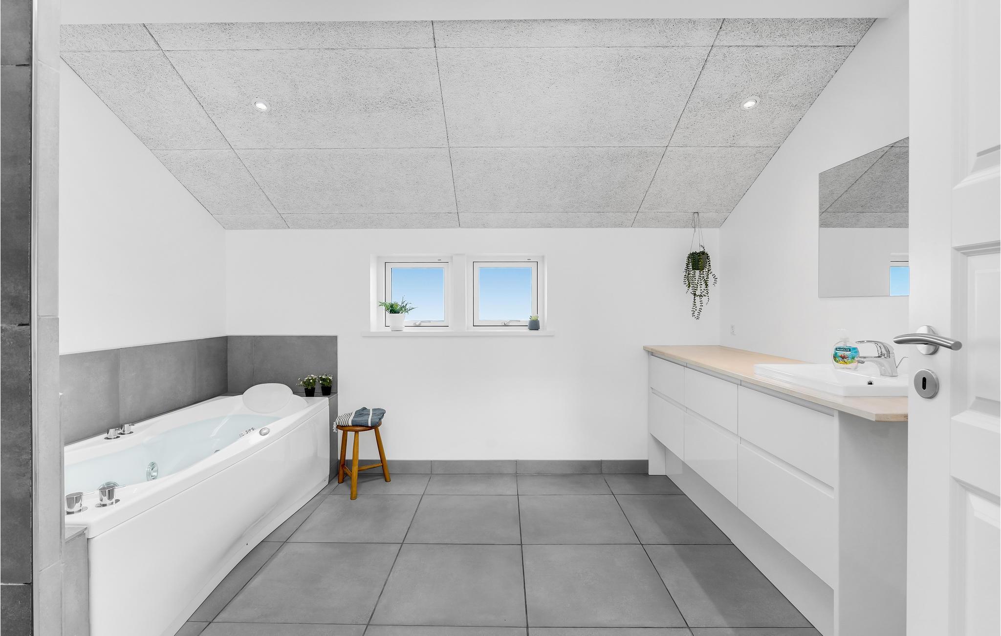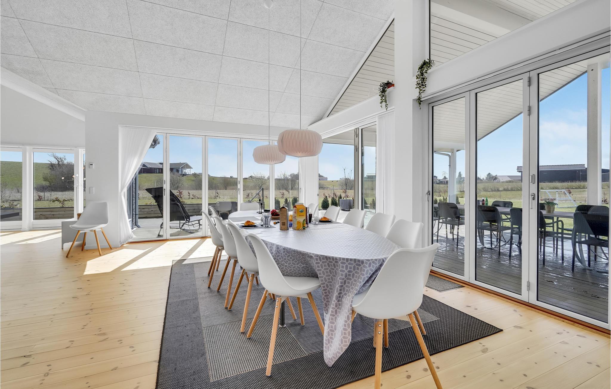 Stilfuldt og rummeligt feriehus i rolige omgivelser nær Drøsselbjerg Strand med spabad og stor terrasse.