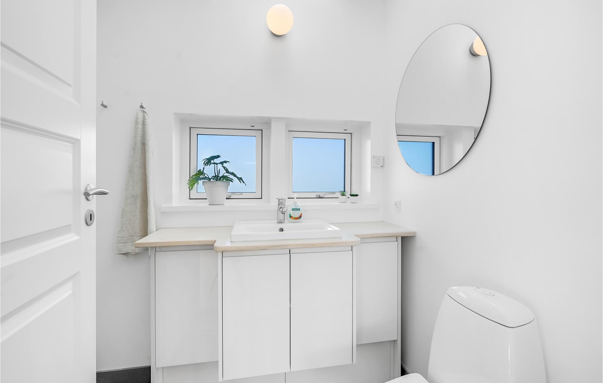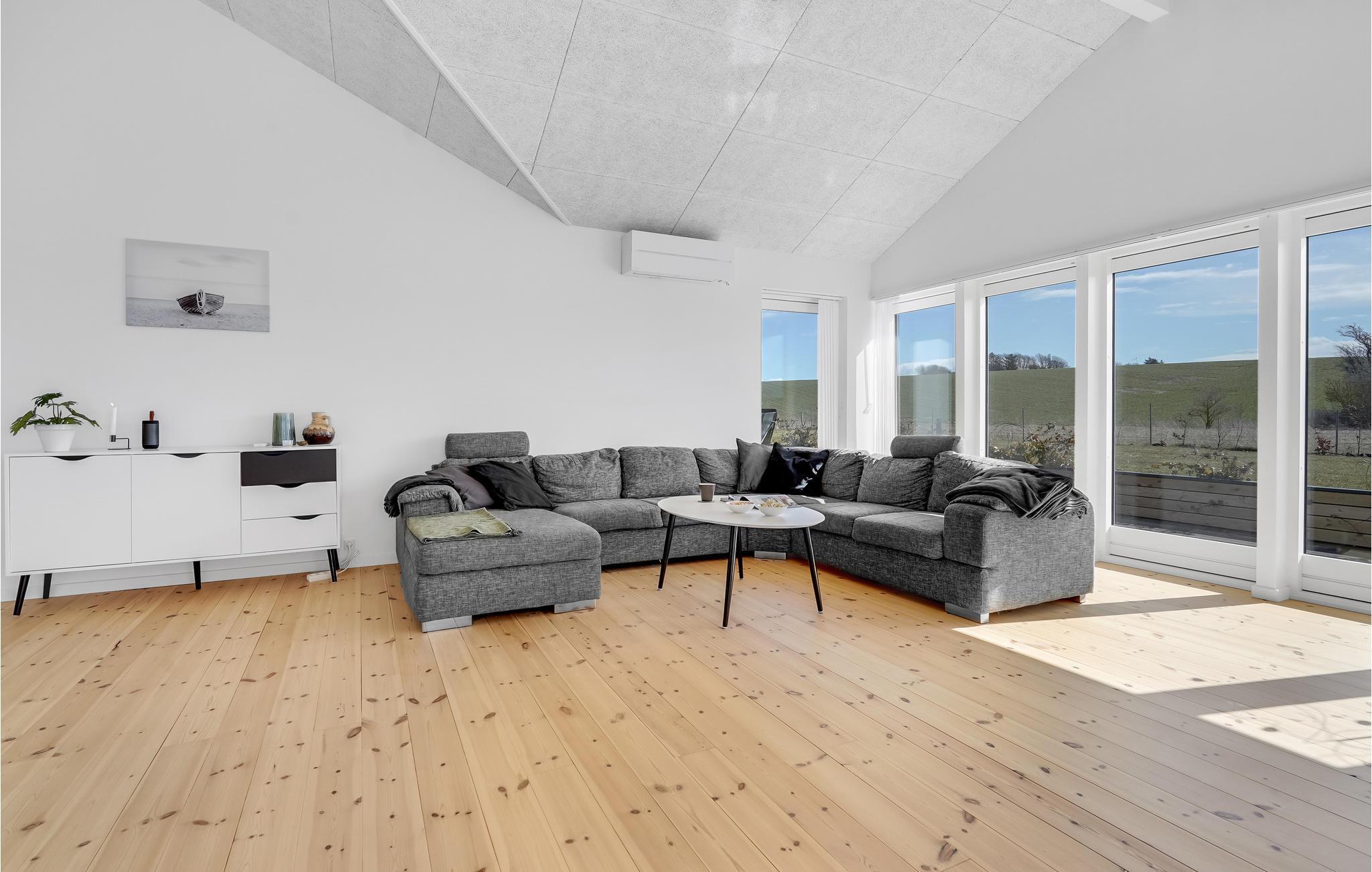 Huset ligger uforstyrret på en kæmpe naturgrund i et roligt sommerhusområde ved Drøsselbjerg Strand. Indvendigt er det stilfuldt indrettet og utroligt lyst takket være de mange store vinduespartier. Det har en åben planløsning, så man frit kan bevæge sig fra det lækre, veludstyrede køkken med kogeø til spisepladsen og opholdsområdet med sofa og stort fladskærms-TV, der indbyder til hyggelige filmaftener.