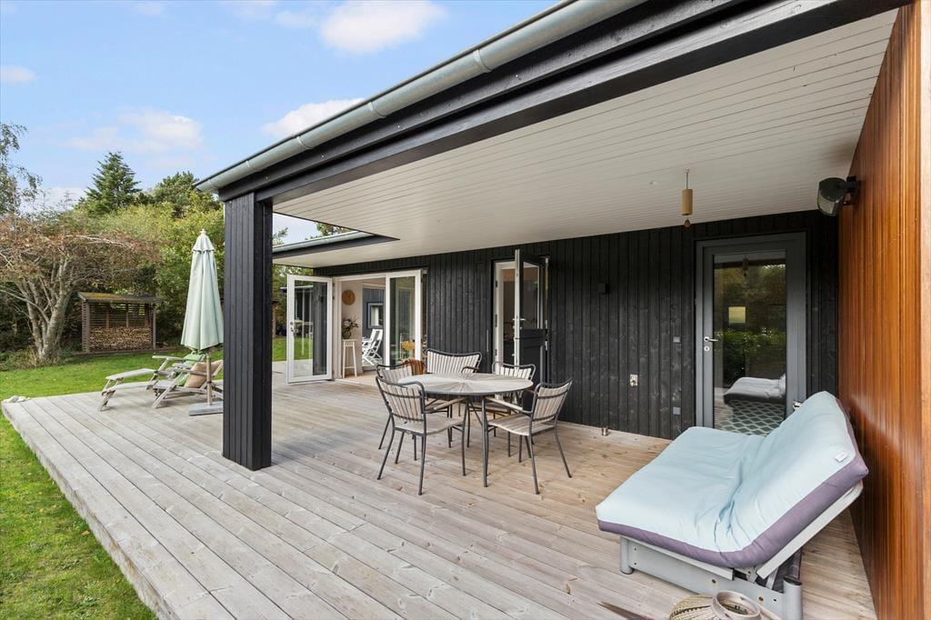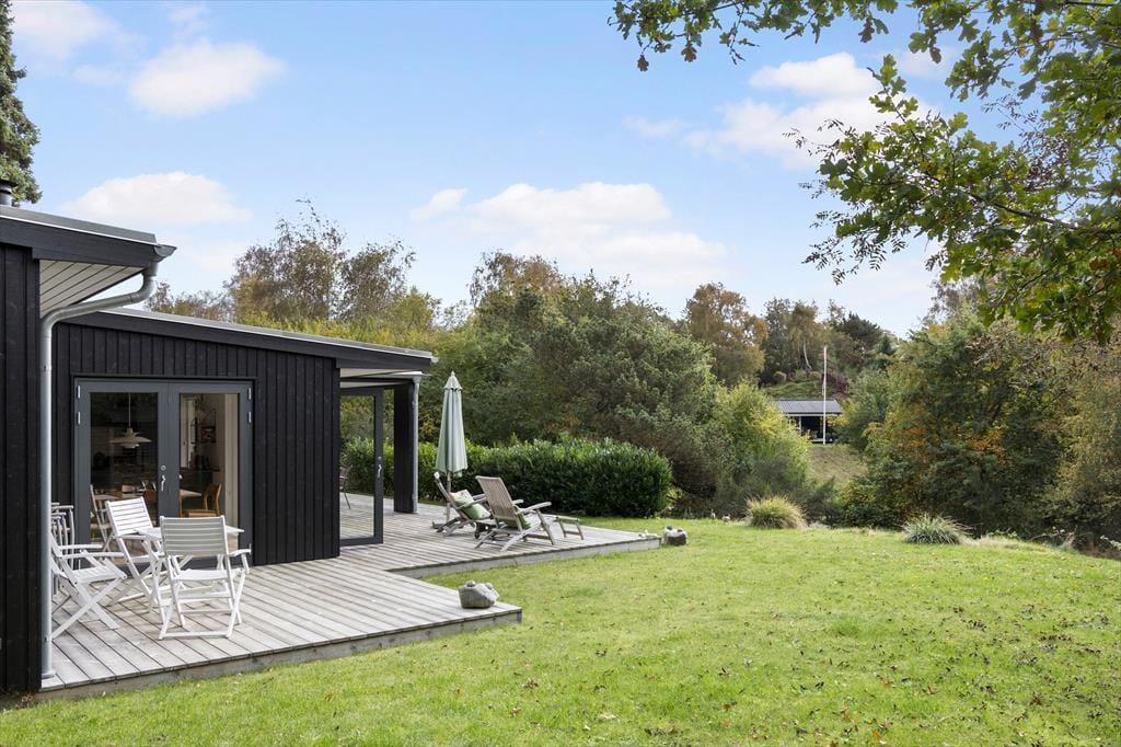 Udenfor venter en stor, skøn naturgrund – perfekt til både afslapning og leg. På den delvist overdækkede terrasse kan du nyde livet i al slags vejr: Spis morgenmad i solen, læn dig tilbage med en god bog i skyggen, eller slap af med et glas vin, mens duggen falder. Her er plads til både grillhygge og afslappede sommeraftener. Kun cirka 200 meter fra huset finder du Begtrup Vig Strand – en perle ved Kattegat, hvor du kan bade, samle sten eller nyde de smukke solnedgange. Huset byder også hjerteligt velkommen til hunde, så hele familien kan være med. Her får du virkelig ro, natur og nærvær – lige udenfor døren.