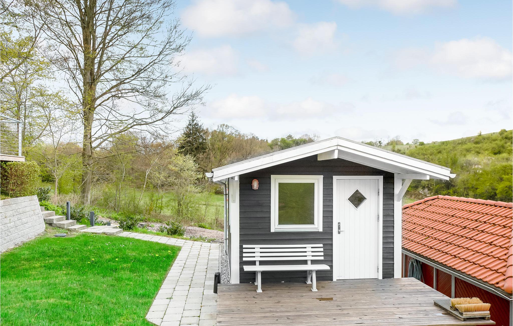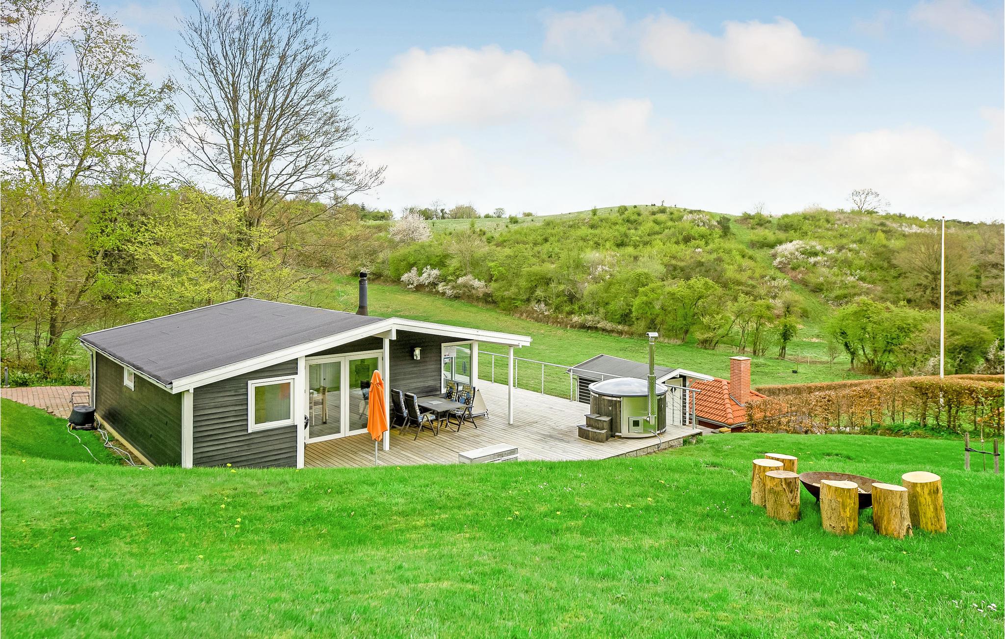 Hyggeligt sommerhus med terrasse og vildmarksbad