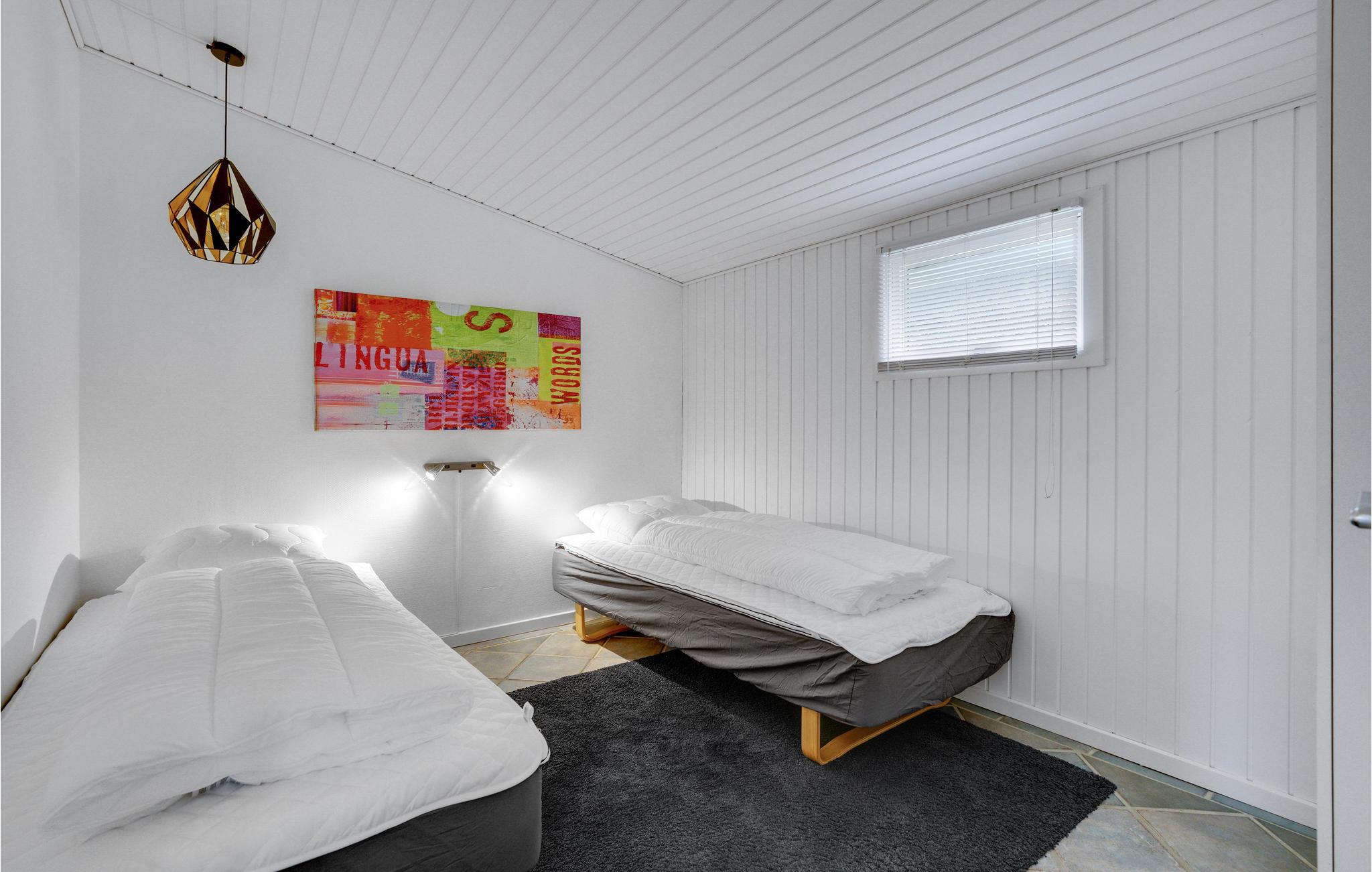 Huset har 3 soveværelser med to dobbeltsenge og to enkeltsenge, et badeværelse og et køkken/spisestue. Et af soveværelserne er i annekset, som der nogle få trappetrin optil. I midten af ??huset ligger den lyse opholdsstue med sofa og spisebord, hvor I kan tilbringe hyggelige timer med familie eller venner.