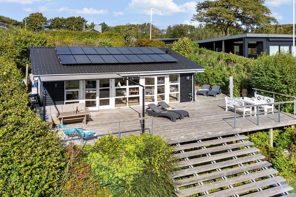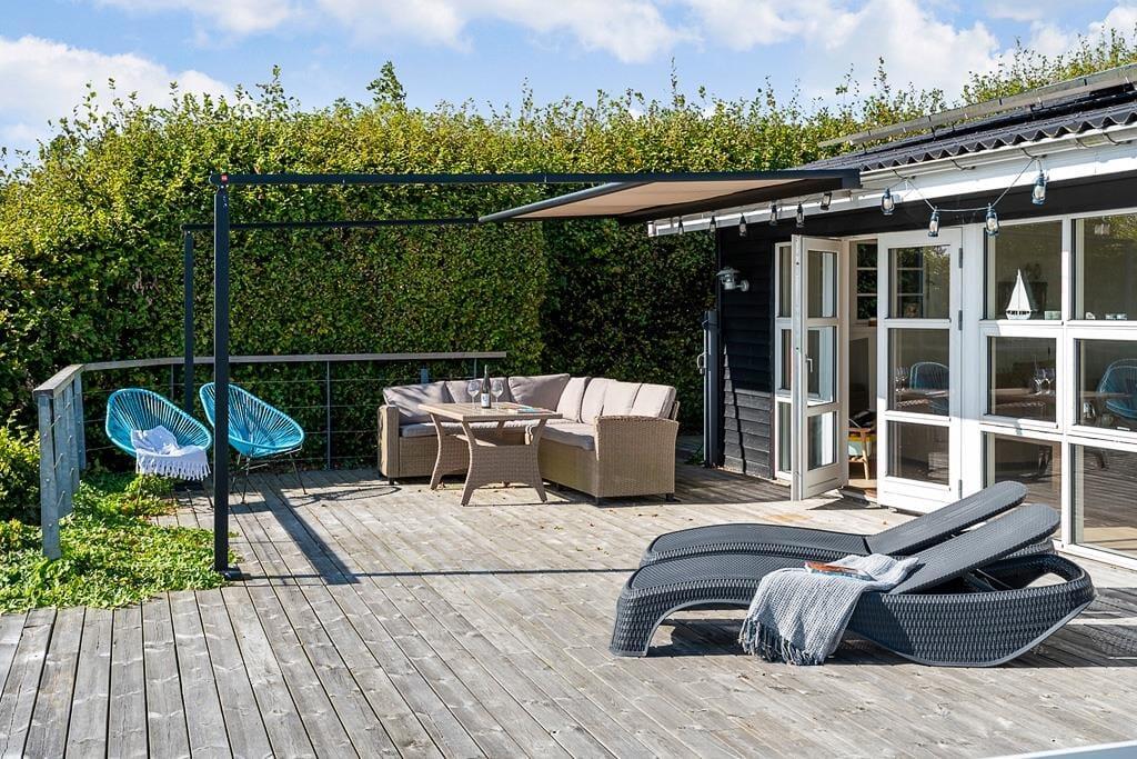 Sommerhusets store træterrasse er et af de steder, hvor livet virkelig leves. Her kan du slå markisen ud og finde skygge på varme sommerdage eller sidde beskyttet, når aftenduggen falder. Udsigten til fjorden gør enhver stund på terrassen til noget særligt – uanset om du nyder en friskbrygget morgenkaffe, en god middag med familien eller bare lader blikket hvile på det rolige vand. Den naturskønne have omkring sommerhuset indbyder til afslapning og samvær, hvor børnene kan lege frit, mens de voksne finder en stille krog at trække sig tilbage til. Her får du fornemmelsen af ægte sommerhusliv, hvor tiden går lidt langsommere, og naturen er en naturlig del af ferien.