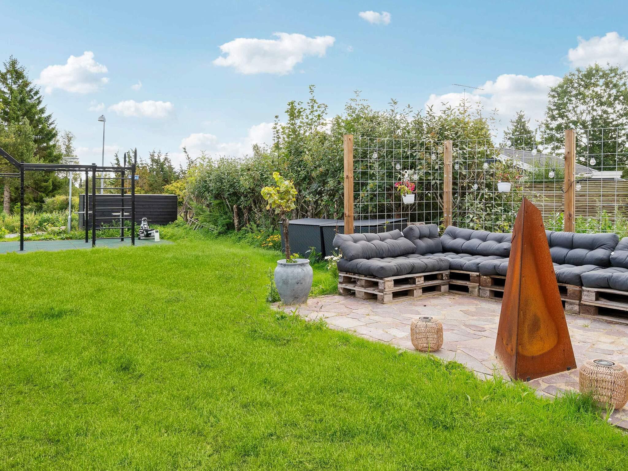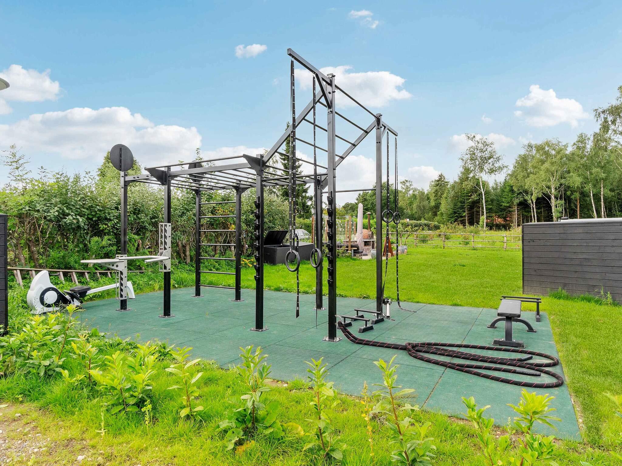 Børn kan more sig i poolen med vandrutsjebane og modstrømssystem, mens fitnessentusiaster kan teste deres styrke i det udendørs træningsområde – perfekt til både styrke- og konditionstræning. Haven er et paradis for de mindste med trampolin, sandkasse og legetårn.