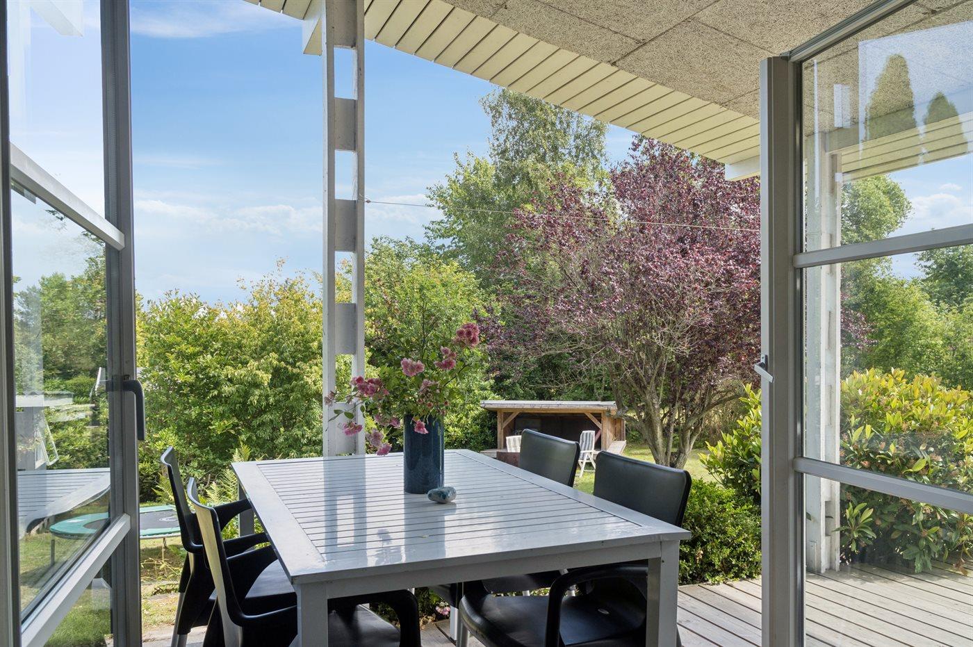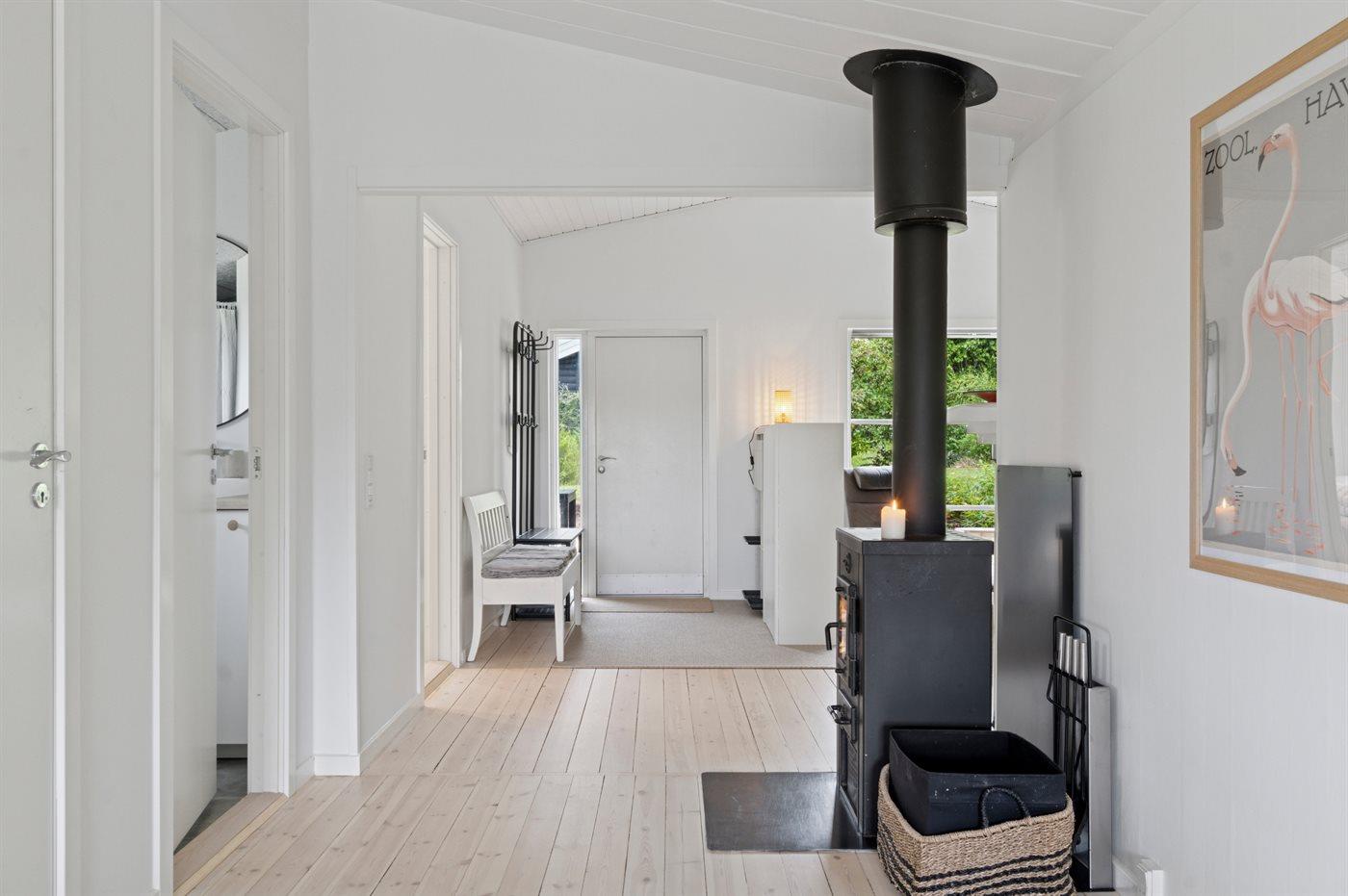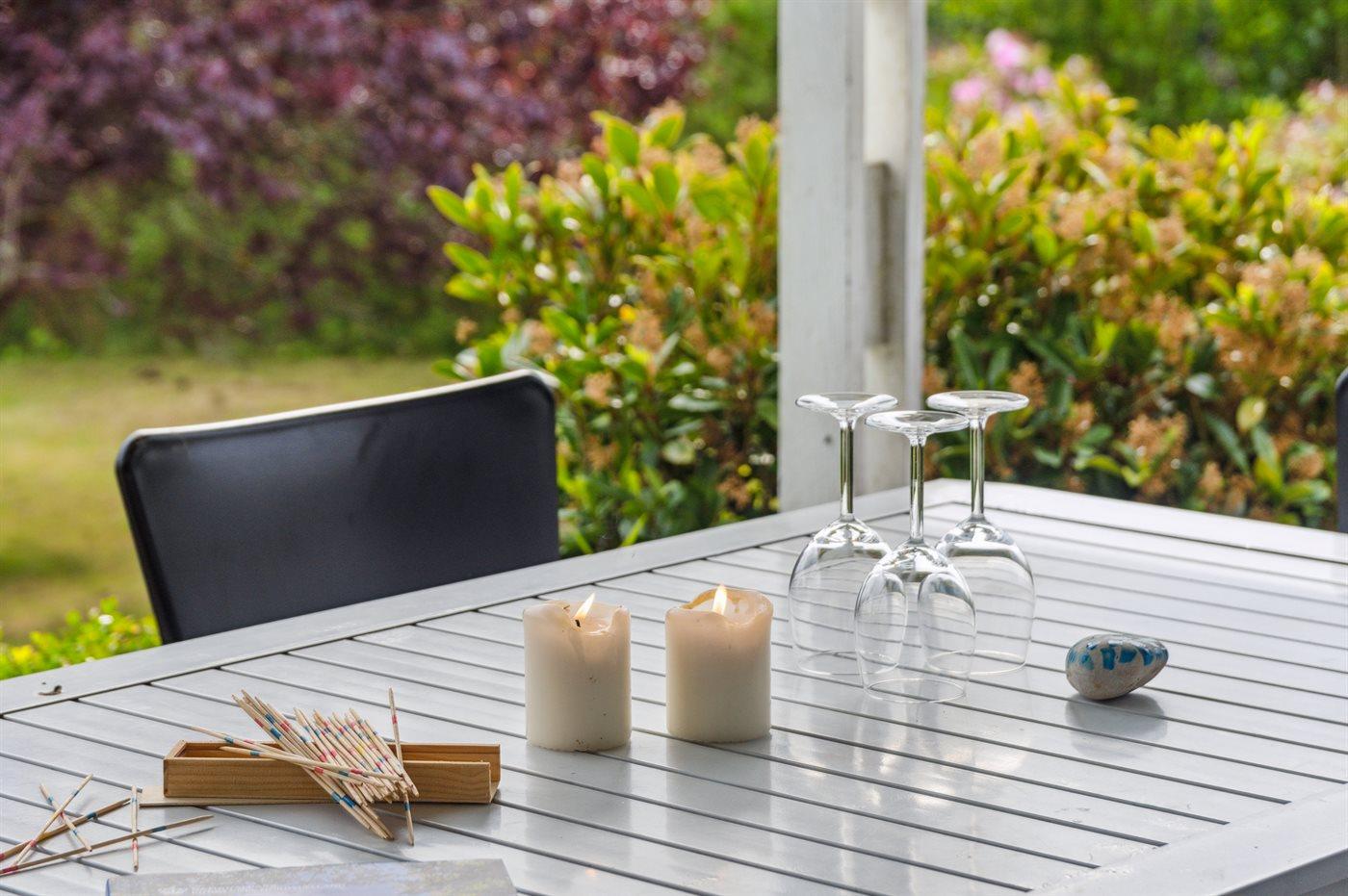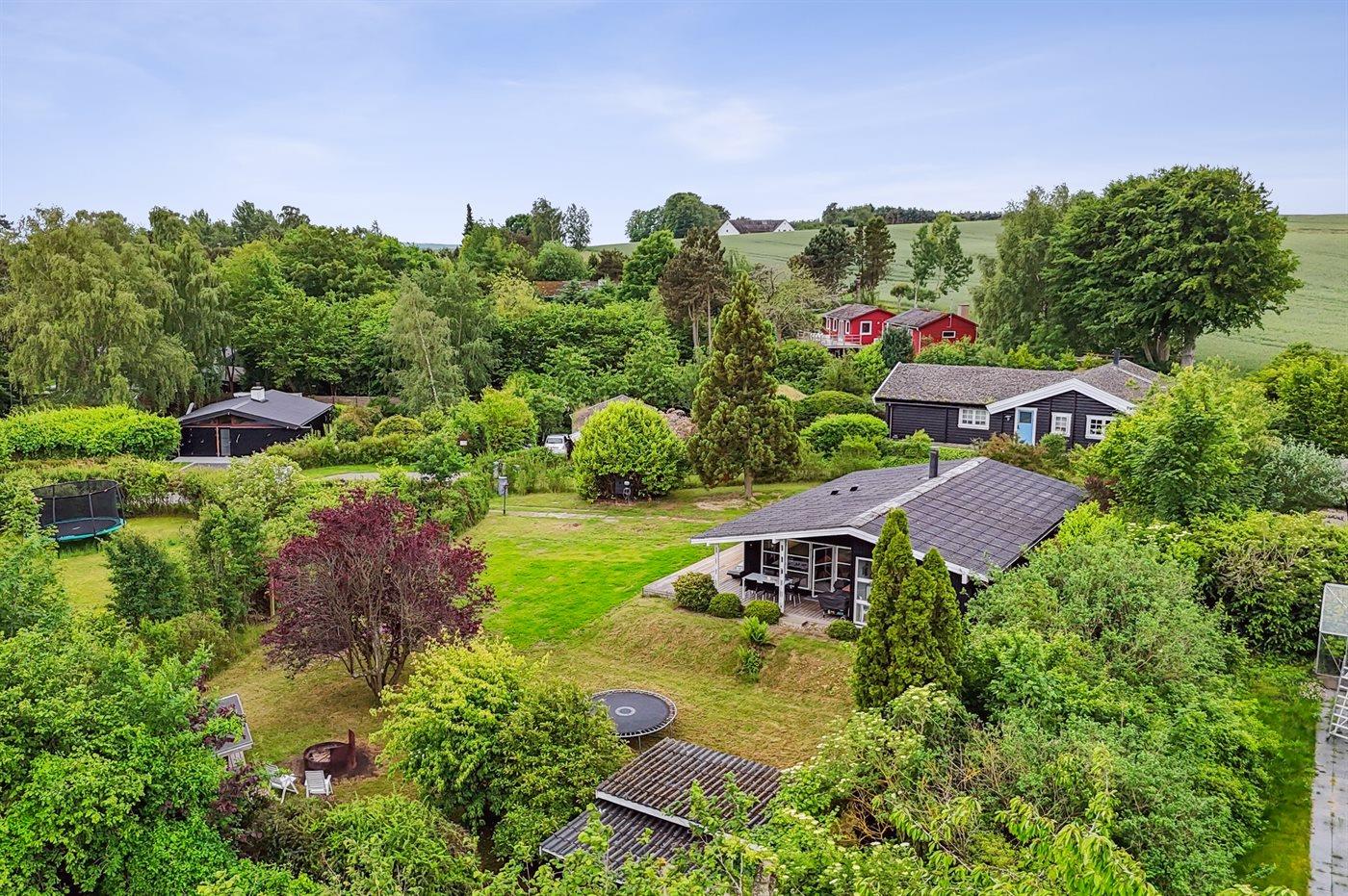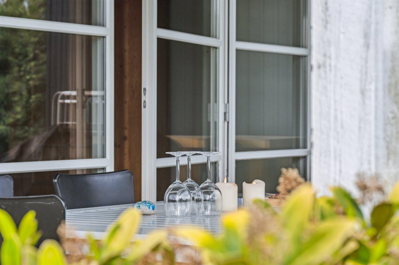 Ferieboligen er beliggende på en 1200 m² stor havegrund. Der er 600 m til havet. Nærmeste forretning er beliggende i en afstand af 2100 m. Til ferieboligen hører åbent terrasseareal. Desuden er der overdækket terrasse. Bålsted. Shelter. Grill til rådighed. Der er installeret stik til opladning af elbil. Type 2 stik. Med 11 kW ladeeffekt. Parkering ved ferieboligen.