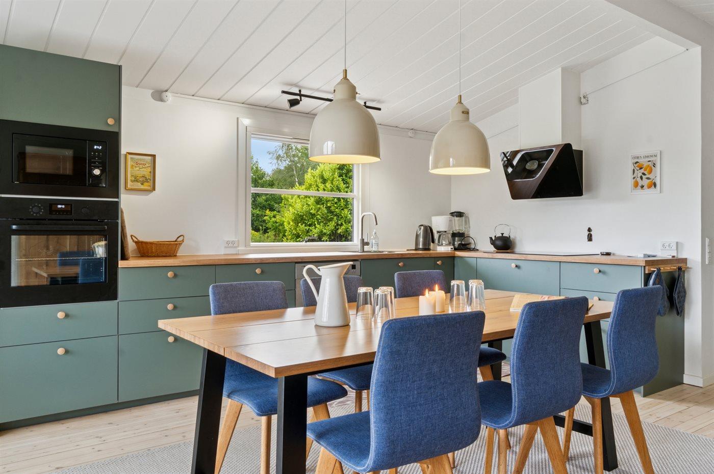 Køkkenet er udstyret med 1 køleskab. Der er 4 induktionskogeplader, varmluftovn, mikrobølgeovn samt opvaskemaskine.