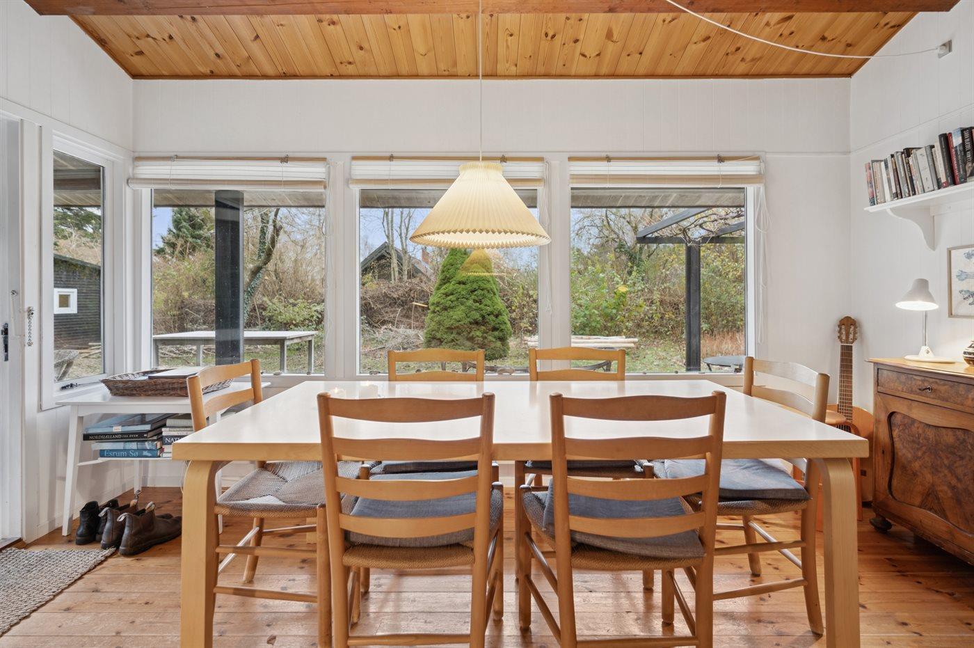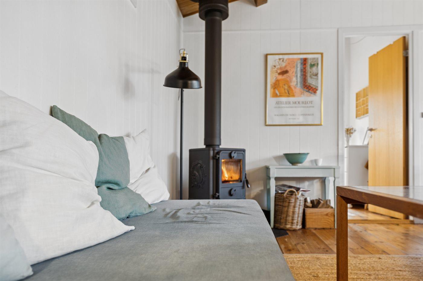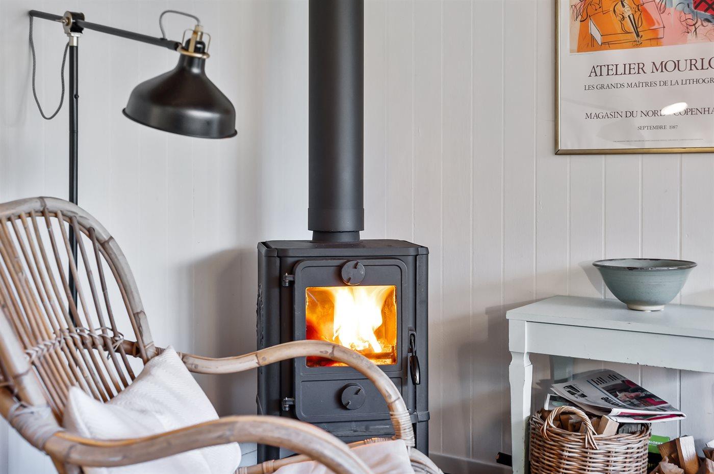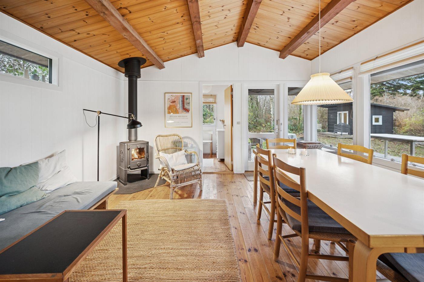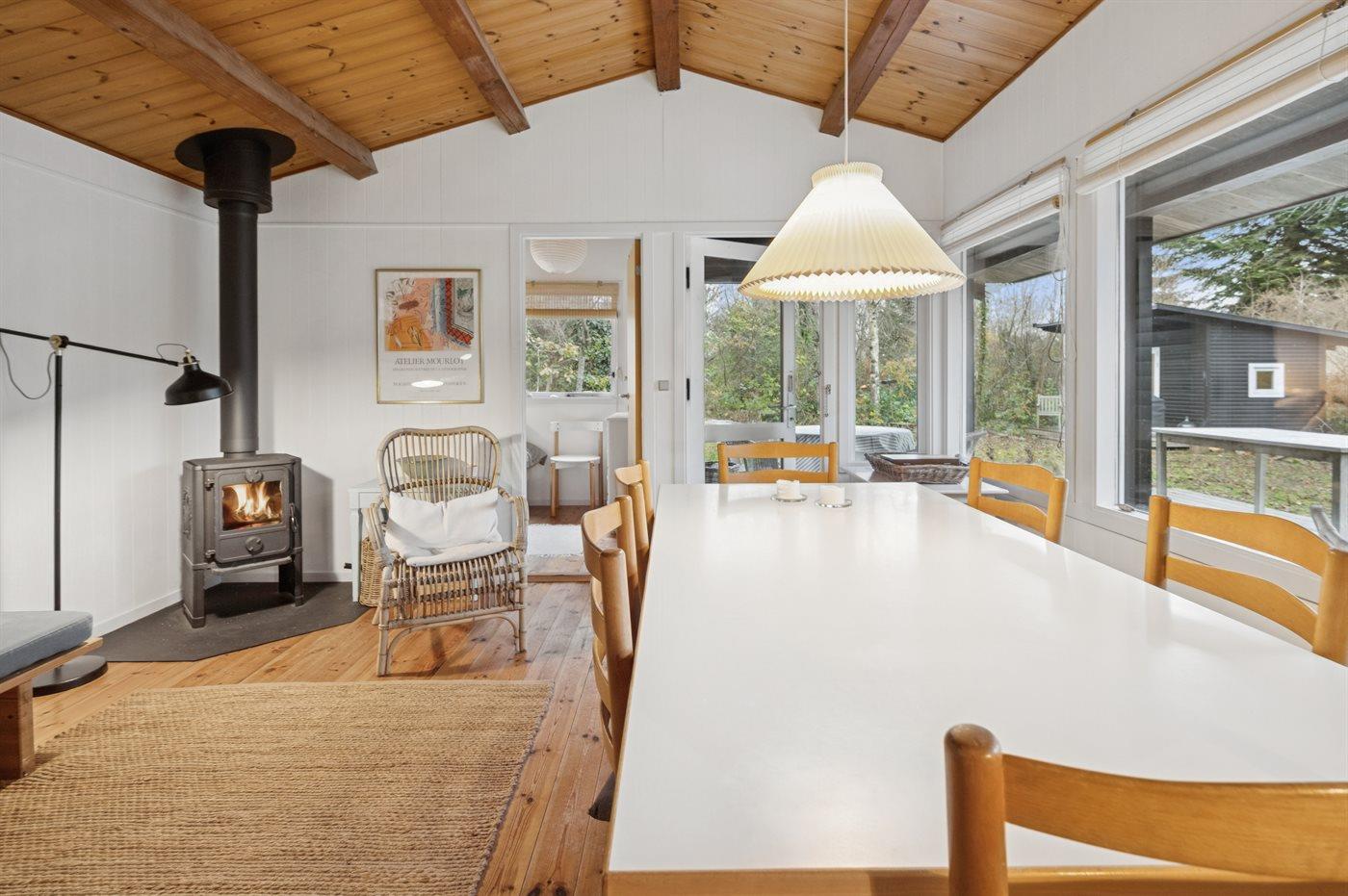 Huset emmer af klassisk sommerhusstemning med brændeovn, trævægge og hyggelige rum, hvor man naturligt samles. Det nybyggede anneks giver ekstra komfort og fleksibilitet – perfekt som et fredeligt soveområde til teenagere eller bedsteforældre.
