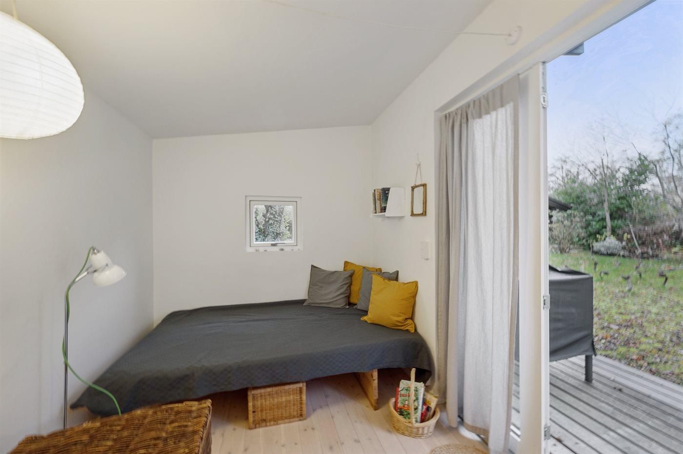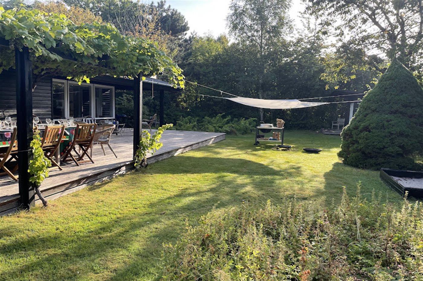 Den omkringliggende have er ugeneret og indrettet med solrige kroge, en bålplads til sommernætter og masser af plads til leg og afslapning.