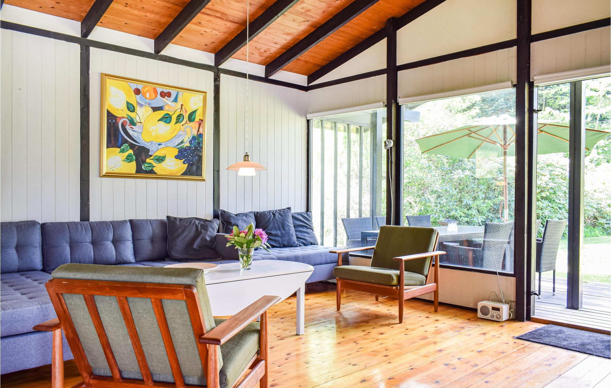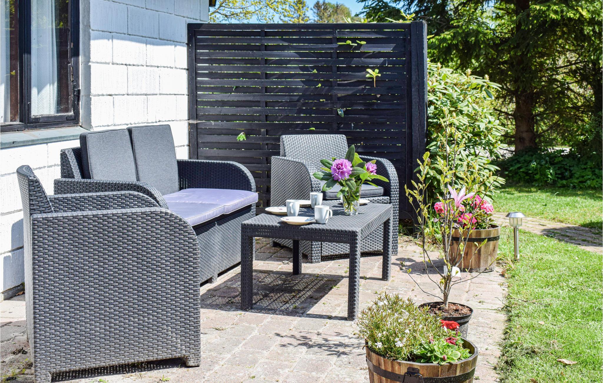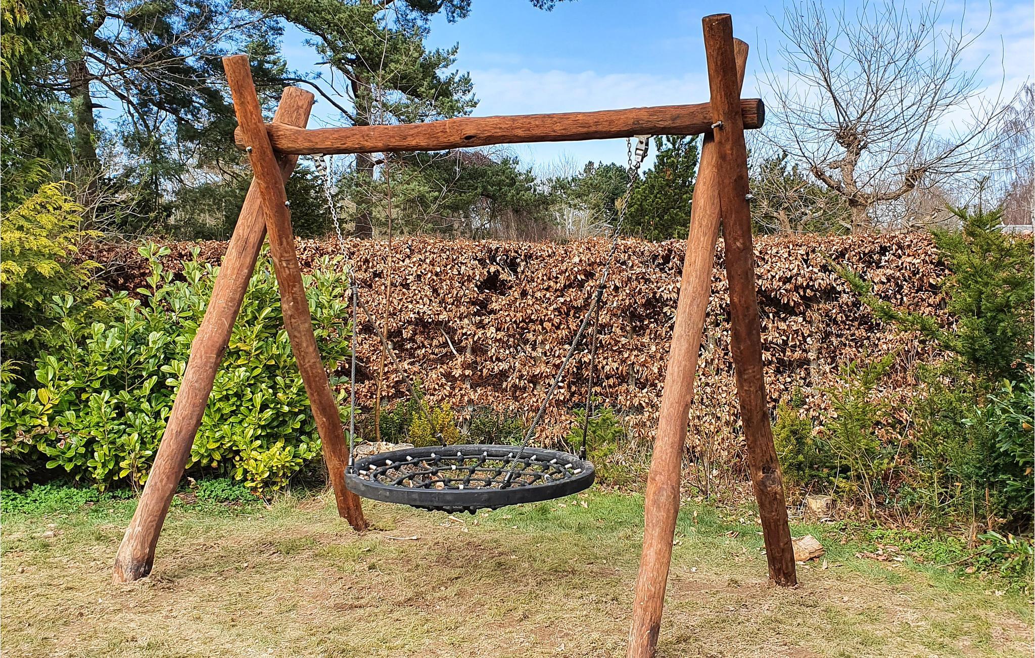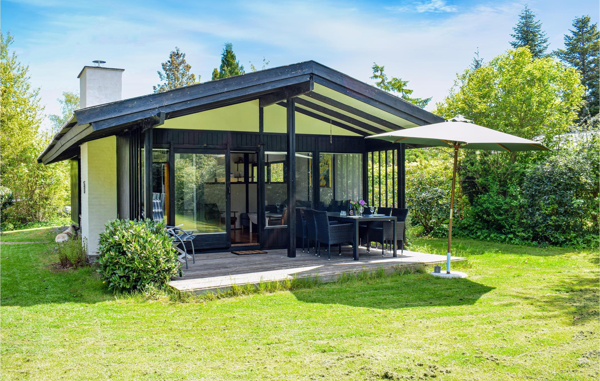 I dette charmerende og klassiske danske sommerhus kan I ikke undgå at komme ned i tempo og lukke feriestemningen indenfor. Huset er bygget i træ og er omgivet af træer samt en stor, grøn have, hvor børnene kan lege i uforstyrrede og private omgivelser. Udenfor har I en hyggelig overdækket træterrasse med havemøbler og udsigt til haven. På den anden side af huset har I endnu en terrasse med komfortable havemøbler og grill . Der er fodboldmål 25 meter fra huset, hvor der er en stor grøn græsplæne.