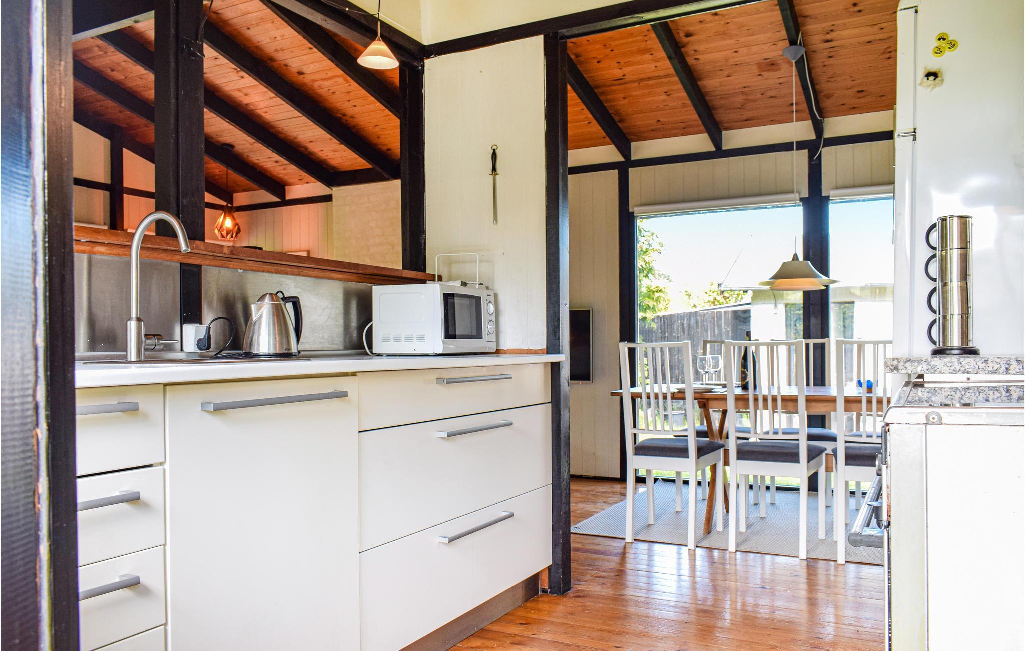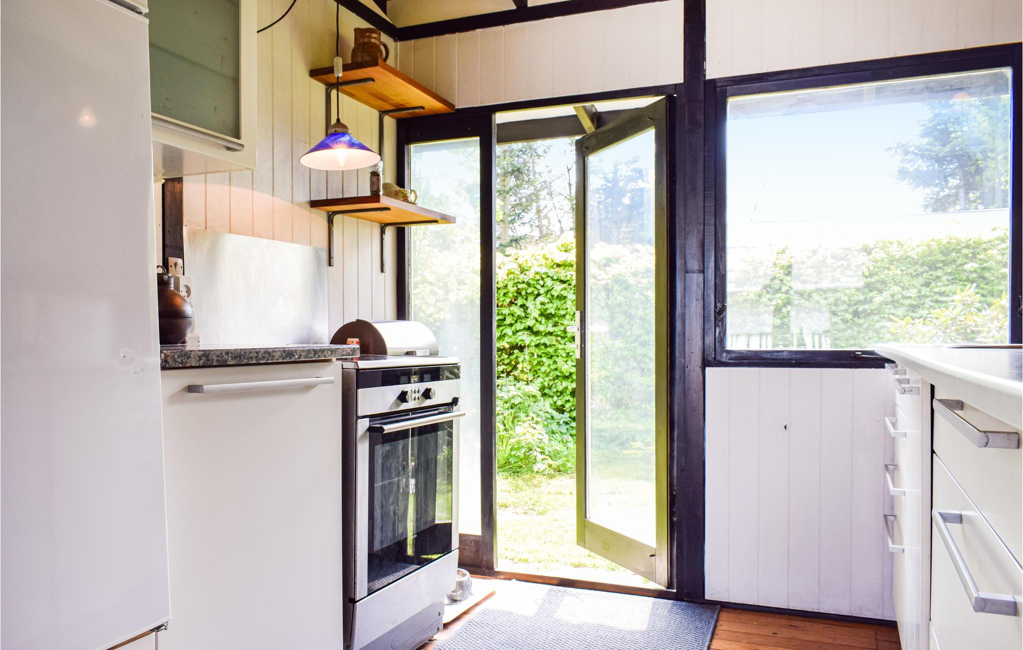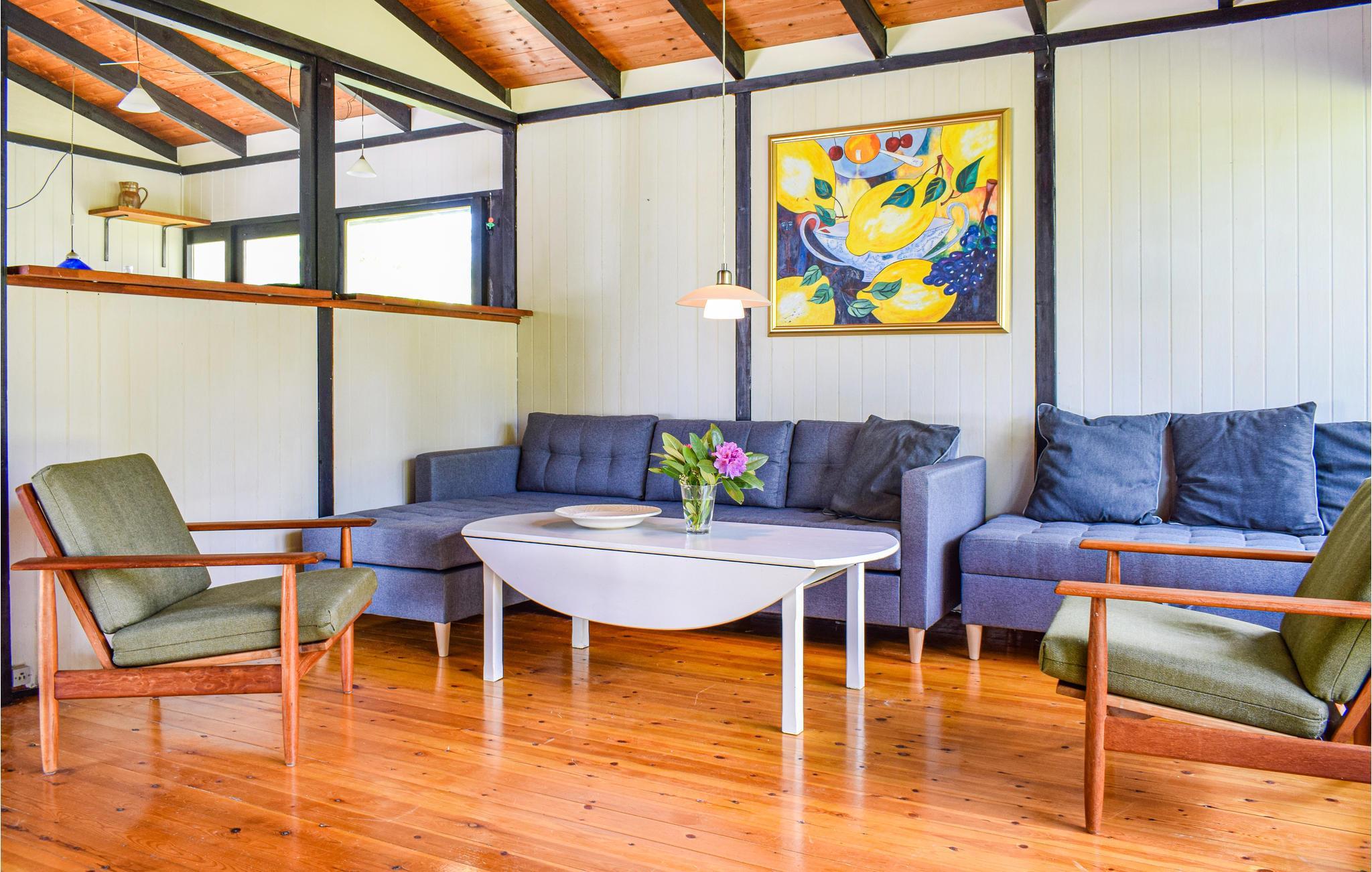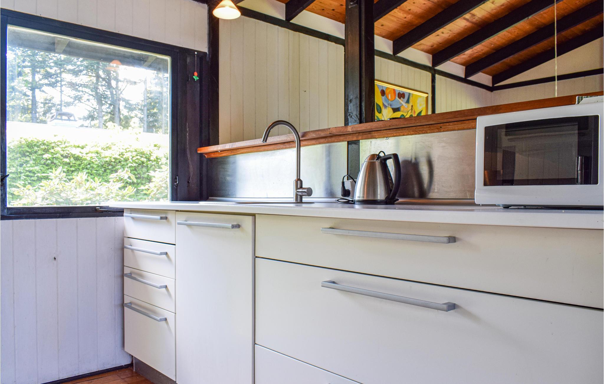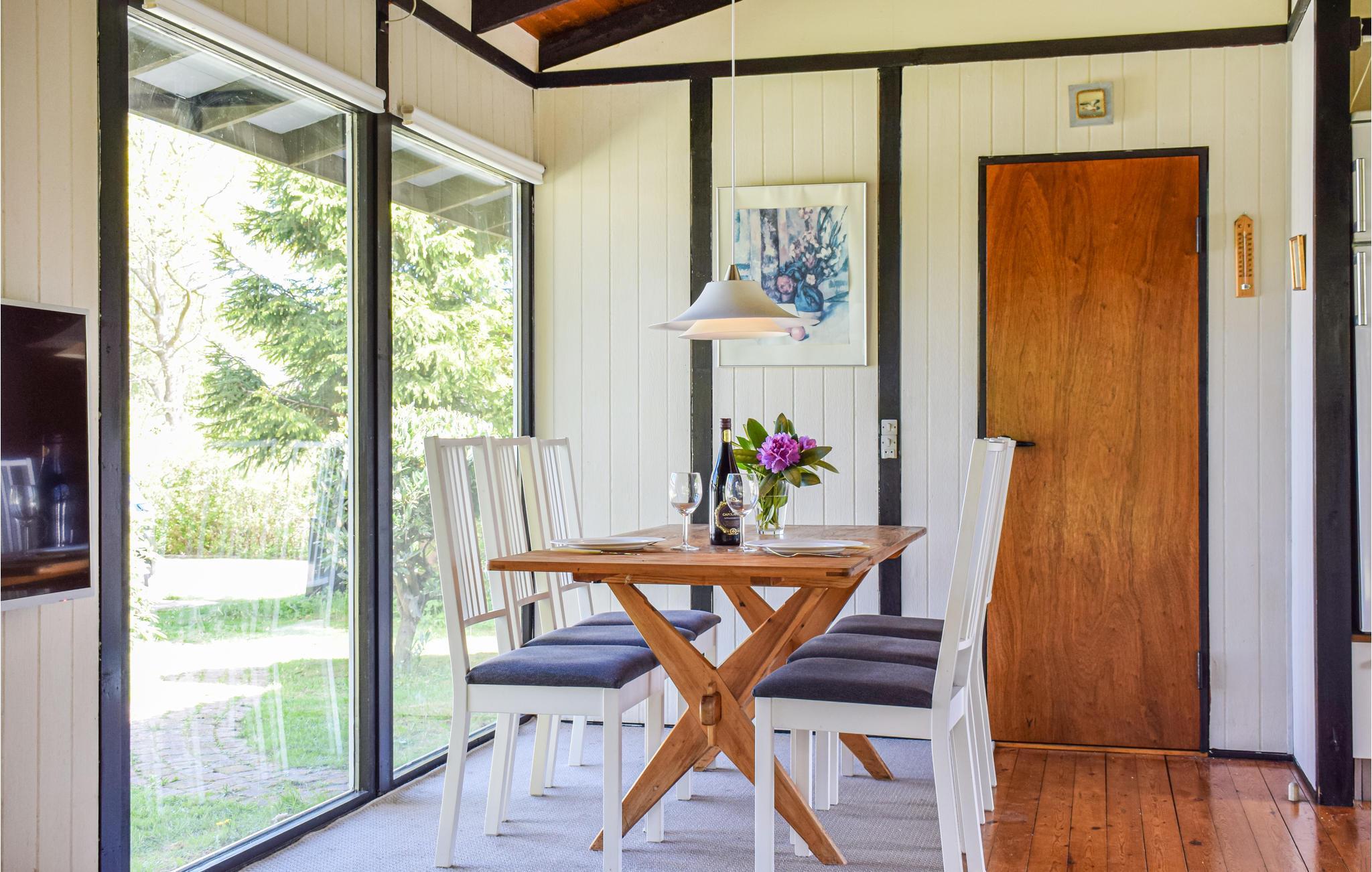 I dette charmerende og klassiske danske sommerhus kan I ikke undgå at komme ned i tempo og lukke feriestemningen indenfor. Huset er bygget i træ og er omgivet af træer samt en stor, grøn have, hvor børnene kan lege i uforstyrrede og private omgivelser. Udenfor har I en hyggelig overdækket træterrasse med havemøbler og udsigt til haven. På den anden side af huset har I endnu en terrasse med komfortable havemøbler og grill . Der er fodboldmål 25 meter fra huset, hvor der er en stor grøn græsplæne.