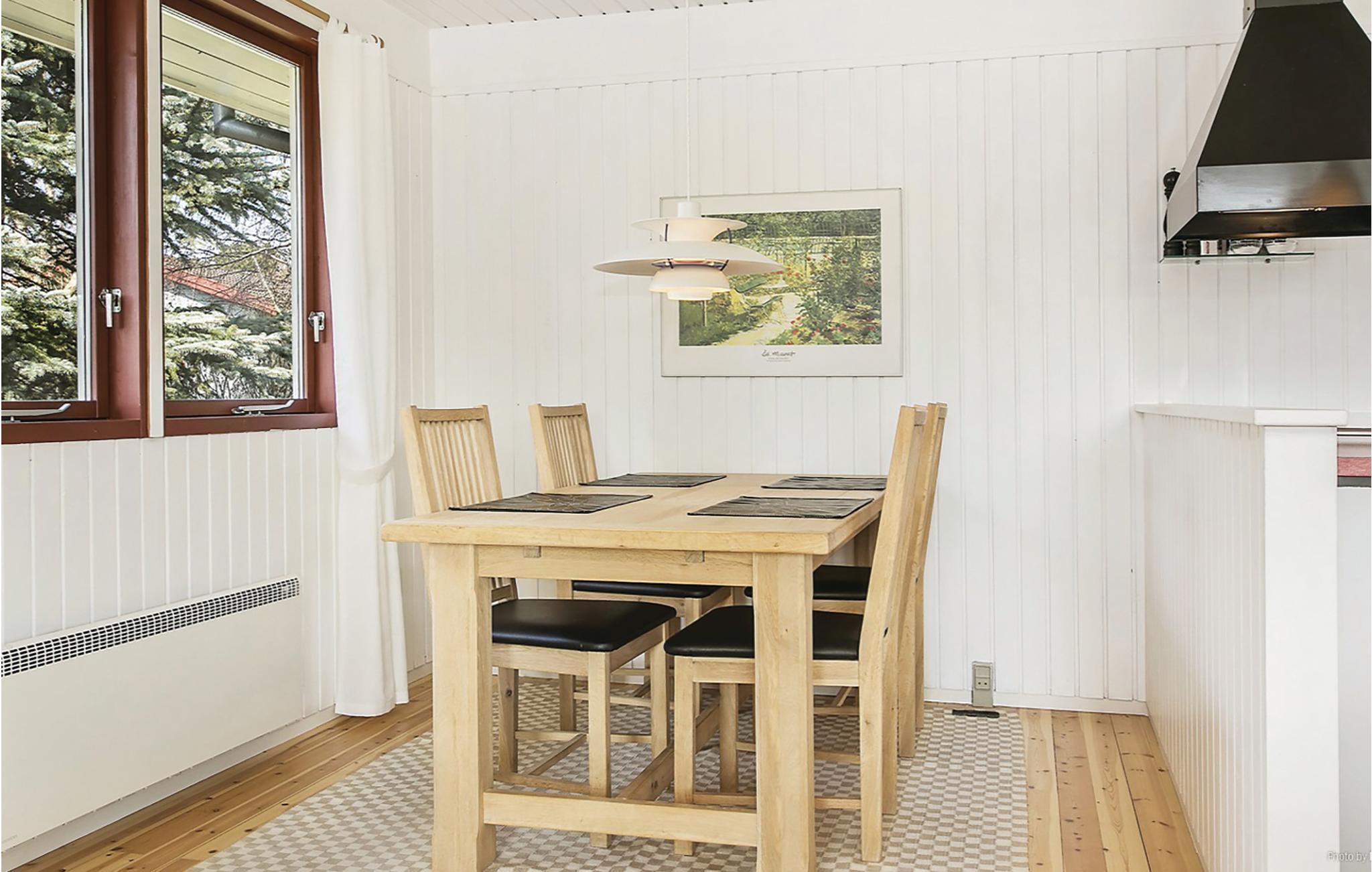 Hyggeligt og klassisk dansk sommerhus i Dronningmølle på Nordsjælland. Huset er bygget i træ og har en grøn have, som er omgivet af en hæk. Her er altså optimale forhold for en afslappet ferie i ugenerede omgivelser. Husets interiør er lyst og moderne med klassiske detaljer som eksempelvis en brændeovn, som bidrager til ekstra hygge og afslapning. Fra huset har I kun 1,2 km til vandet, så en strandtur er altid inden for rækkevidde. Indkøbsmulighed 1 km.