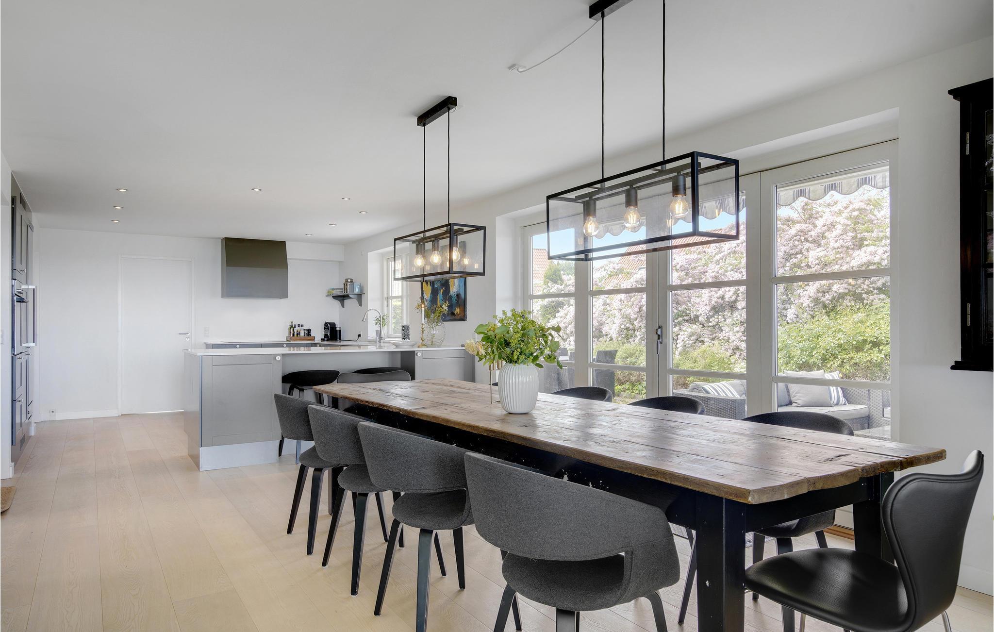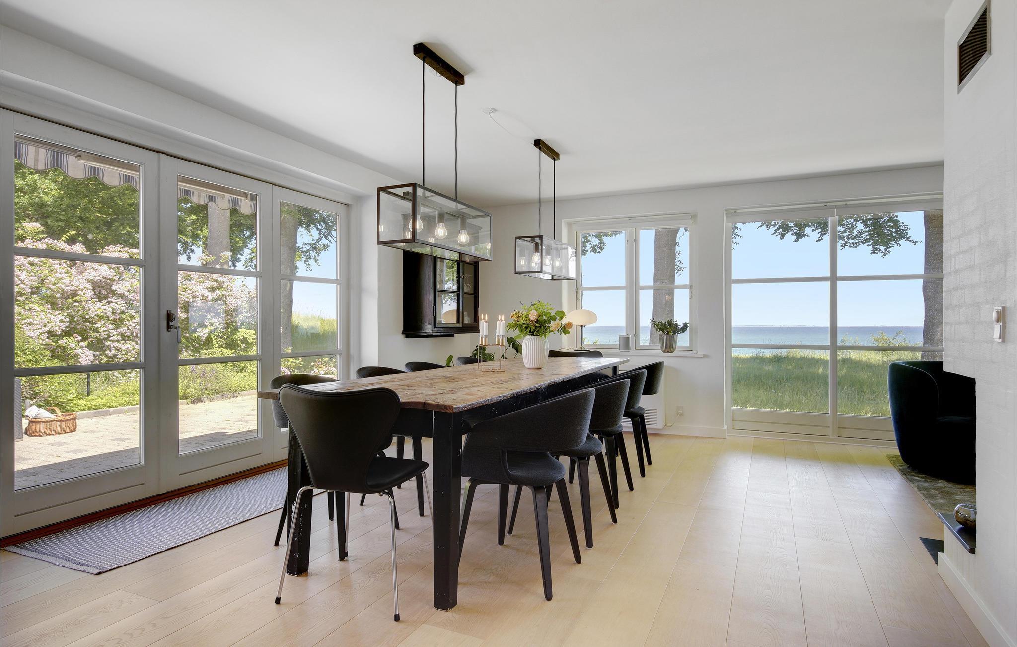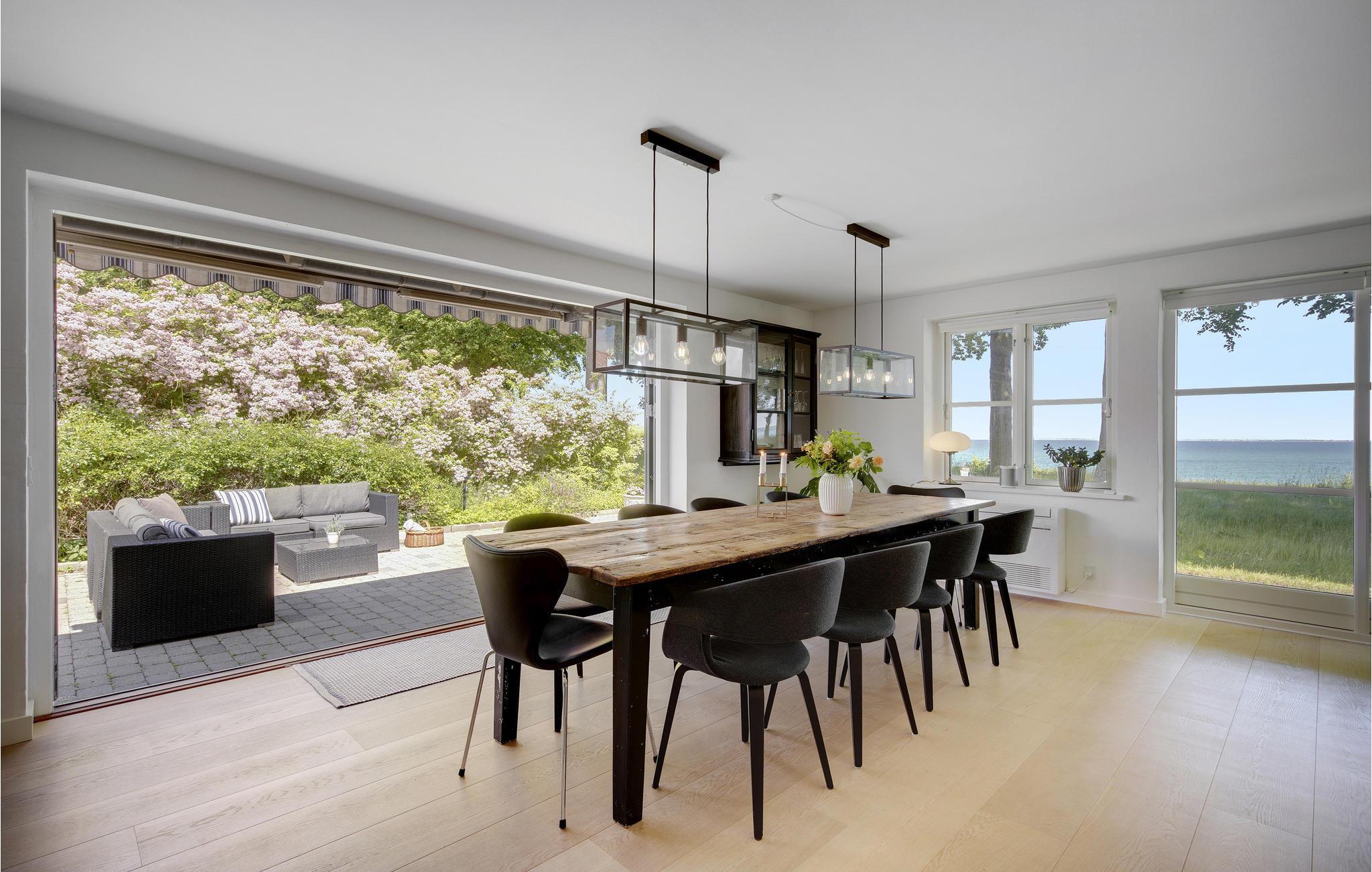 Dette moderne og luksuriøse feriehus byder velkommen i Munkerup. I kan nyde smagfuld komfort og stilfuldt design i to etager. Huset er kendetegnet ved de store vinduespartier ud mod vandet og terrassen, som man kan åbne på vid gab om sommeren og dermed lukke sommeren helt ind i huset. På køligere dage kan I sætte jer godt til rette sammen i sofaerne ved en pejsen eller tilbringe hyggelige aftener på 1. sal med udsigt over havet. Det fantastiske køkken inviterer jer til at lave mad sammen og grillen på terrassen til at forberede en lækker grillmiddag. Føl jer godt tilpas på milde sommeraftener med jeres yndlingsdrink på loungemøblerne og nyd den storslåede udsigt.