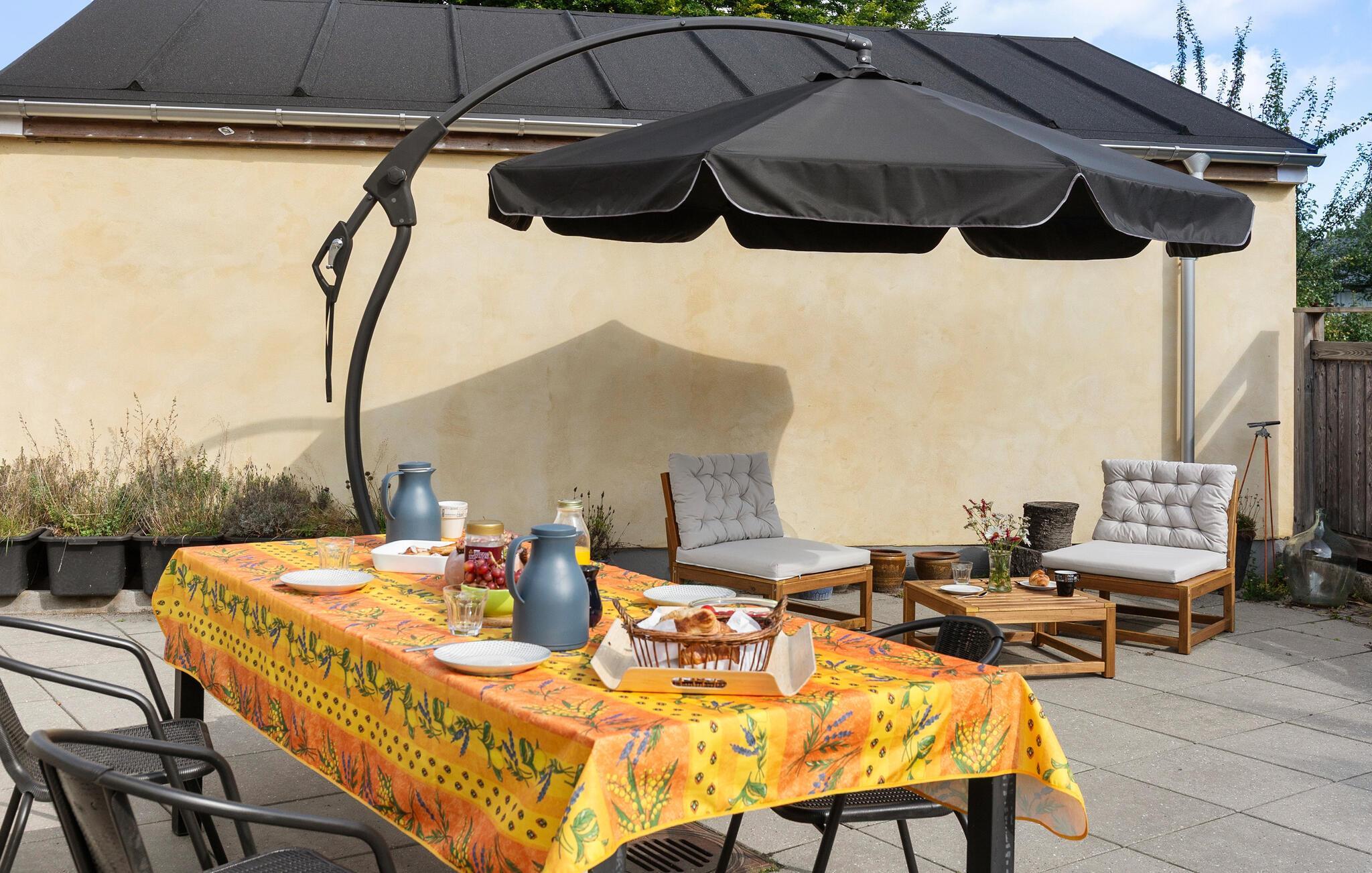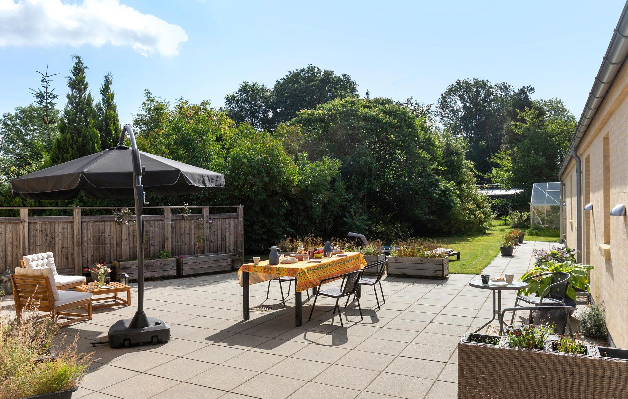 Udnyt det store udendørsareal til afslappende timer i den friske luft. Nyd jeres morgenmad på den møblerede terrasse, eller sol jer på en af liggestolene. Den store have med velplejede græsplæner og blomstrende planter byder på rigelig plads til leg, afslapning eller grillhygge.