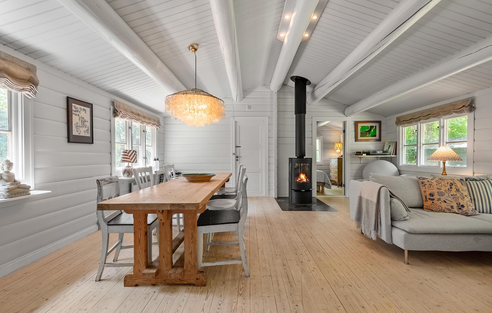 Dette lyse og hyggelige tilflugtssted byder jer velkommen på en stor, indhegnet naturgrund, blot få skridt fra stranden. Glæd jer til nogle rolige dage med jeres nærmeste, og find ro, mens I laver mad sammen med udsigt til det grønne, ved fælles måltider ved det stilfulde spisebord eller under hyggelige spilleaftener i den smukt indrettede stue.