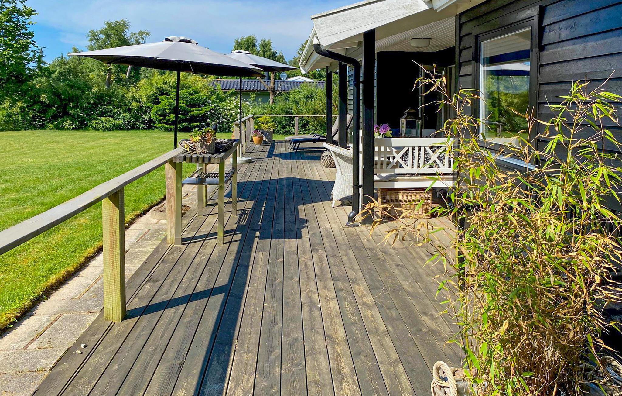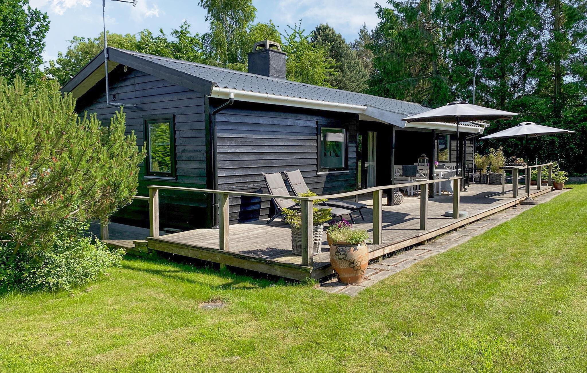 Hyggeligt træhus i grønne omgivelser tæt på strand og by i Dronningmølle, perfekt til familieferien.