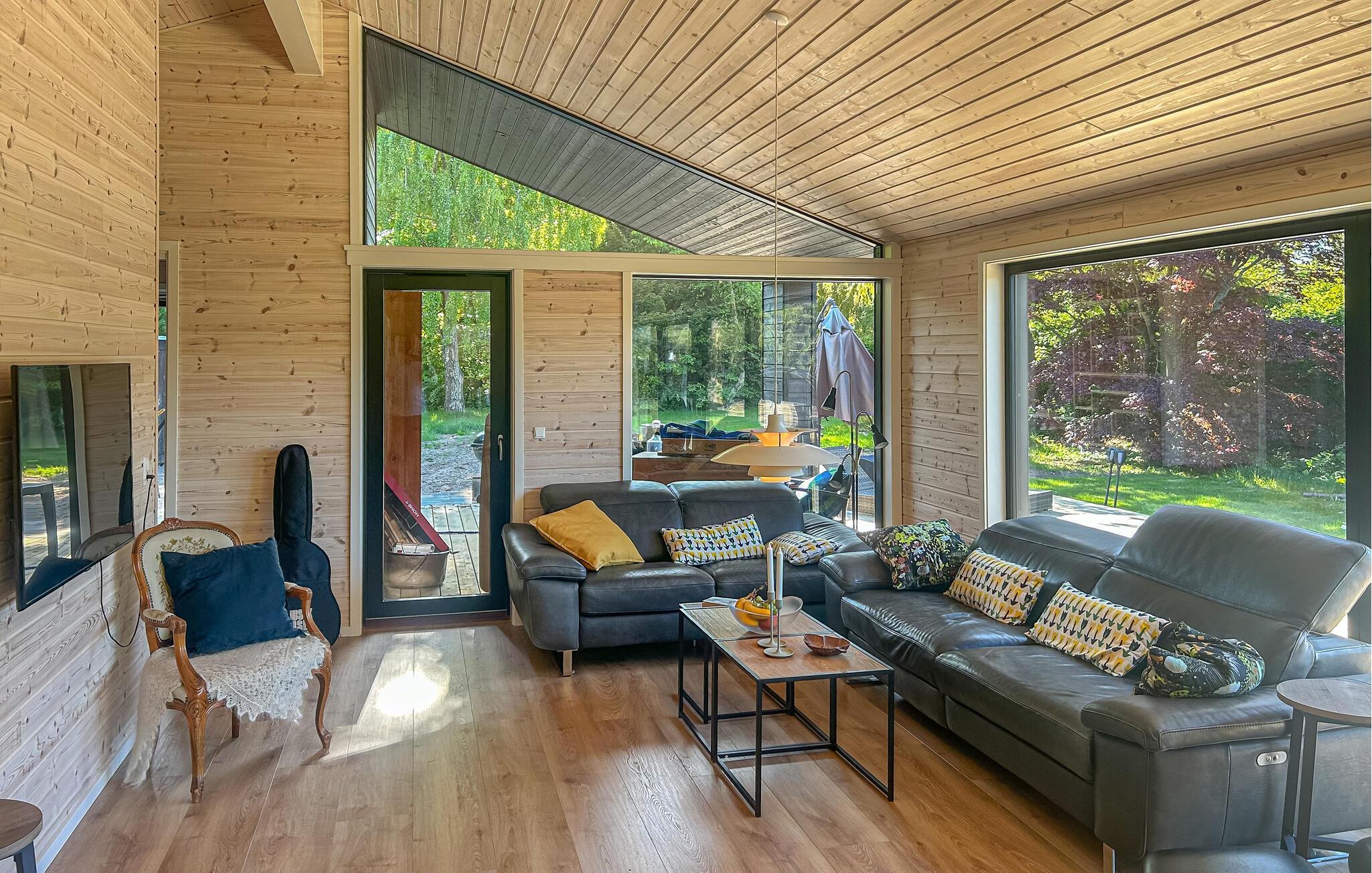 Nyd en afslappende ferie i dette hyggelige træhus med privat have og en rolig beliggenhed. Det velindrettede feriehus byder på en varm, indbydende atmosfære og masser af plads til samvær. De store vinduer bader interiøret i lys og skaber en behagelig atmosfære. Det åbne opholdsområde lægger op til fælles måltider, afslappende læsetimer på hemsen eller selskabelige spilleaftener. Begynd dagene med en varm kop kaffe i sofahjørnet, mens I skuer ud over haven. Om aftenen kan I nyde den beroligende varme i saunaen.