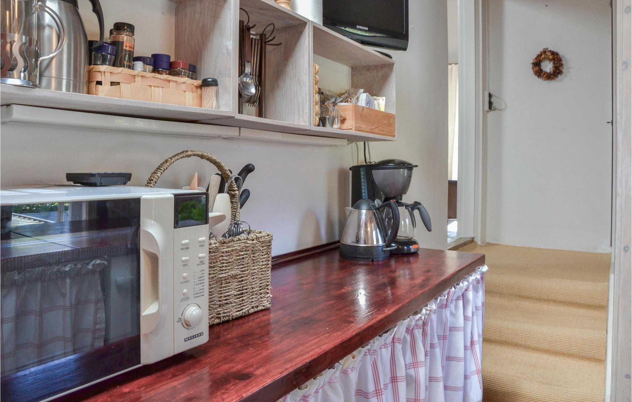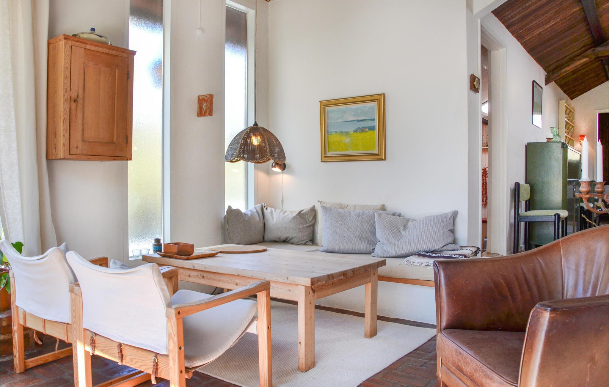 I det meget attraktive Dronningmølle ligger dette charmerende og anderledes sommerhus på en skøn naturgrund. Huset er har forskudte planer og flere hyggelige kroge. I stuen er der indrettet en spiseplads. Husets 2 soveværelser giver plads til 5 personer, hertil kommer en hems (med stejl stige), som børnene garanteret vil synes er sjov. I huset findes der ikke mindre end 2 brændeovne, der bidrager til den hyggelige stemning. Fra stuen har I udgang til den dejlige terrasse med grill og udekøkken, hvor I kan tilberede skønne feriemåltider. Da badeværelset ikke er så stort, kan I med fordel benytte den udendørs bruser, som også er helt perfekt, når I kommer hjem fra stranden, og lige hurtigt skal have skyllet sand af. I har kun 10 minutters gang til den skønne strand med lavt badevand.