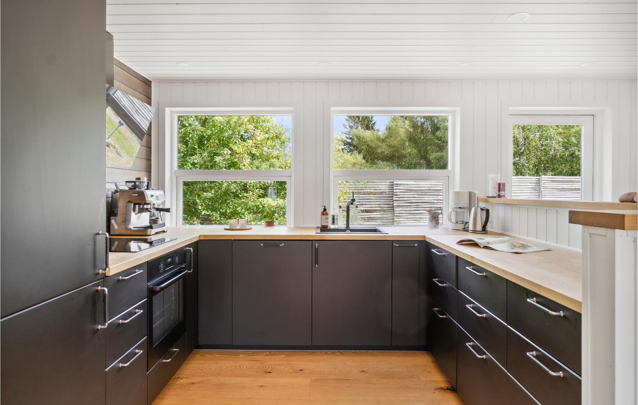 Her får I en skøn base til jeres dage i Nordsjælland, hvor I kan slappe af og nyde pauserne mellem jeres udflugter. Boligen er lys og komfortabel med enkle, smagfulde indretningsløsninger, der gør jeres dage ekstra behagelige. I køkkenet er der gode rammer til at gøre madlavningen til et hyggeprojekt og senere kan I give jer god tid til at nyde retter rundt om spisebordet, hvor der er udsigt til den grønne have. Find sammen om brætspil og gode bøger i stuen efter en lang dag på farten, og hvis det bliver lidt køligt udenfor, kan I tænde op i brændeovnen og mærke hyggen brede sig. Sommerdagene tilbringes på husets skønne terrasse, mens børnene kan bygge flotte figurer i sandkassen eller hoppe om kap på trampolinen.
