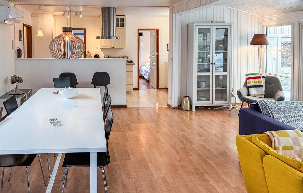 Dette hus har en moderne, men hyggelig atmosfære, hvor I hurtigt vil føle jer hjemme. De store vinduer, smukke trædetaljer og komfortable møbler lægger op til at tilbringe hyggelige stunder med at snakke og nyde en kop kaffe. På kølige aftener kan I tænde brændeovnen og afslutte dagen med en filmaften.