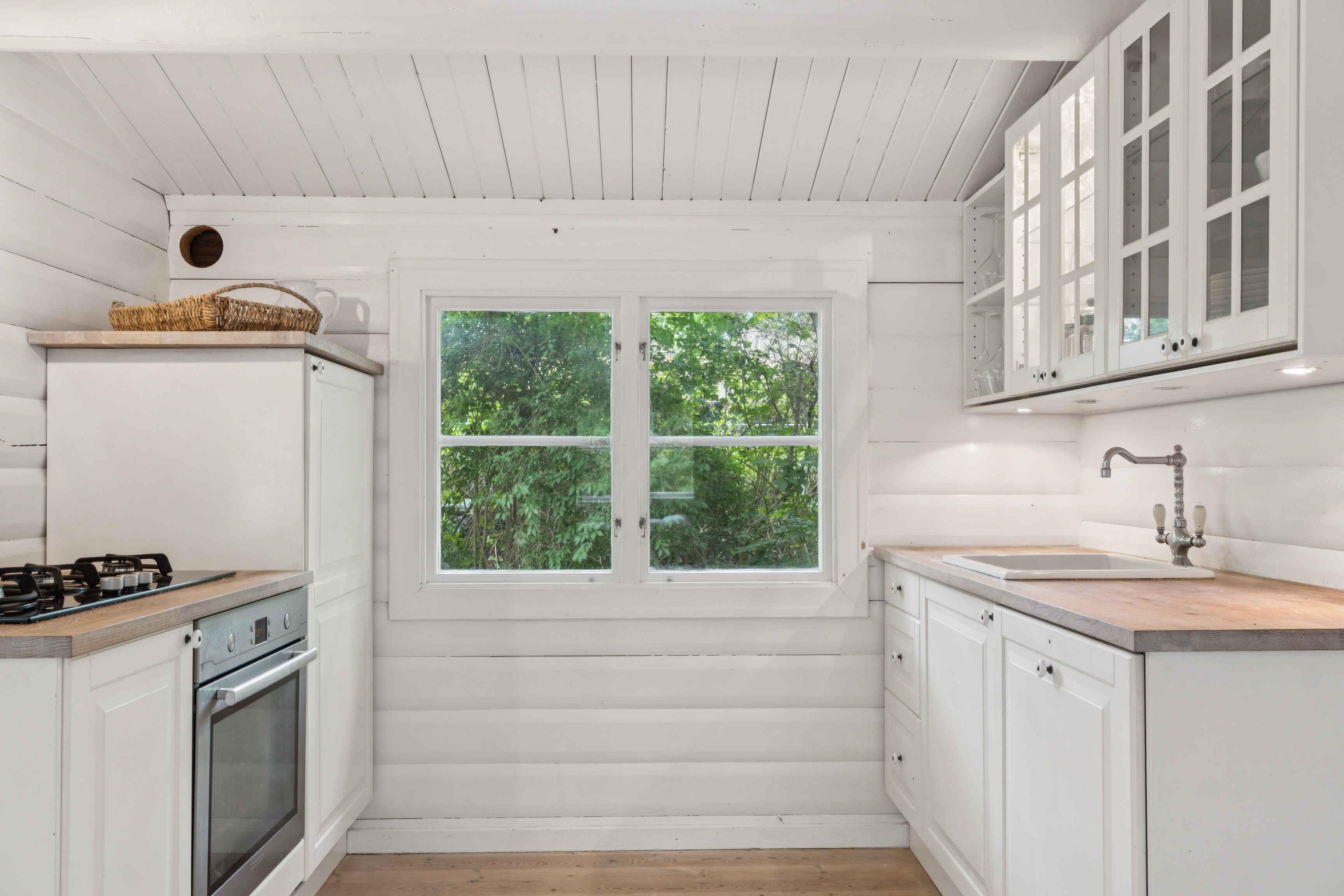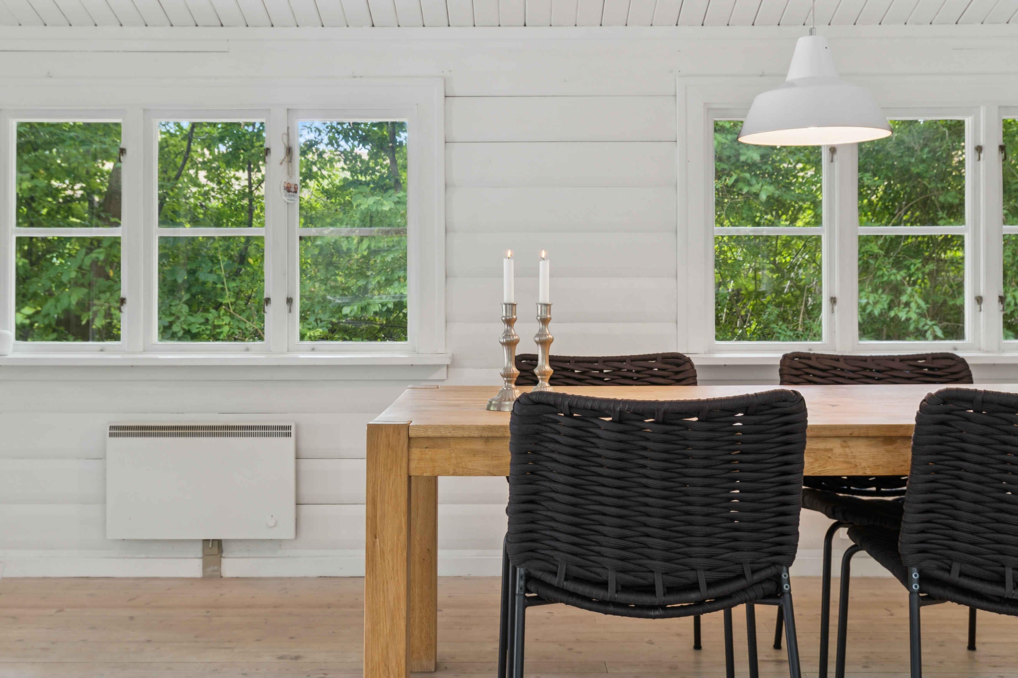 Dette sommerhus er et charmerende sort bjælketræhus med hvide vinduer, beliggende på en rolig grund med direkte udsigt til naturskov. Huset er 69 m² og indrettet med omtanke, så du kan nyde ferien i afslappede og hjemlige rammer – året rundt. Indenfor finder du tre gode soveværelser og i alt fem sovepladser. Det åbne køkken og det pæne, hvide badeværelse er begge velholdte. Stuen har både en hyggelig spiseplads og en hørsofagruppe foran en 65" fladskærm og en nyere brændeovn med glaslåger. En stor, sydvendt terrasse indbyder til måltider i det fri og udsigt til naturen. Haven er hyggelig og rummelig med frugttræer, bålplads og en stor græsplæne, hvor børn og voksne kan lege og slappe af i fredelige omgivelser. Området er særligt attraktivt for dig, der søger ro, nærhed til natur og strand. Kun 150 meter fra huset finder du en meget privat badestrand, næsten udelukkende brugt af vejens beboere. Her kan du nyde morgenbadning, solnedgange eller bare en tur i vandet uden trængsel og støj. Dronningmølle og nærområdet byder på alt fra hyggelige caféer og gallerier til naturskønne cykel- og vandreruter. I nærheden ligger også Tegners Museum og Rusland, samt Hornbæk og Gilleleje med fiskerihavn, butikker og stemningsfulde spisesteder. Alt er tæt på, men stadig langt fra hverdagens støj.
