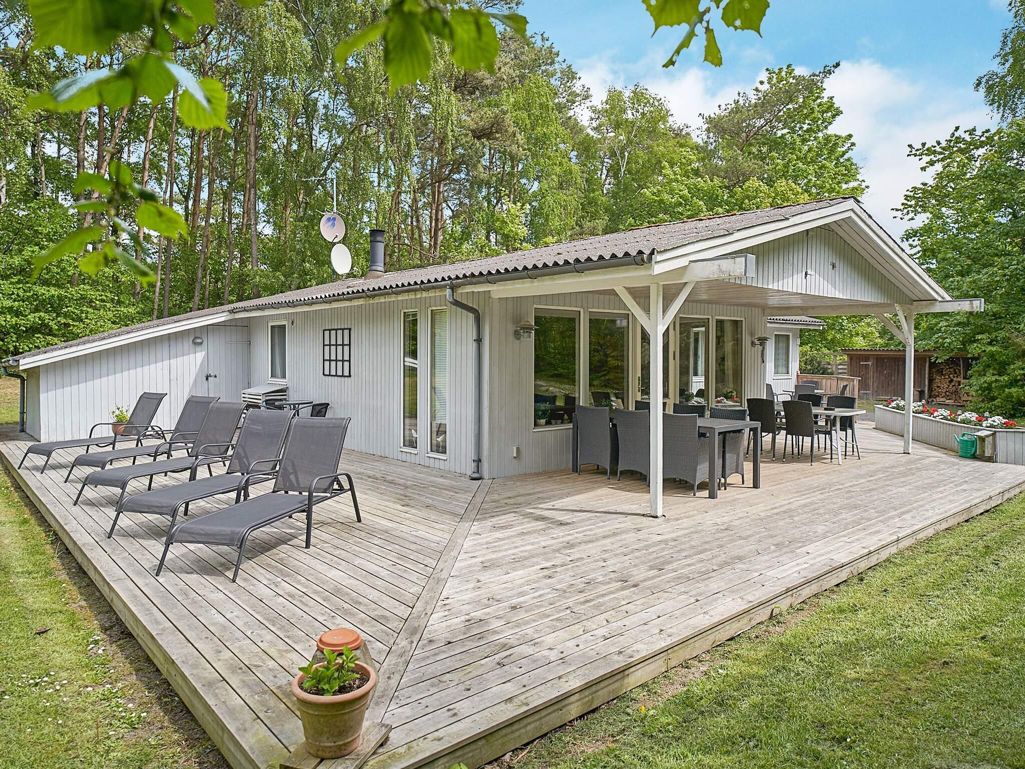 Dette rummelige og velholdte sommerhus med flere terrasseområder er beliggende tilbagetrukket på en dejlig naturgrund ved Dueodde. Huset fremtræder overalt pænt og velindrettet med en dejlig, stor og kombineret spise- og opholdsstue med komfortable møbler, brændeovn og varmepumpe samt gratis internet. Der er åbnet køkken ud mod stuen. Fra stuen har I direkte udgang til terrasseområdet og den store grund, hvor der er god plads til leg og boldspil eller til at nyde ferien i husets havemøbler. Et sommerhus med mange moderne faciliteter til rådighed og nær god sandstrand og løbe- og vandrestier, ligesom der heller ikke er langt til gode cykelveje. Udlejes ikke til ungdomsgrupper.