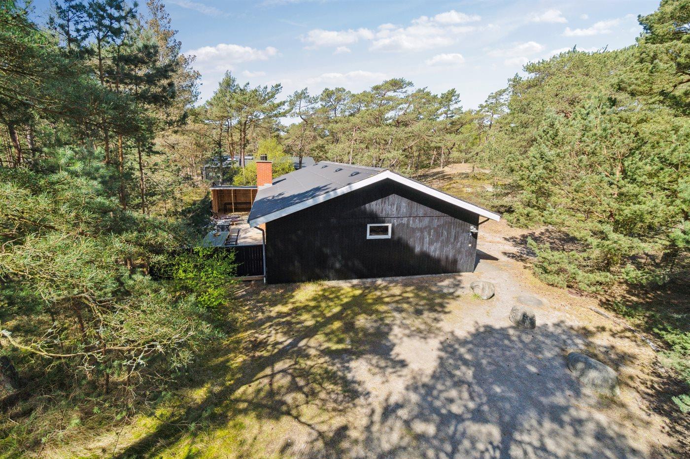 Dejligt og rummeligt sommerhus i træ, beliggende i behagelig afstand til en sandstrand, der også i højsæsonen vil være rimelig ugenert. Huset er bygget i 1985 og ligger på en stor naturgrund i Dueodde området, som kendetegnes af klitlandskaber med fyrretræsbevoksning, og selv om huset ligger i et udbygget sommerhusområde vil man føle at naturen er dominerende. Til huset hører en overdækket terrasse med direkte adgang fra stuen samt en større stenterrasse foran huset, hvor solen kan nydes både formiddag og eftermiddag. I 2017 er der lagt nye trægulve i hele huset. Badeværelse med bruseniche, vaskemaskine og adgang til sauna. Gæstetoilet. Køkkenet, med god spiseplads, er kombineret med opholdsstuen og bl.a. udstyret med opvaskemaskine, mikrobølgeovn, varmluftovn og fryser. 2 køleskabe. I den store opholdsstue finder I brændeovn, stereoanlæg, video, DVD-afspiller og TV med parabol (digital). Desuden gratis, trådløs internetforbindelse til rådighed. Husets sovepladser fordeler sig på 4 værelser med boxmadrasser; 3 med dobbeltseng samt 1 med 2 enkeltsenge. Til de mindste feriegæster findes der høj barnestol og 2 barnesenge. Huset ligger kun 1000 m fra en af Bornholms tre golfbaner, Dueodde Golfbane med 18 hullers udfordring. Besøg det gamle og hyggelige fiskerleje Snogebæk med restauranter, økologisk isfabriksudsalg, håndlavede chokolader samt supermarked. Ønsker I at gå en lang tur i Bornholms flotte natur kan Paradisbakkerne anbefales - her finder I et kuperet skovbevokset landskab med spændende sprækkedale og selvfølgelig "Rokkestenen" - en kæmpesten fra den sidste istid, lagt så den stadig kan rokke.