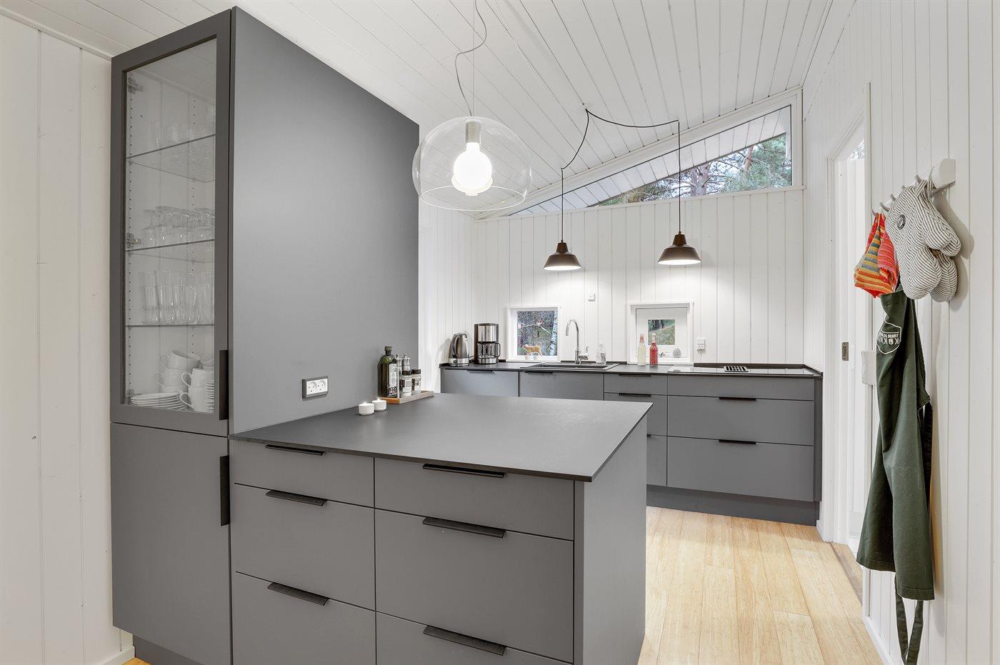 Køkkenet er udstyret med 1 køleskab. Der er 4 elkogeplader, varmluftovn, mikrobølgeovn samt opvaskemaskine.