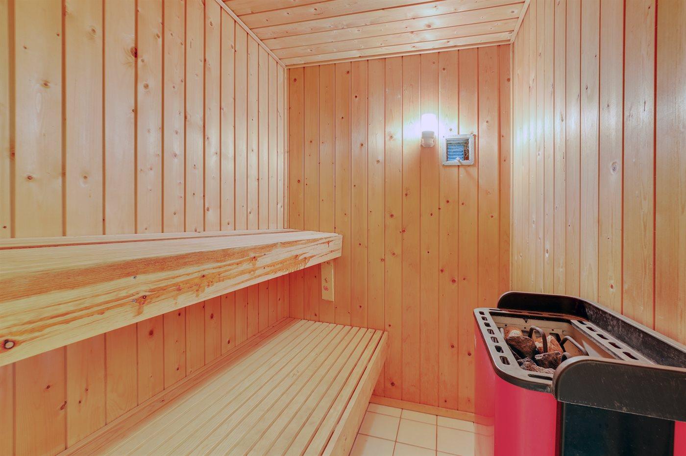 Der er 1 badeværelse med bruseniche og 1 toilet.. Der er gulvvarme på 1 badeværelse. I saunaen er der mulighed for afslapning.