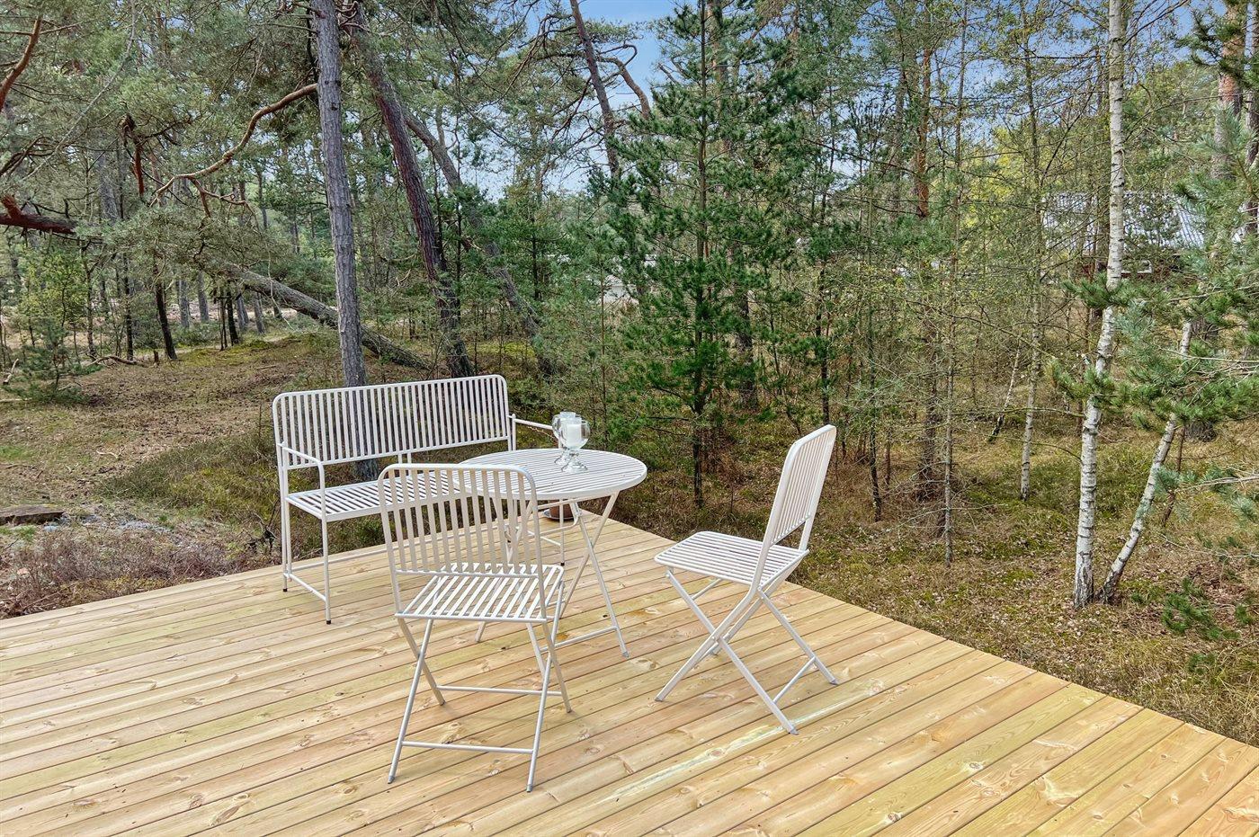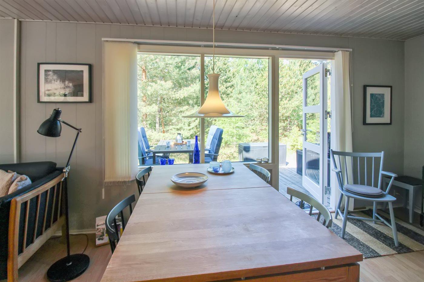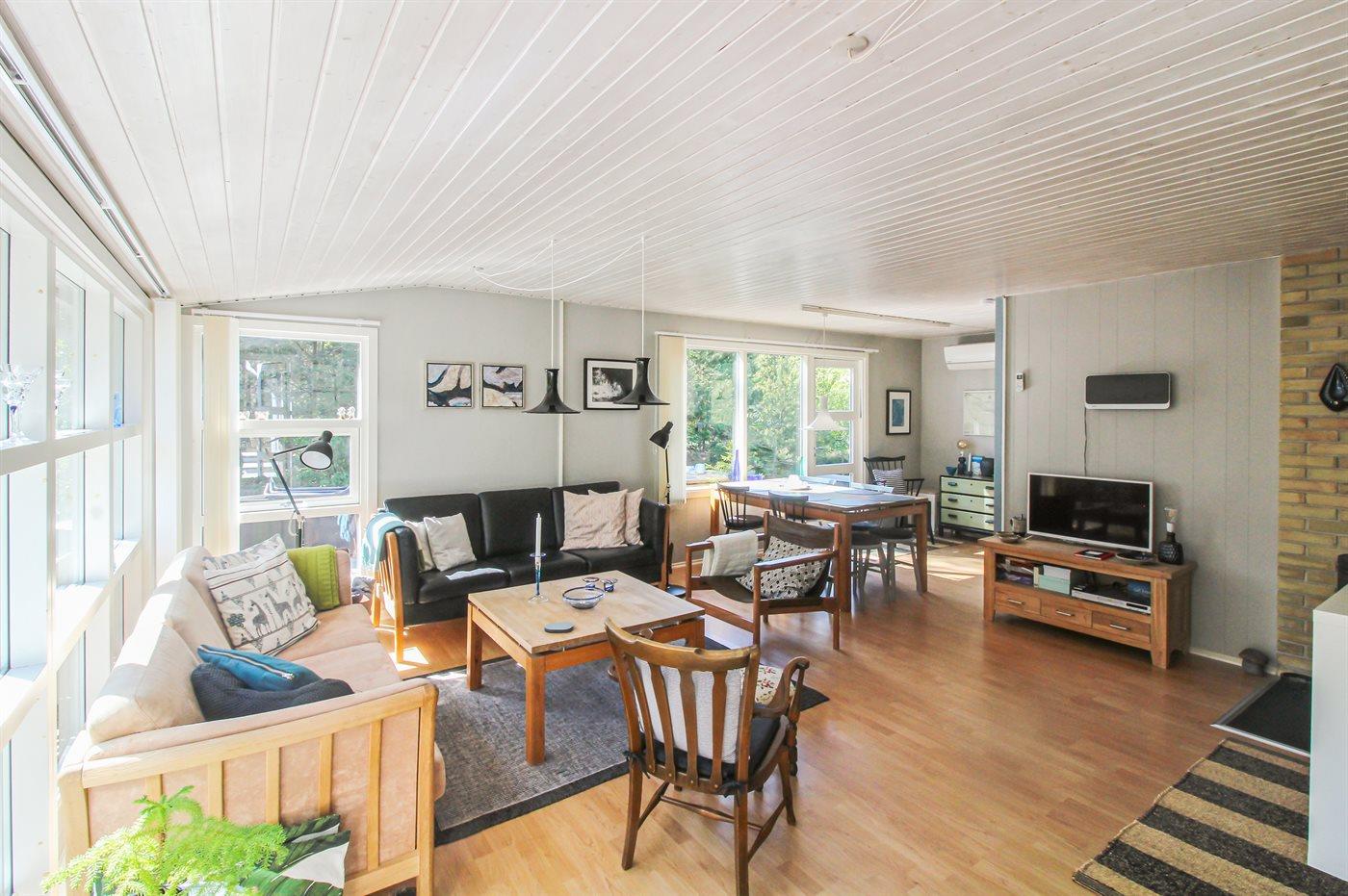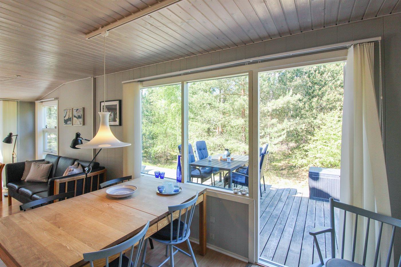 Et velholdt og hyggeligt indrettet sommerhus beliggende i rolige omgivelser på en stor og let kuperet naturgrund med fyrretræer og lyngbevoksning nær sandstranden i Dueodde. Der er lys, allergivenlig træbelægning på alle gulve, dog med undtagelse af badeværelset, hvor der er klinkegulv.