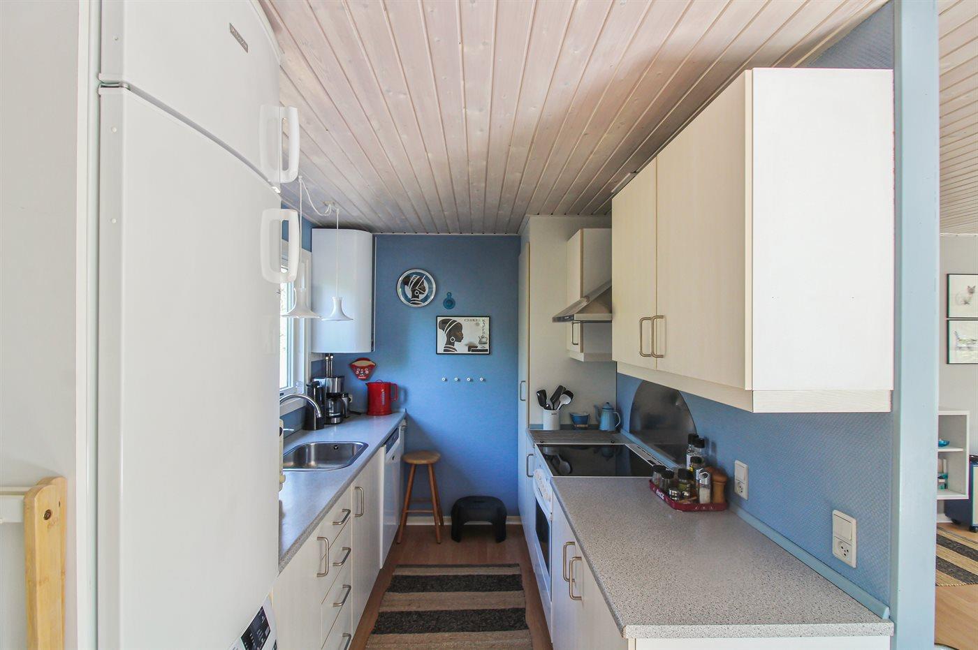 Køkkenet er udstyret med 1 køleskab. Der er 4 keramiske kogeplader, varmluftovn, mikrobølgeovn samt opvaskemaskine.