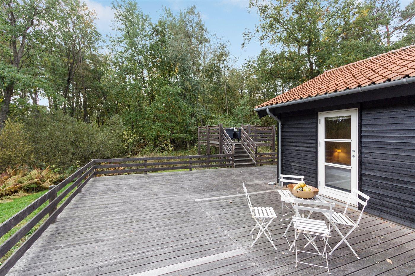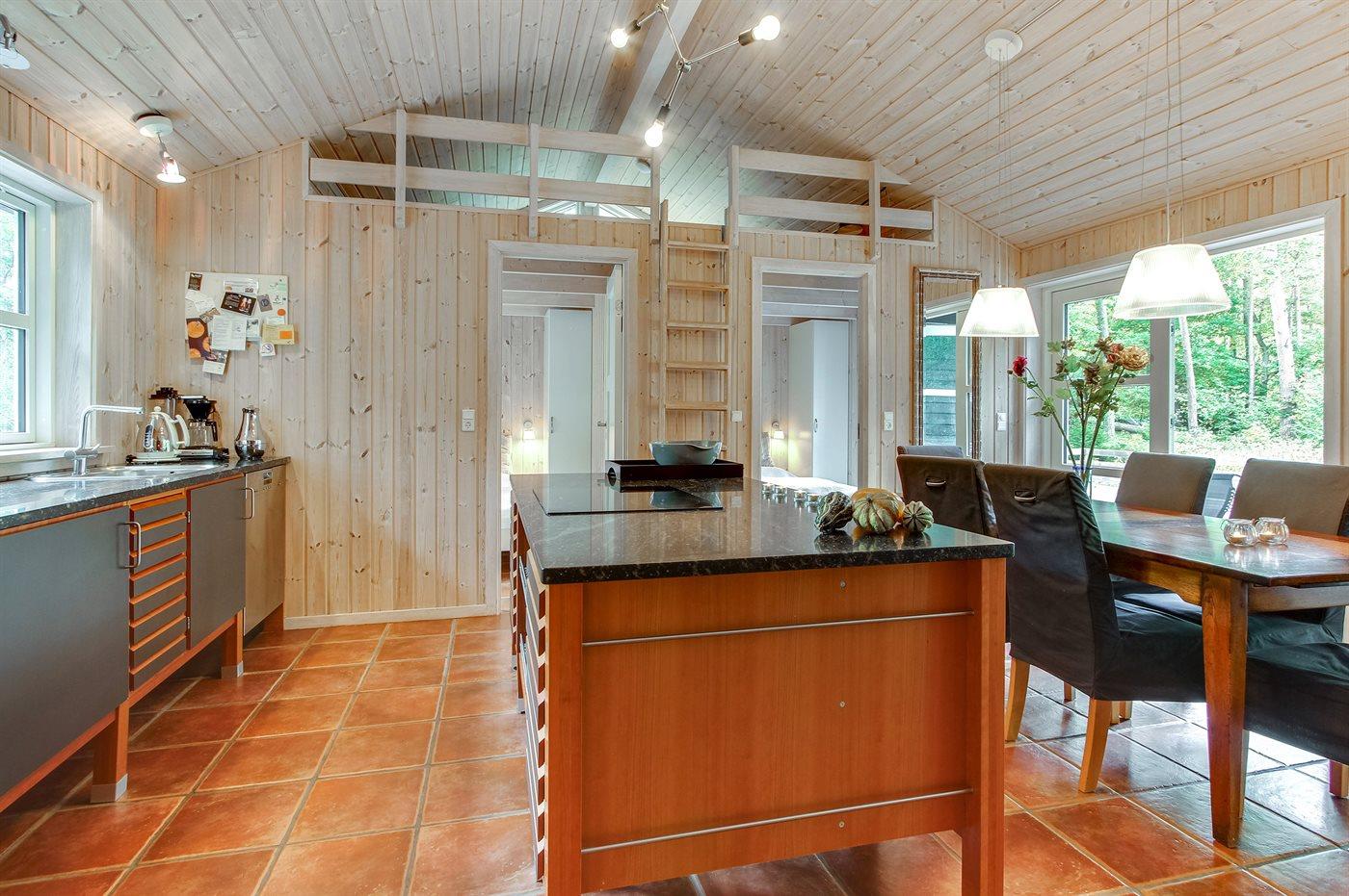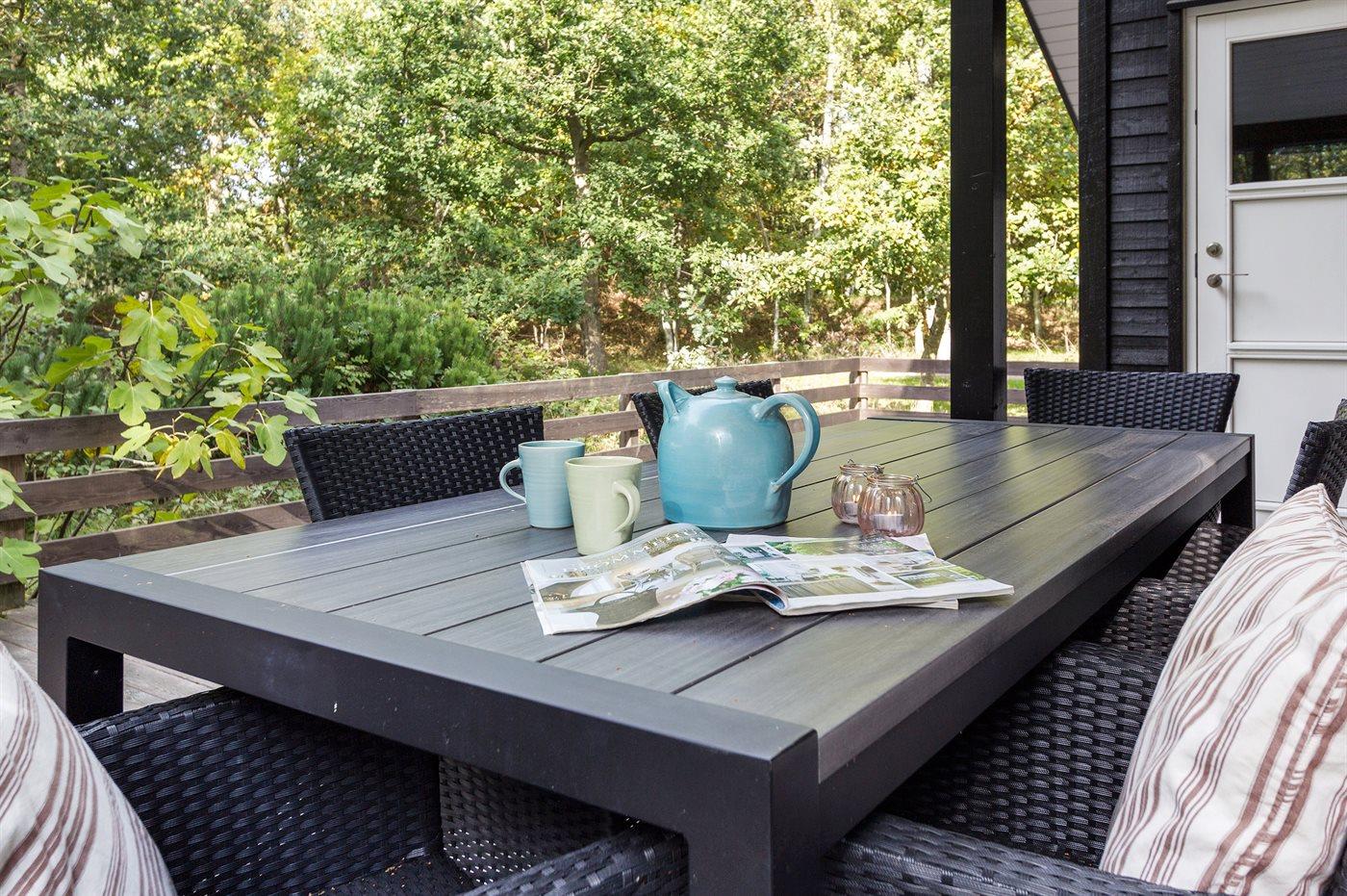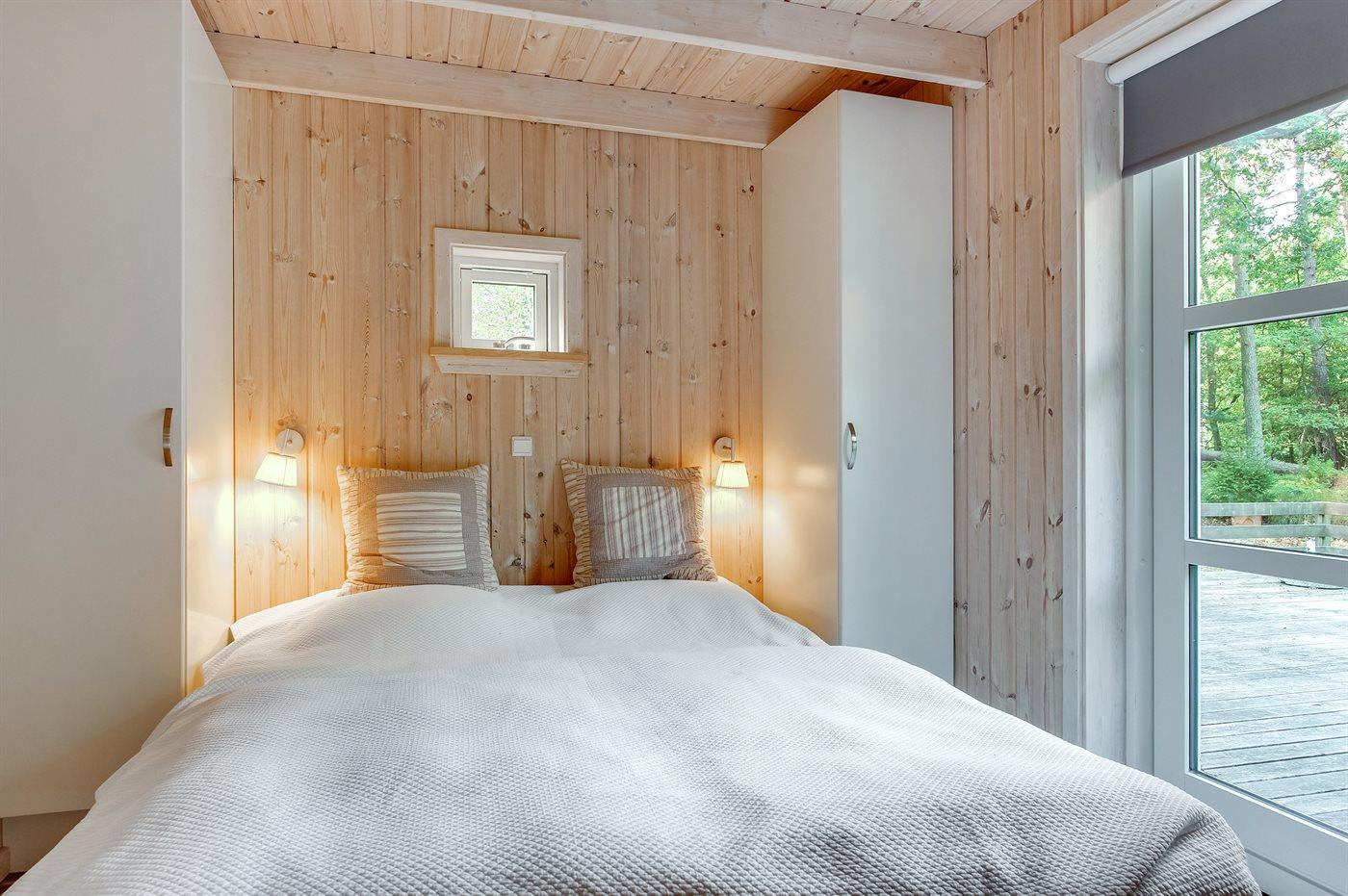 Flot luksussommerhus i træ - beliggende på en stor naturgrund, der er omkranset af skov, tæt på de hvide sandstrande ved Dueodde. Huset ligger ugeneret i rolige omgivelser, kun 300 m fra vandet. Rundt om huset er der en meget stor og afskærmet terrasse med havemøbler og med adgang til en træbalkon til ugeneret solbadning, der er hævet et par meget over jorden. Indvendig er huset flot indrettet med et dejligt køkken med bl.a. fryser, varmluftovn, mikrobølgeovn, espresso og almindelig kaffemaskine, opvaskemaskine og komfur med induktionskogeplader. Køkkenet ligger i åben forbindelse til den dejlige, store opholdsstue med spiseafdeling, brændeovn, TV, hvor der er installeret chromecast, DVD-afspiller, stereoanlæg samt direkte udgang til terrassen. Endvidere er ferieboligen udstyret med 1 energibesparende varmepumpe. Husets sovepladser fordeler sig på 3 dejlige, store soveværelser med dobbeltseng samt en rummelig hems med 2 sovepladser. I huset er der 2 dejlige badeværelser med bruseniche. Det store er endvidere indrettet med 2-pers. spa og direkte adgang til saunaen og det andet er udstyret med vaskemaskine og tørretumbler. Huset er endvidere udstyret med gratis, trådløs internetforbindelse (egen computer skal medbringes). Der er flotte klinkegulve overalt i huset. Der findes gynge på grunden. Det dejlige sommerhus er velegnet til 2 familier eller flere par og ligger i et dejligt ferieområde i naturskønne omgivelser, tæt på aktivitetsmuligheder og seværdigheder for hele familien.