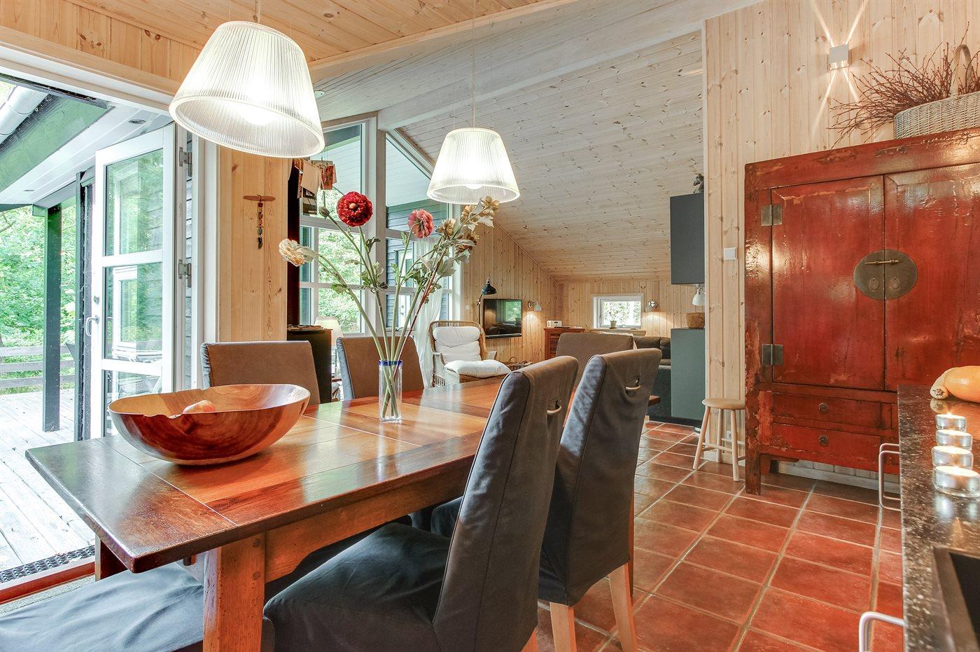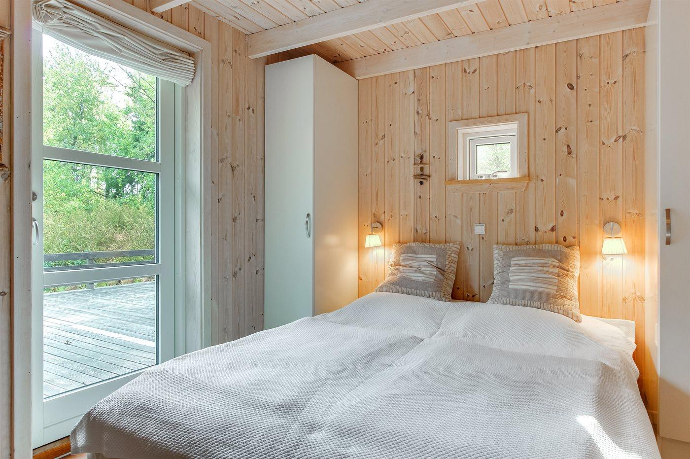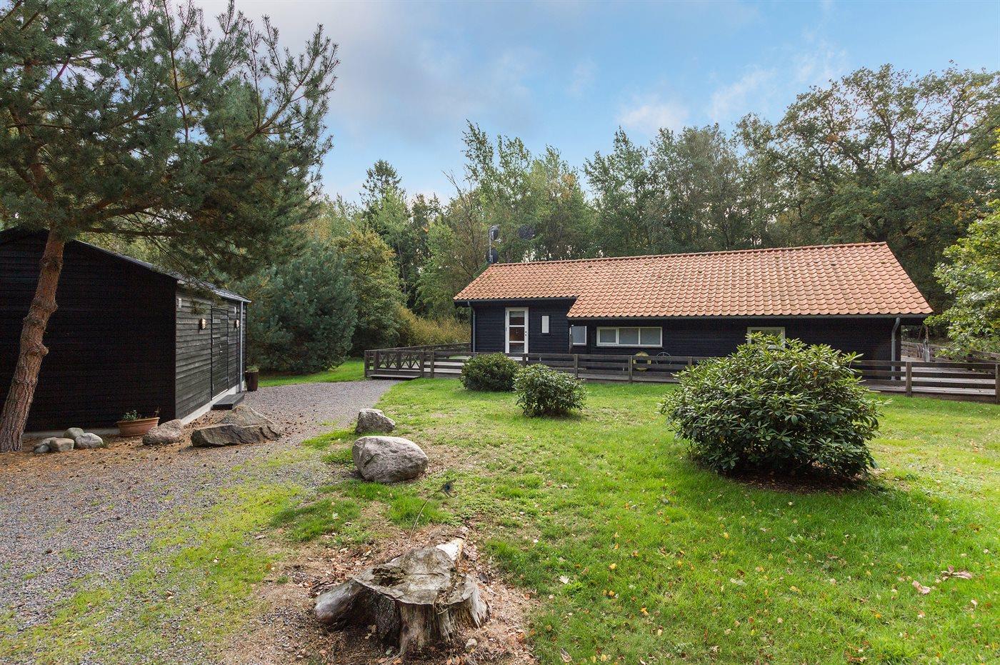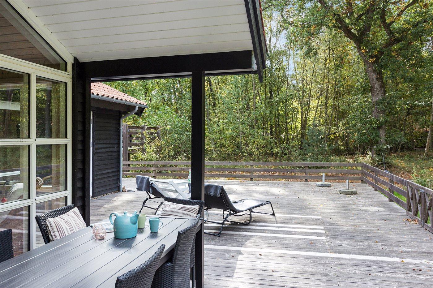 Flot luksussommerhus i træ - beliggende på en stor naturgrund, der er omkranset af skov, tæt på de hvide sandstrande ved Dueodde. Huset ligger ugeneret i rolige omgivelser, kun 300 m fra vandet. Rundt om huset er der en meget stor og afskærmet terrasse med havemøbler og med adgang til en træbalkon til ugeneret solbadning, der er hævet et par meget over jorden. Indvendig er huset flot indrettet med et dejligt køkken med bl.a. fryser, varmluftovn, mikrobølgeovn, espresso og almindelig kaffemaskine, opvaskemaskine og komfur med induktionskogeplader. Køkkenet ligger i åben forbindelse til den dejlige, store opholdsstue med spiseafdeling, brændeovn, TV, hvor der er installeret chromecast, DVD-afspiller, stereoanlæg samt direkte udgang til terrassen. Endvidere er ferieboligen udstyret med 1 energibesparende varmepumpe. Husets sovepladser fordeler sig på 3 dejlige, store soveværelser med dobbeltseng samt en rummelig hems med 2 sovepladser. I huset er der 2 dejlige badeværelser med bruseniche. Det store er endvidere indrettet med 2-pers. spa og direkte adgang til saunaen og det andet er udstyret med vaskemaskine og tørretumbler. Huset er endvidere udstyret med gratis, trådløs internetforbindelse (egen computer skal medbringes). Der er flotte klinkegulve overalt i huset. Der findes gynge på grunden. Det dejlige sommerhus er velegnet til 2 familier eller flere par og ligger i et dejligt ferieområde i naturskønne omgivelser, tæt på aktivitetsmuligheder og seværdigheder for hele familien.