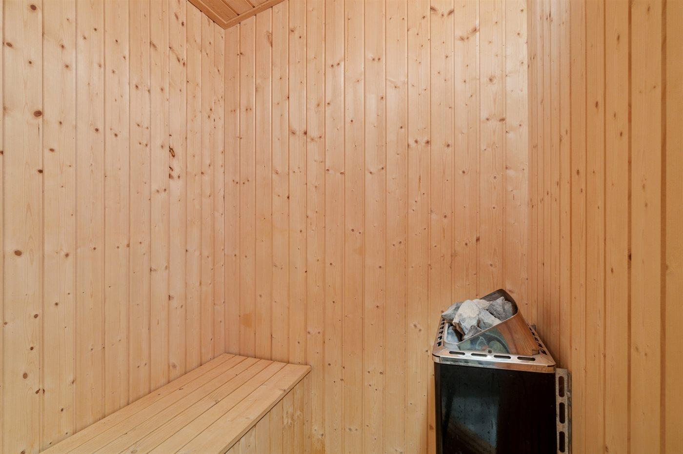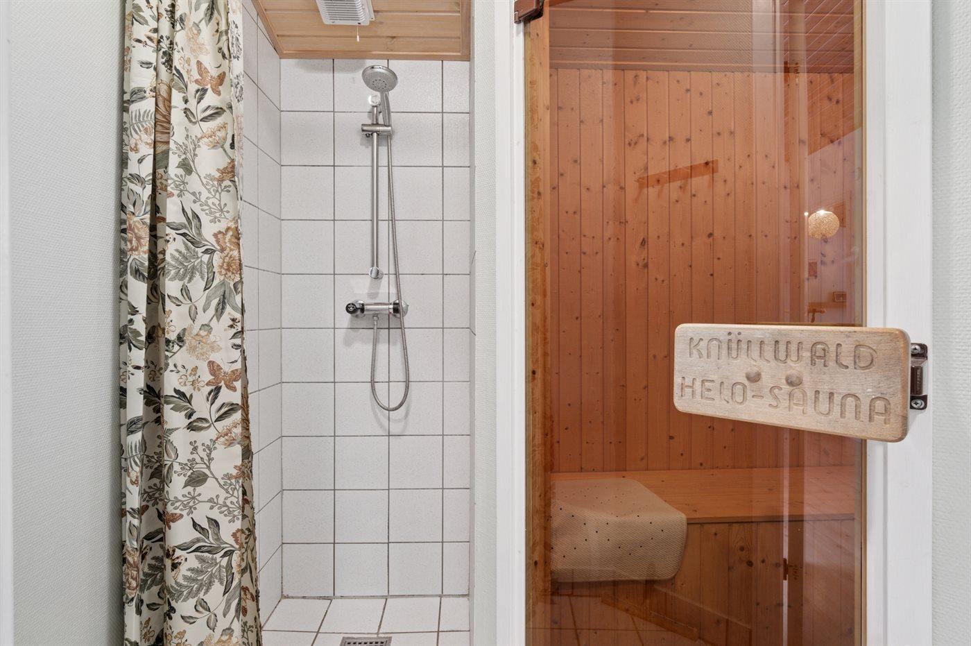 Der er 1 badeværelse med bruseniche og 1 toilet.. Der er gulvvarme på 1 badeværelse. I saunaen er der mulighed for afslapning.