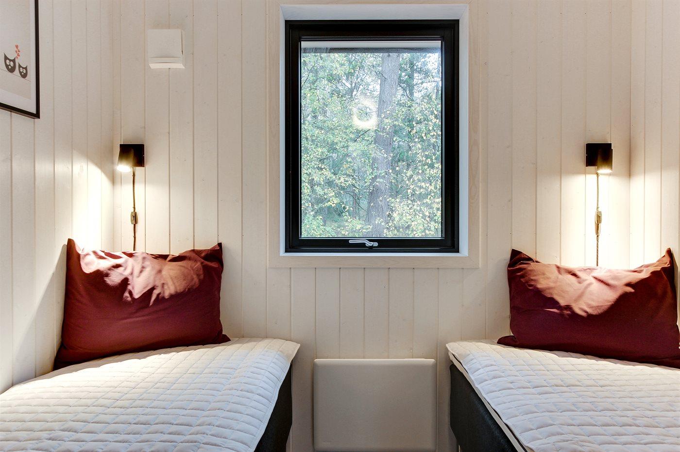 Der er i alt 5 soveværelser. Sovepladserne fordeler sig på: 6 sovepladser i dobbeltsenge. 4 sovepladser i enkeltsenge.