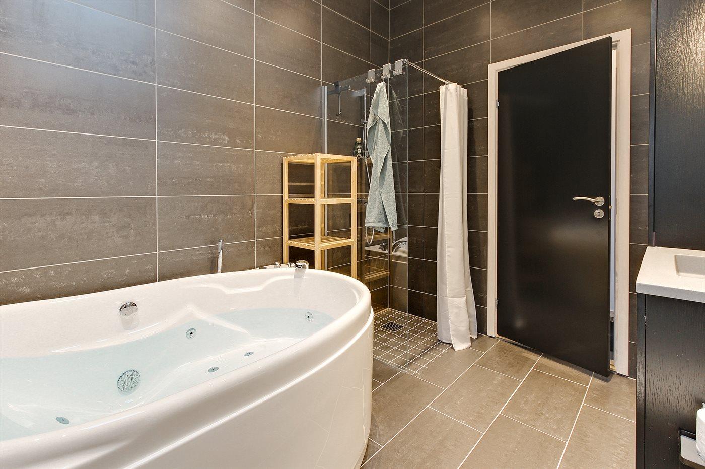 Der er 2 badeværelser med bruseniche og 2 toiletter. Der er gulvvarme på 2 badeværelser. I saunaen er der mulighed for afslapning.