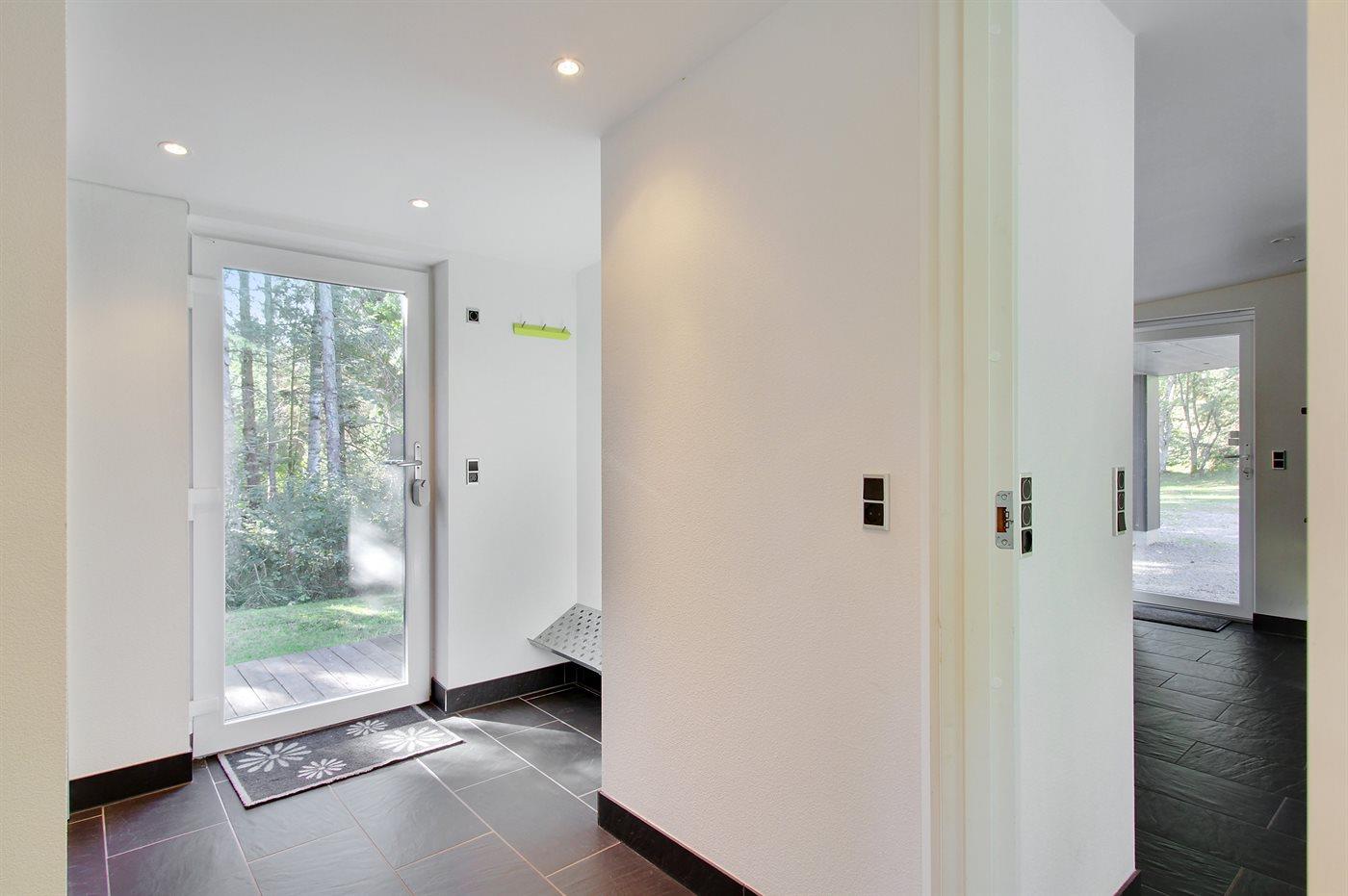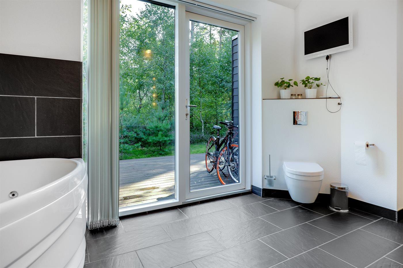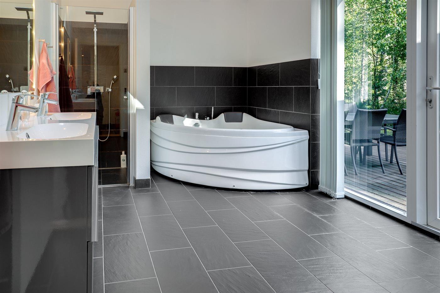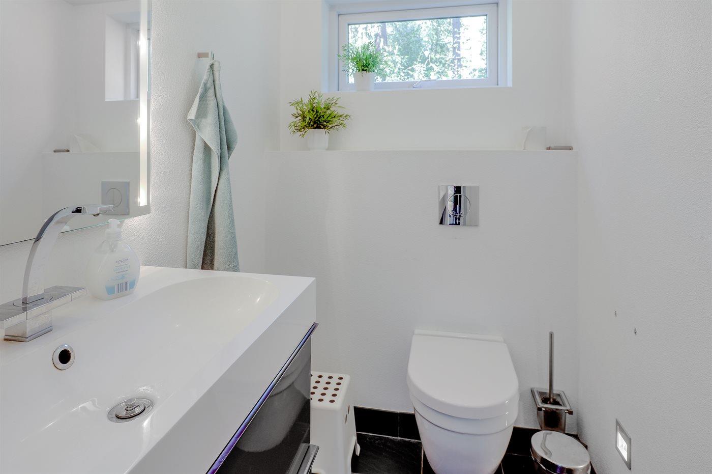 Der er 2 badeværelser med bruseniche og 2 toiletter, heraf 1 gæstetoilet. Der er gulvvarme på 2 badeværelser. Der er gulvvarme på gæstetoilettet.