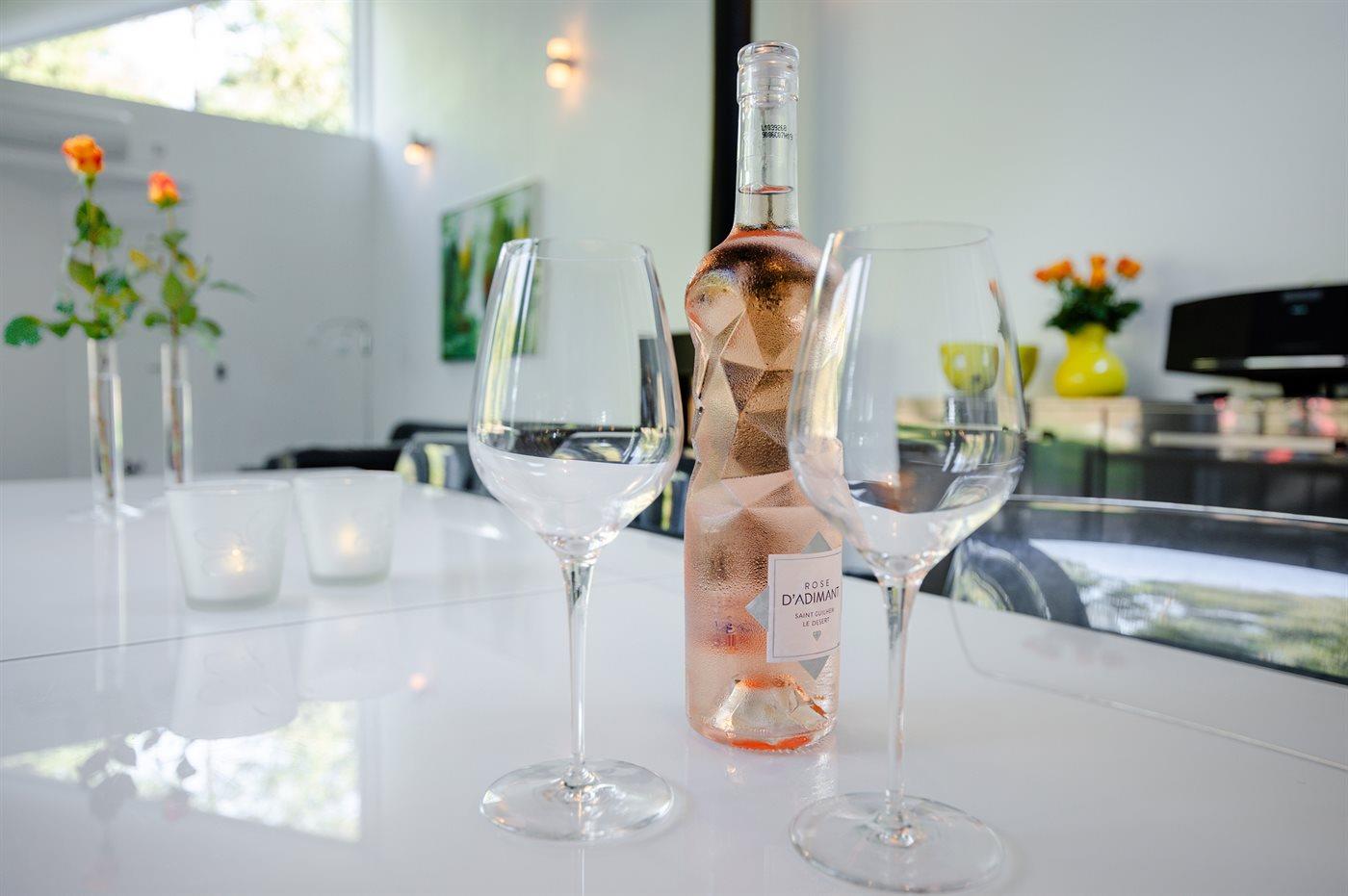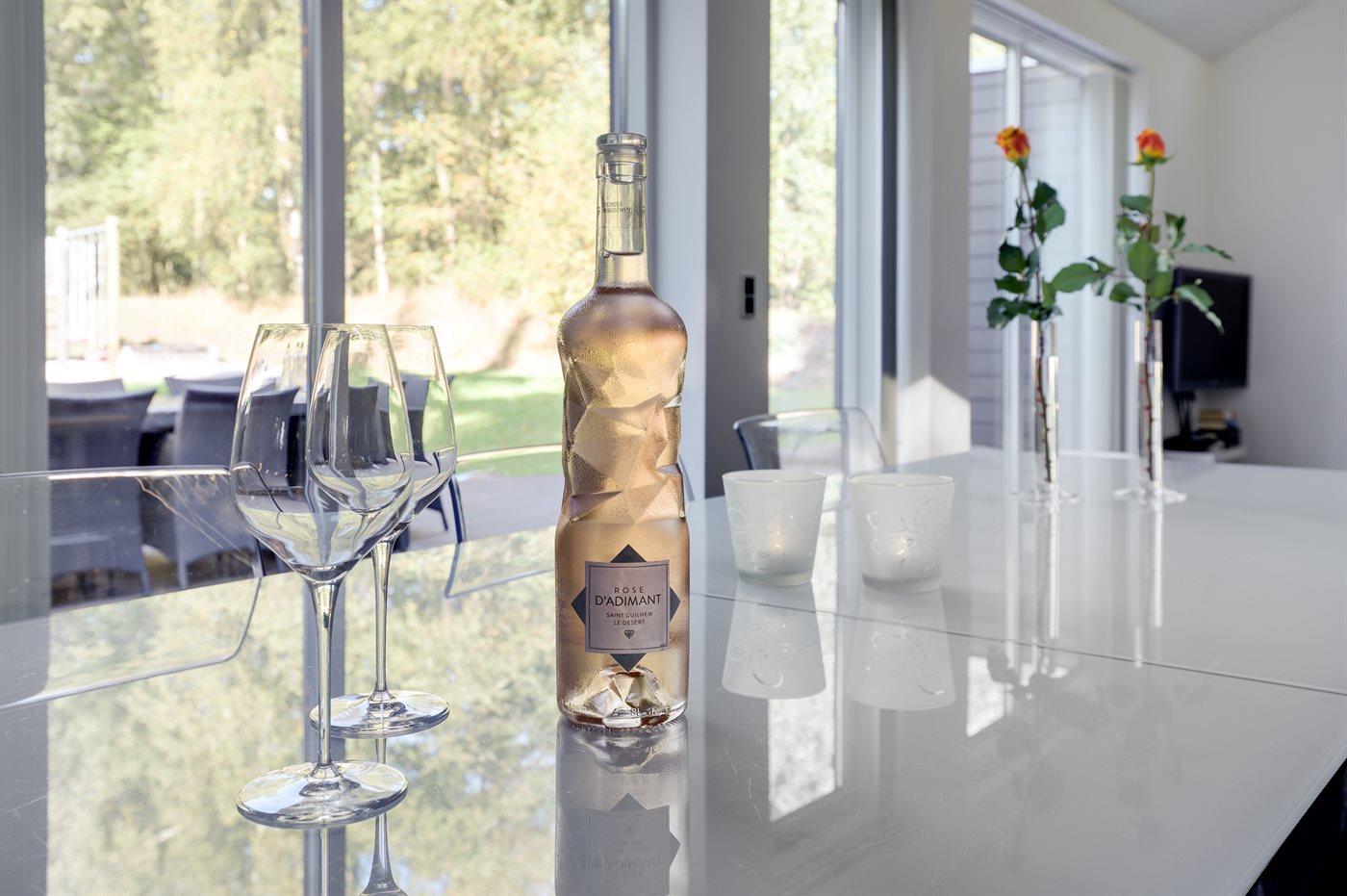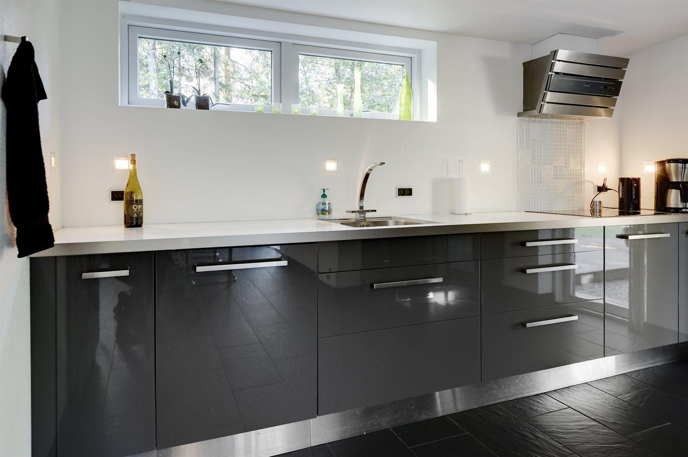 Køkkenet er udstyret med 1 amerikansk køleskab. Der er 5 induktionskogeplader, varmluftovn, mikrobølgeovn samt opvaskemaskine.