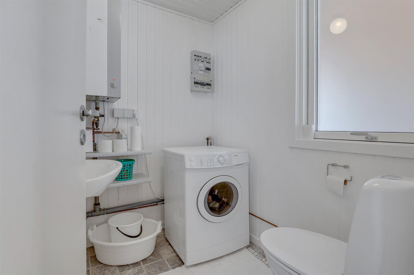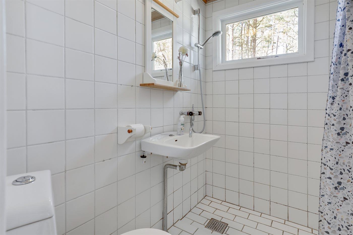 Der er 1 badeværelse med bruseniche og 2 toiletter, heraf 1 gæstetoilet I saunaen er der mulighed for afslapning.