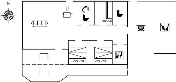 Der er i alt 3 soveværelser. Sovepladserne fordeler sig på: 4 sovepladser i dobbeltsenge. 2 sovepladser i køjeseng.
