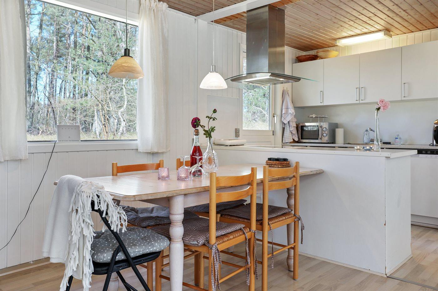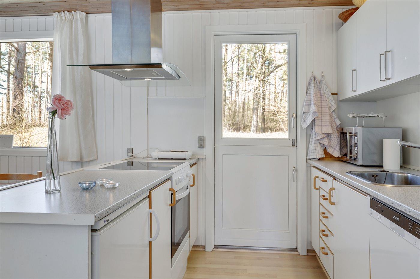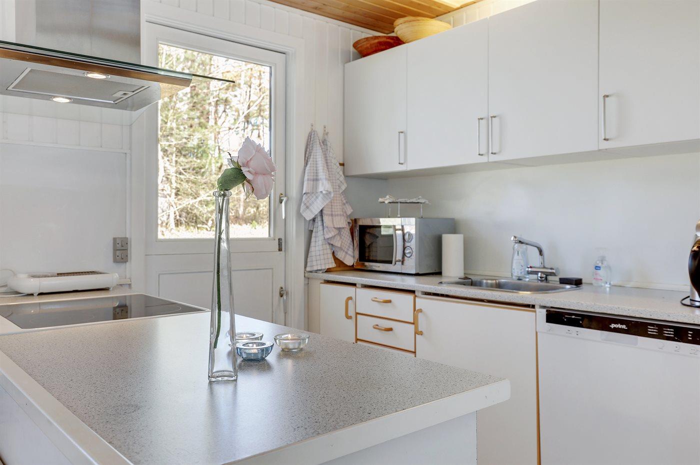 Køkkenet er udstyret med 1 køleskab. Der er 4 keramiske kogeplader, varmluftovn, mikrobølgeovn samt opvaskemaskine.