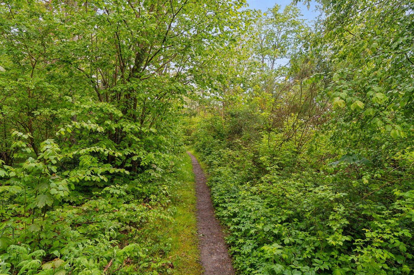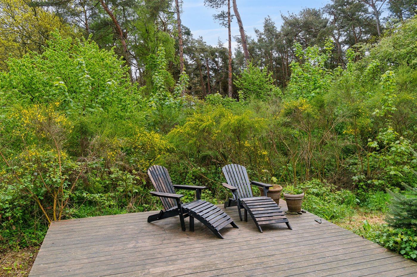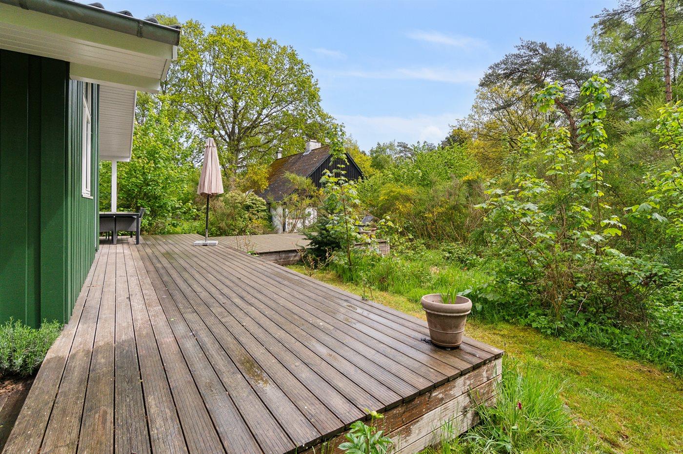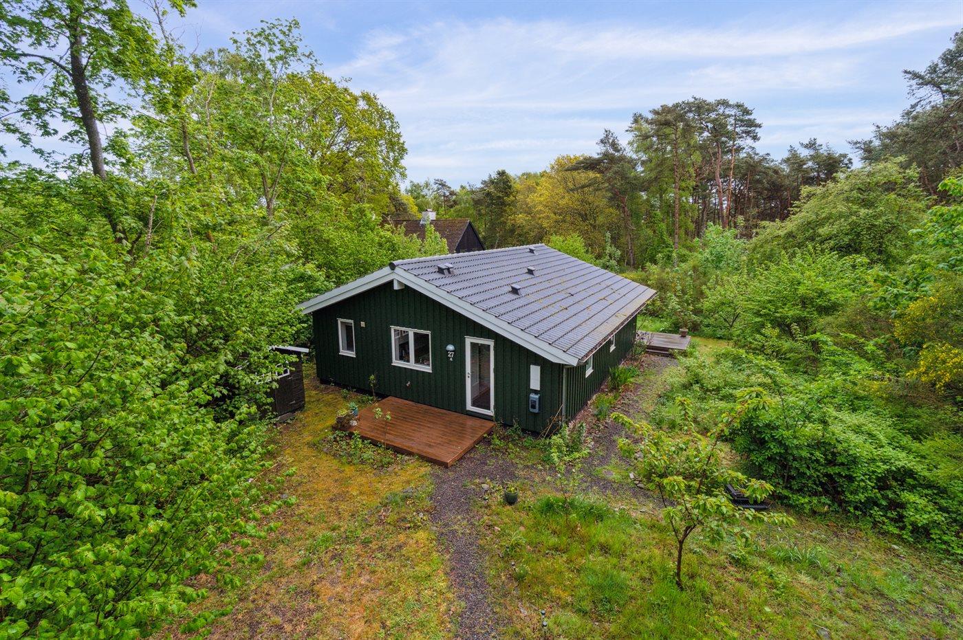 Stort vinduesparti direkte ud i naturen, der omgiver sommerhuset, med en større terrasse, hvor solen kan nydes. Snogebæk ligger nær og byder både på supermarked, restauranter, håndlavet chokolade, detailbutikker, pizzeria og Sørens Værtshus.