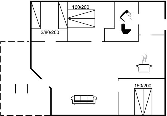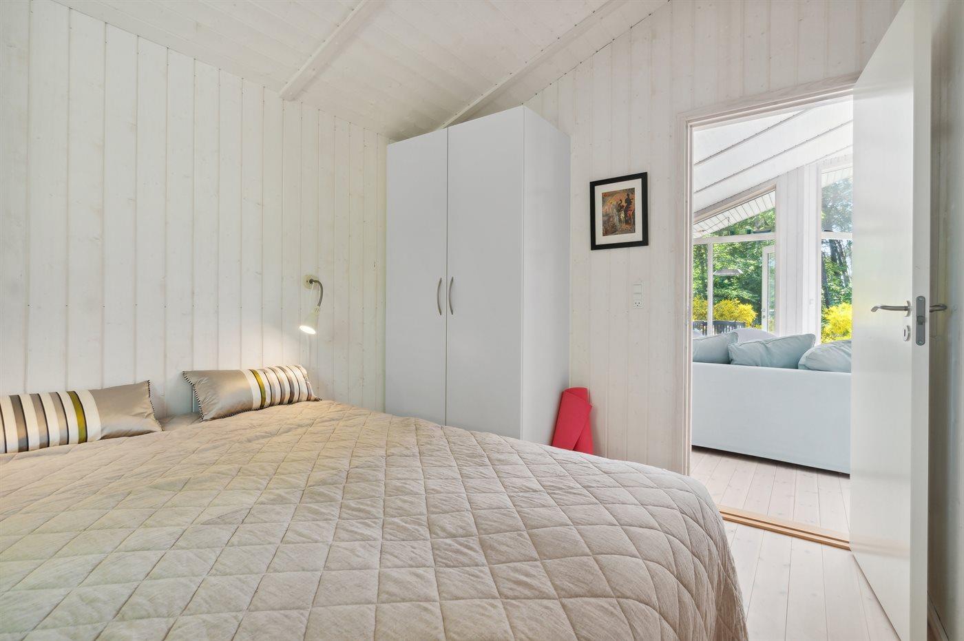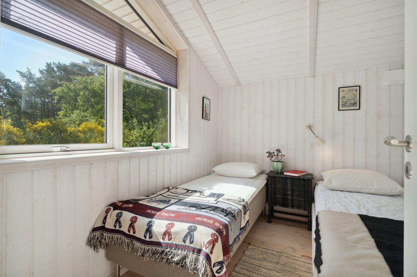 Der er i alt 3 soveværelser. Sovepladserne fordeler sig på: 4 sovepladser i dobbeltsenge. 2 sovepladser i enkeltsenge.