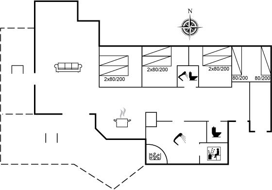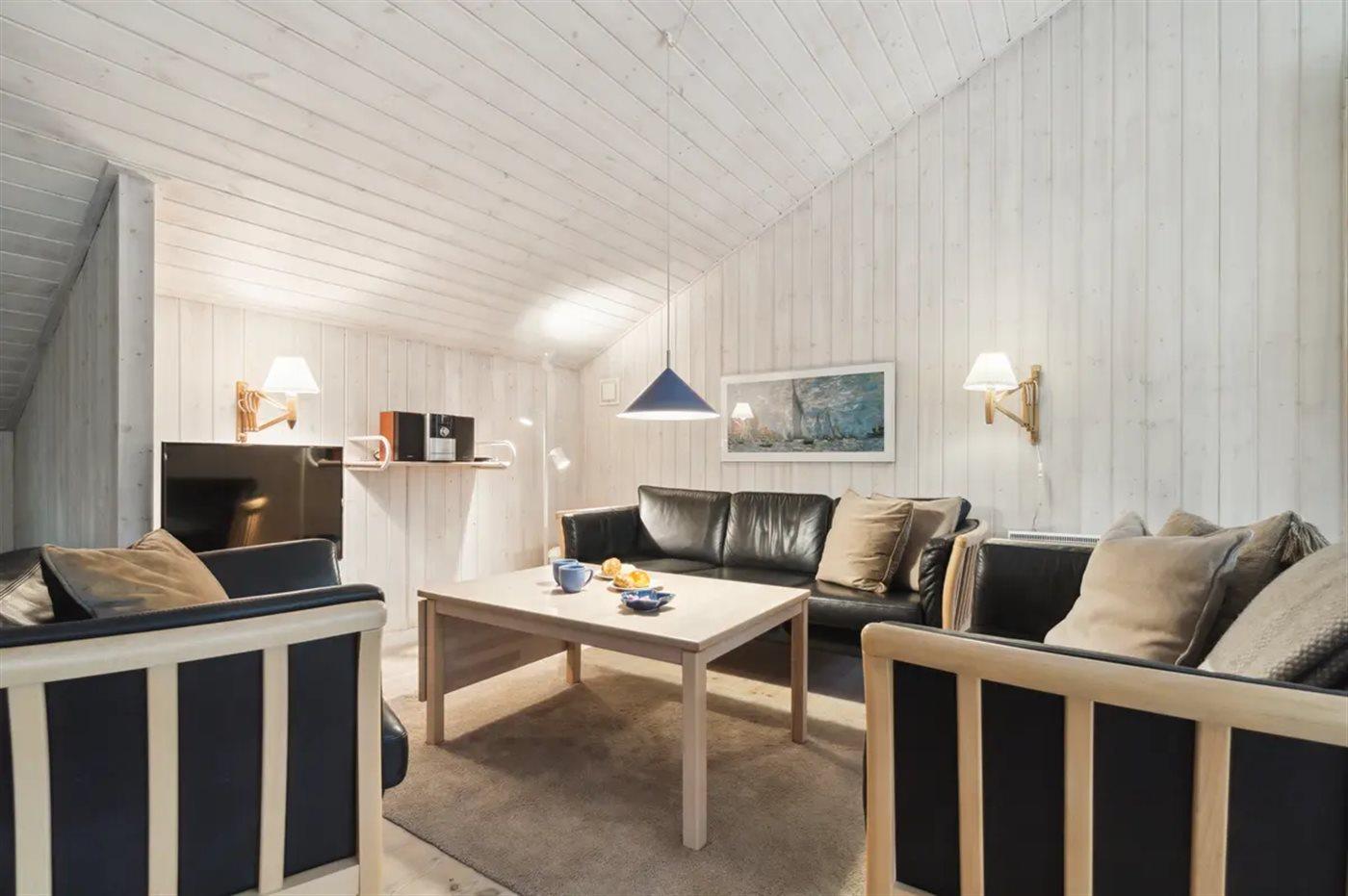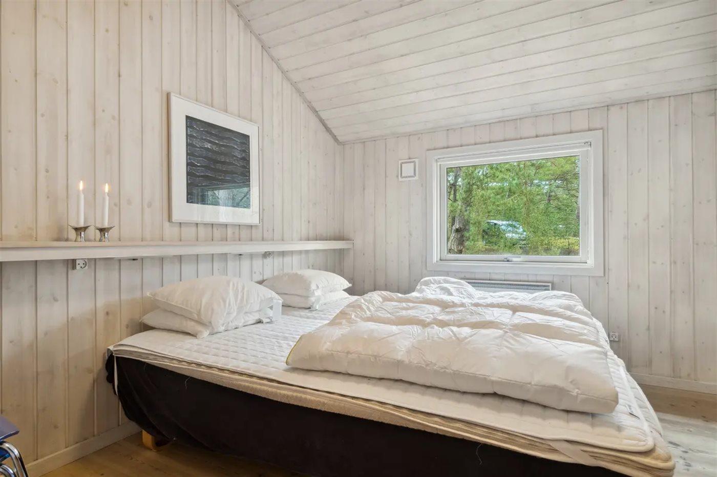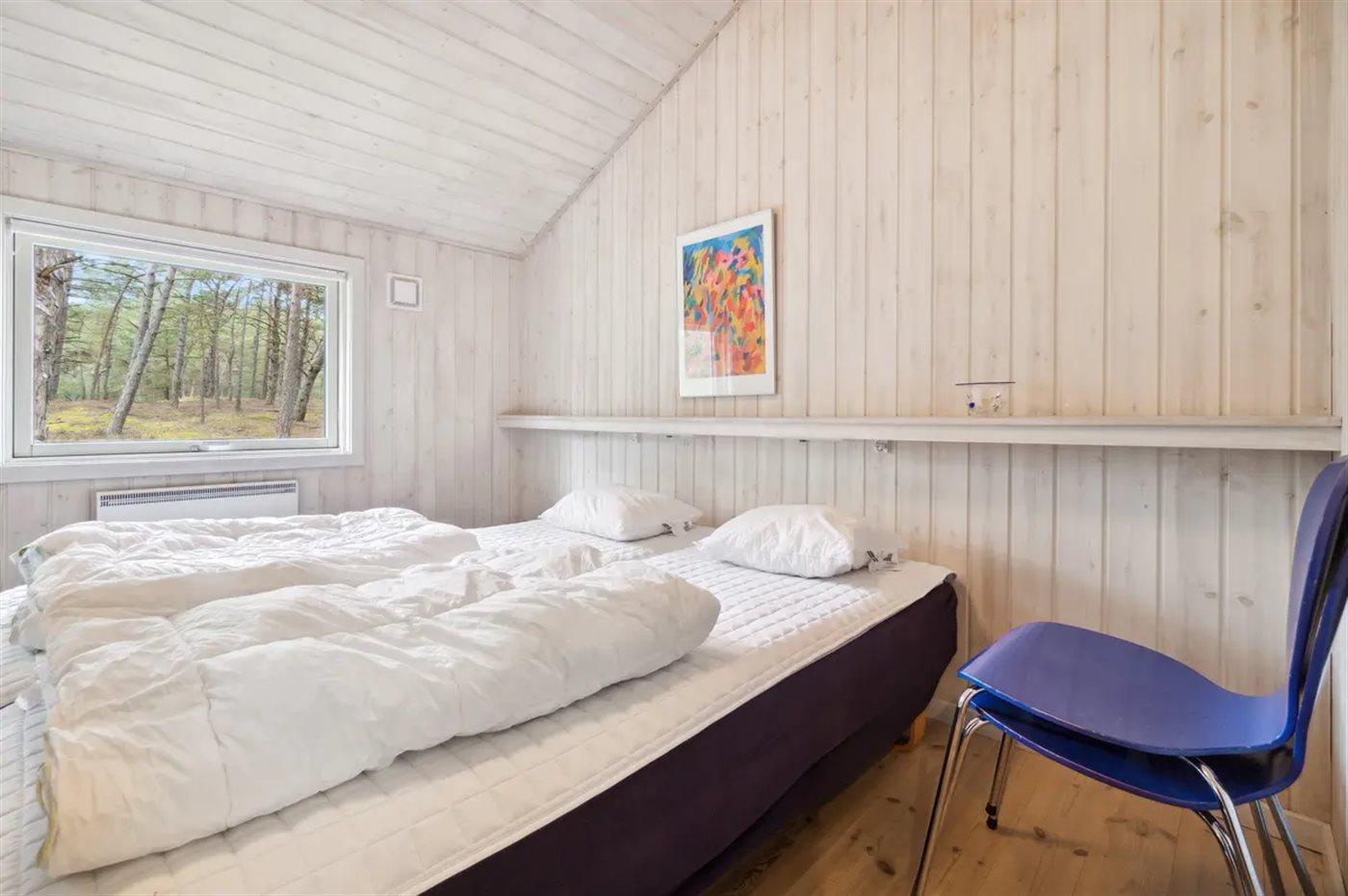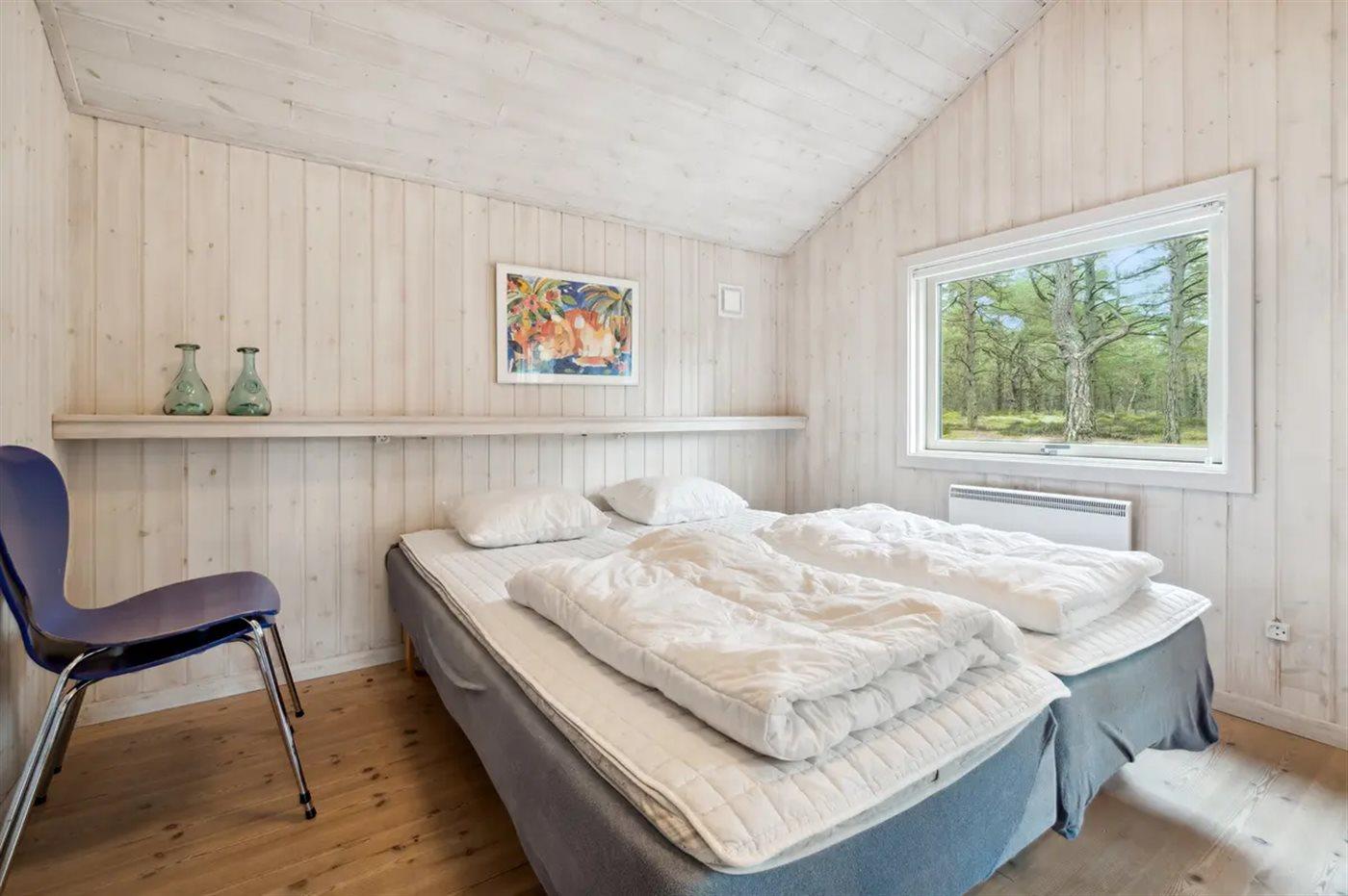 Der er i alt 4 soveværelser. Sovepladserne fordeler sig på: 6 sovepladser i dobbeltsenge. 2 sovepladser i enkeltsenge. Derudover er der 2 stk. barnesenge.